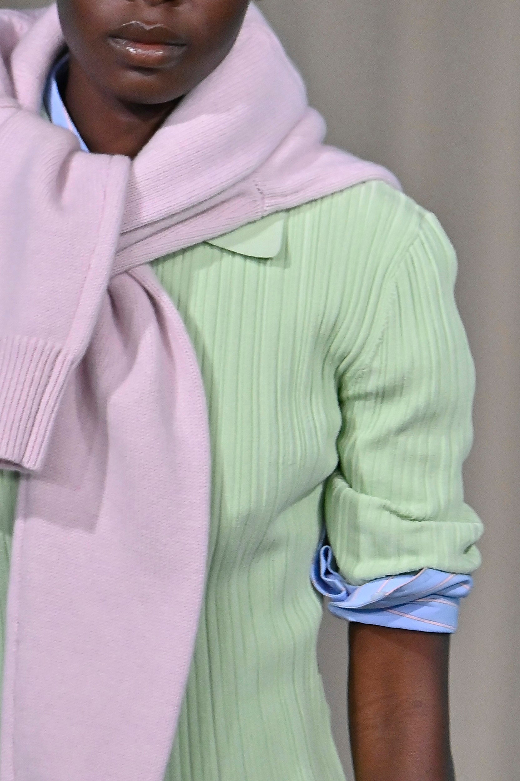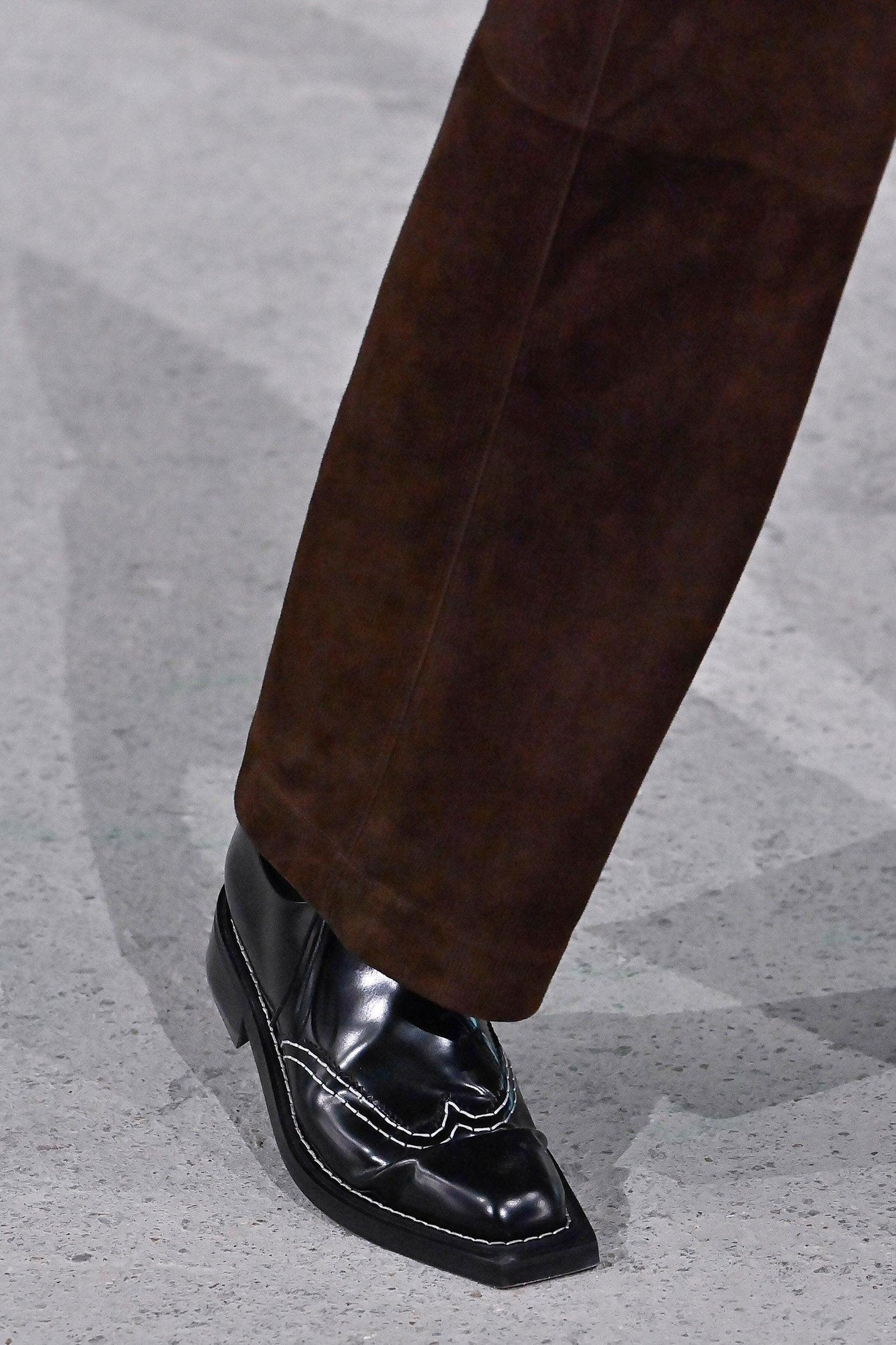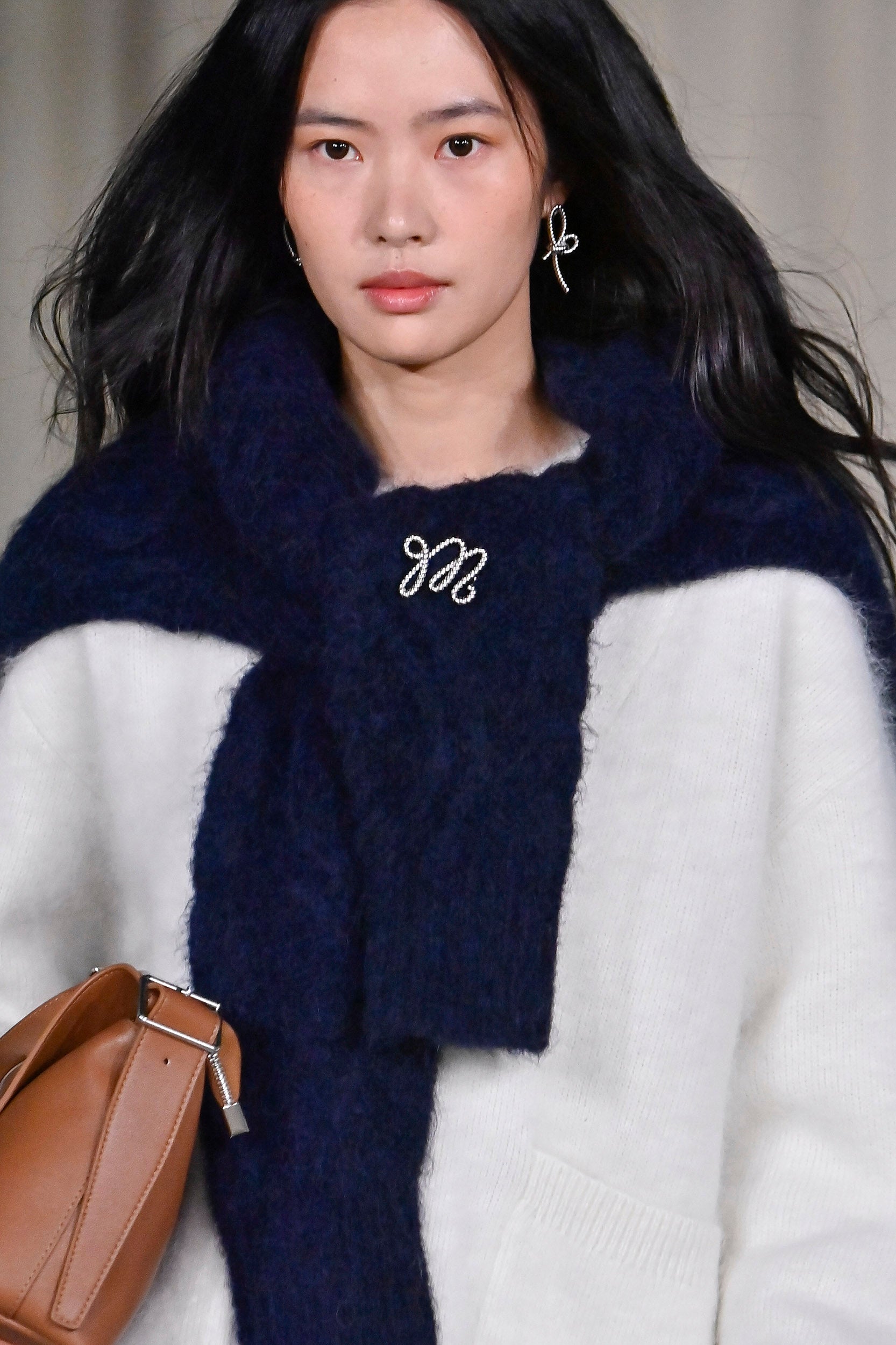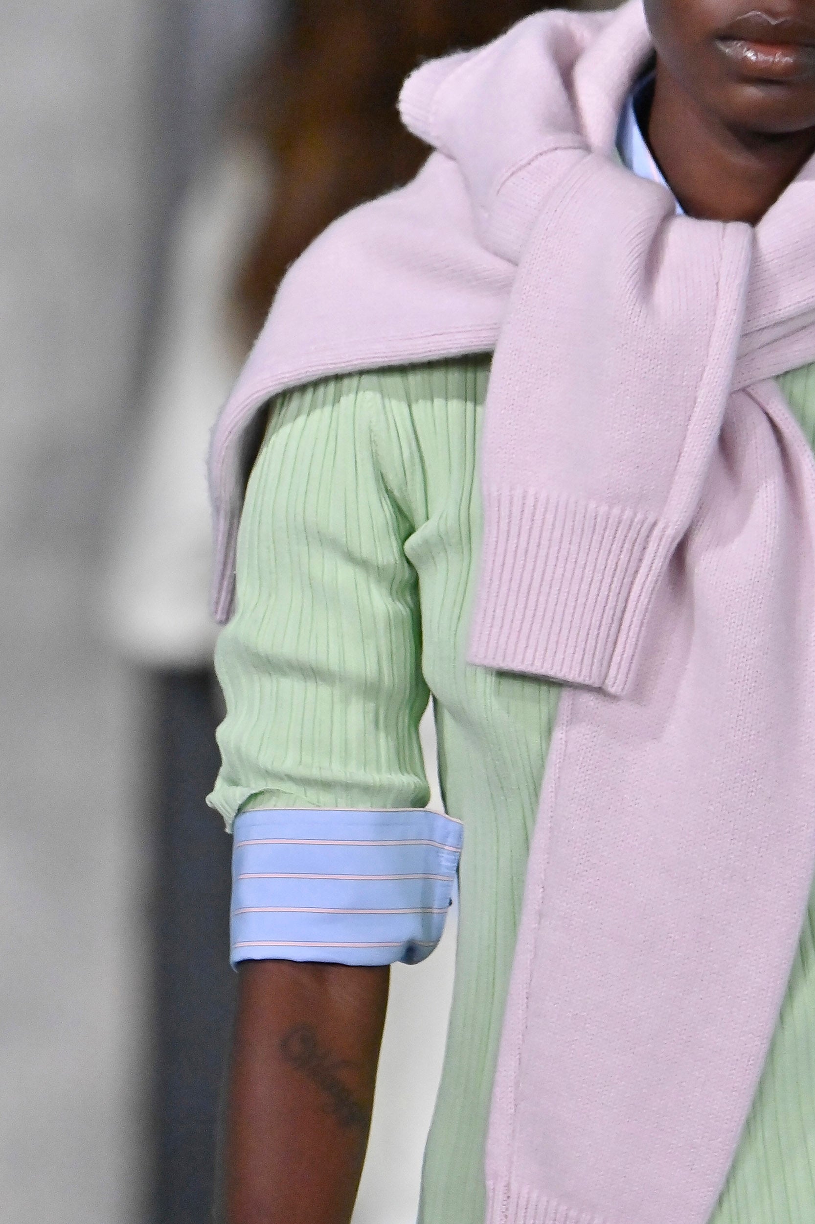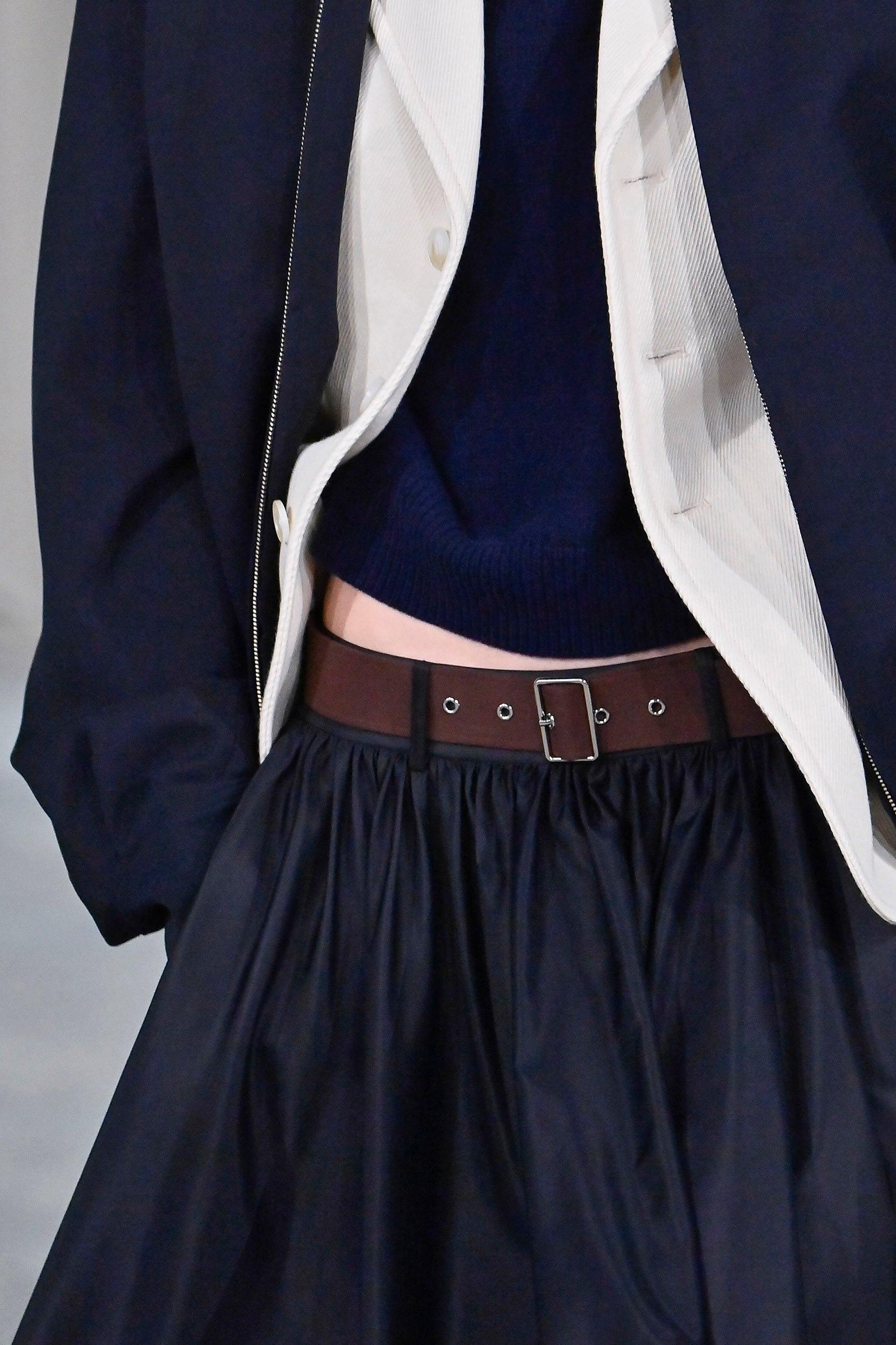 Saccharine pastels clash with rich leathers and wools, while full skirts balance strong-shouldered tailoring. Classic British wardrobe staples are reimagined, layering nostalgia with modernity. Eccentric textures, and playful contrasts redefine tradition, embracing a multifaceted reality.