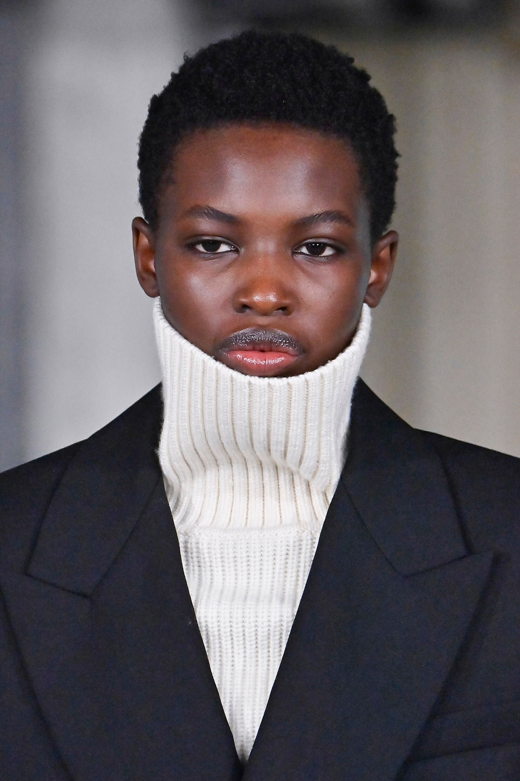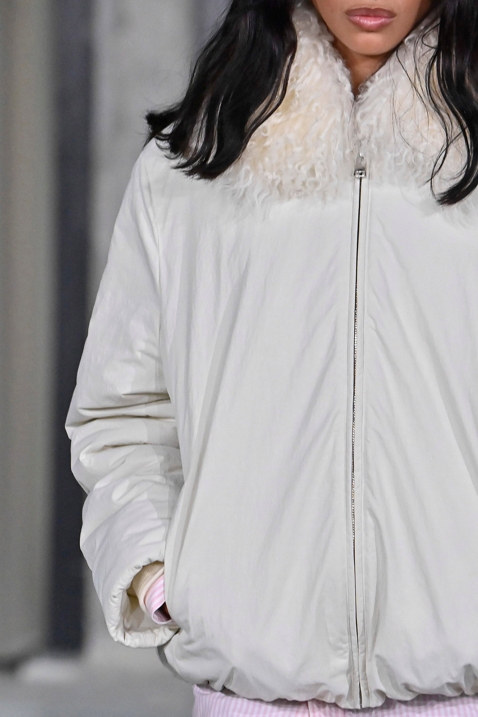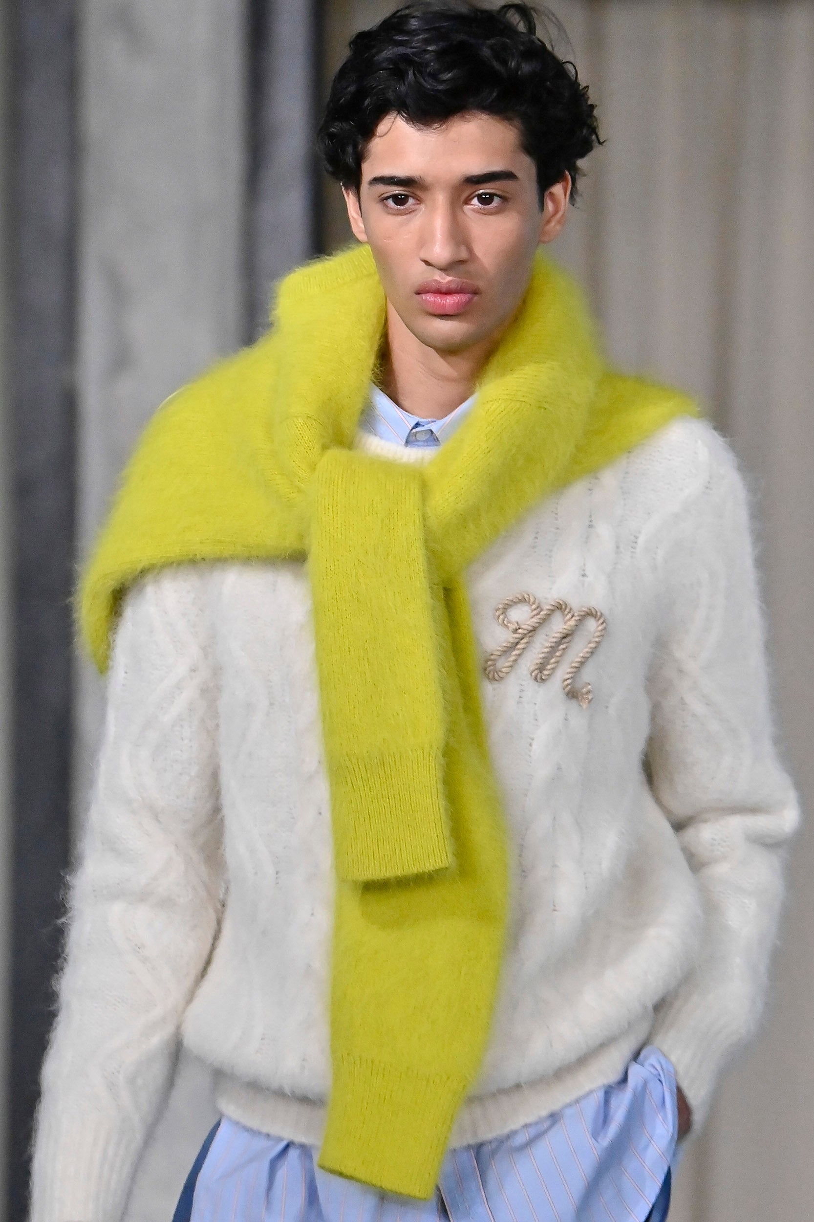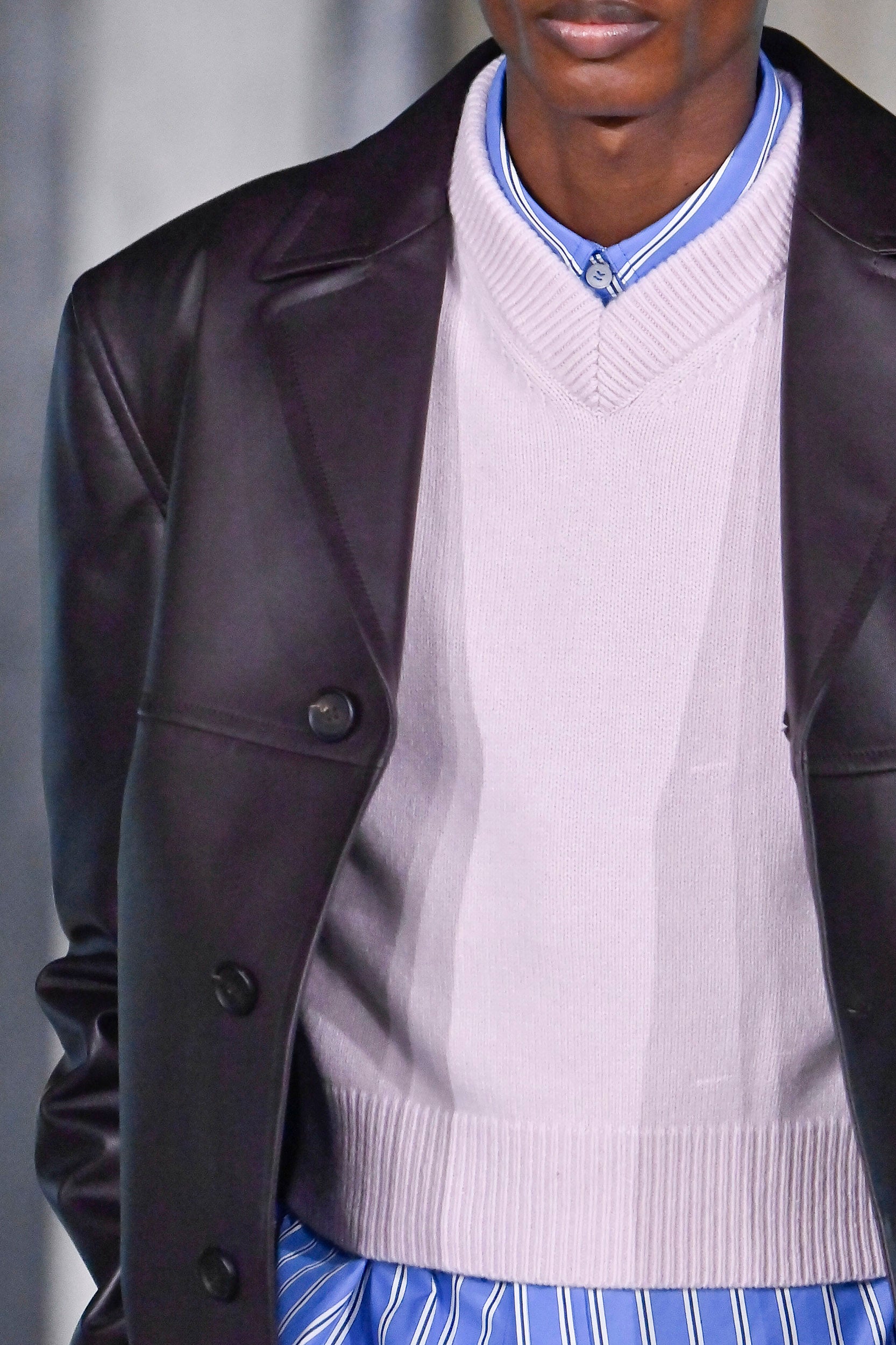 Saccharine pastels clash with rich leathers and wools, while full skirts balance strong-shouldered tailoring. Classic British wardrobe staples are reimagined, layering nostalgia with modernity. Eccentric textures, and playful contrasts redefine tradition, embracing a multifaceted reality.