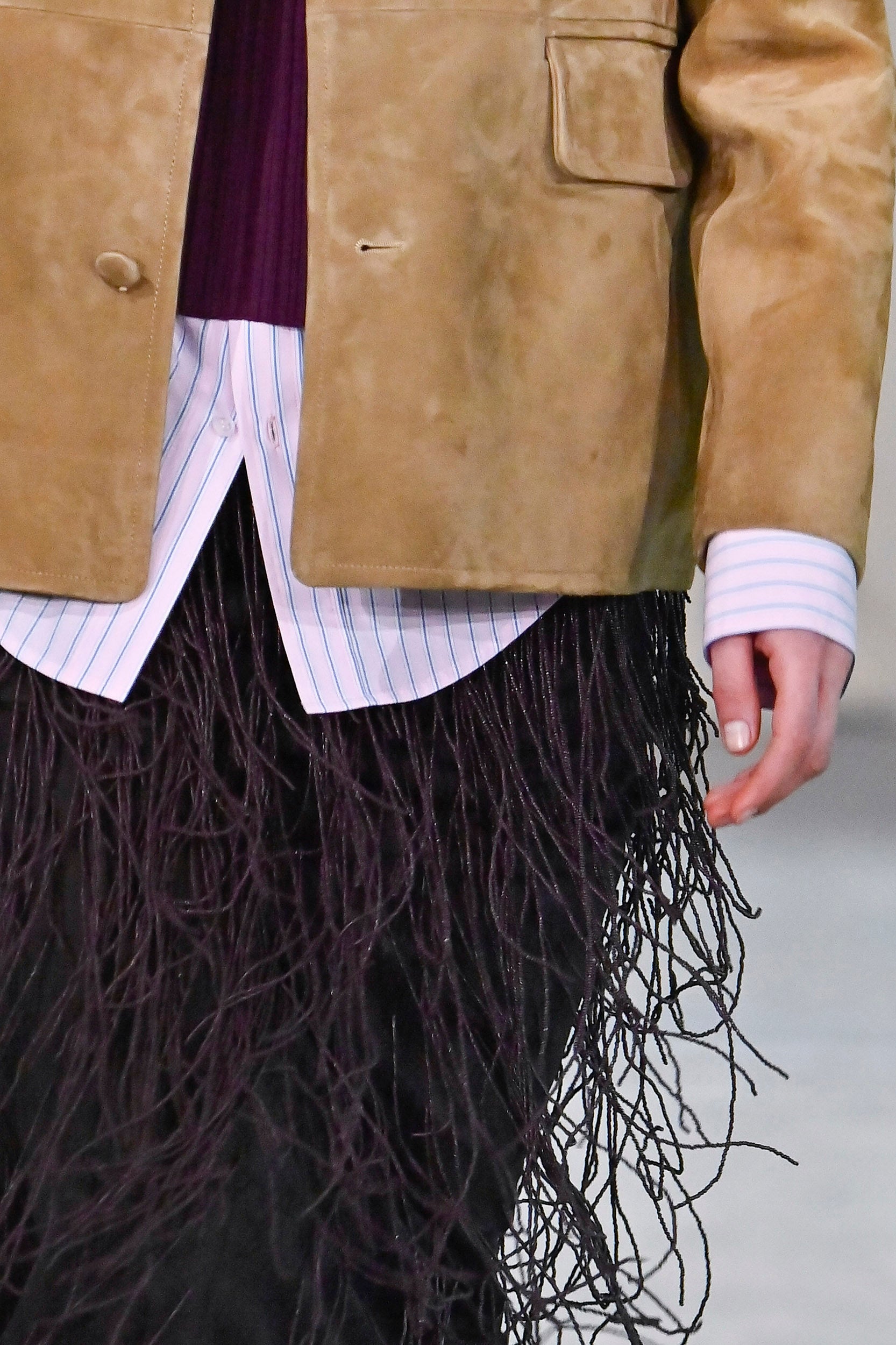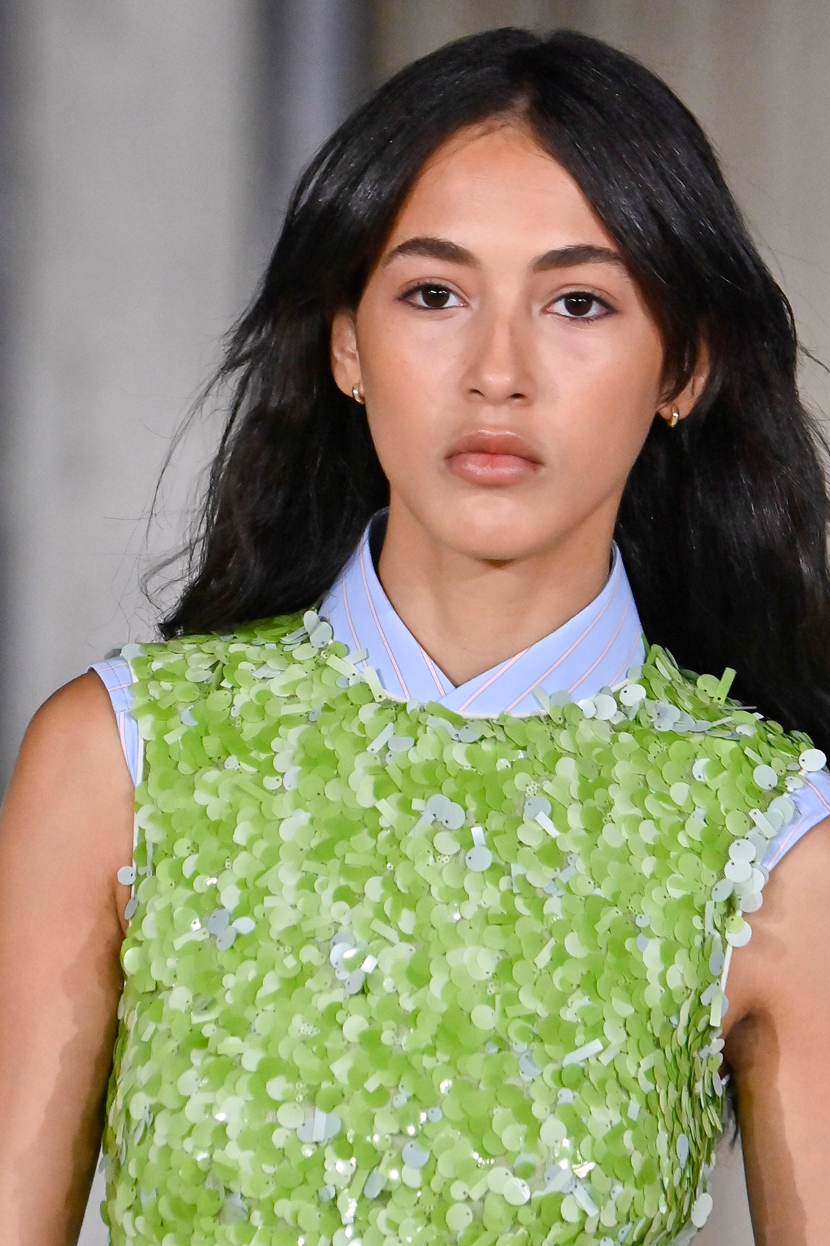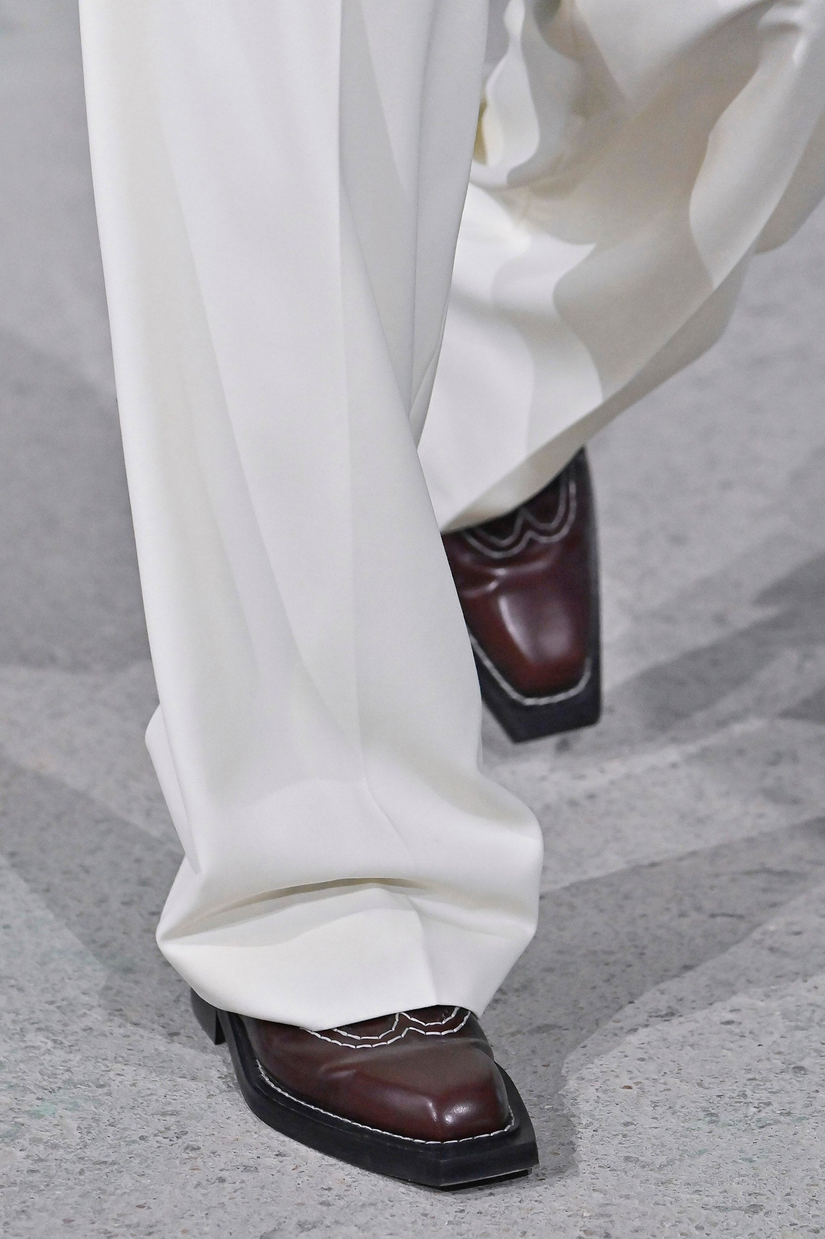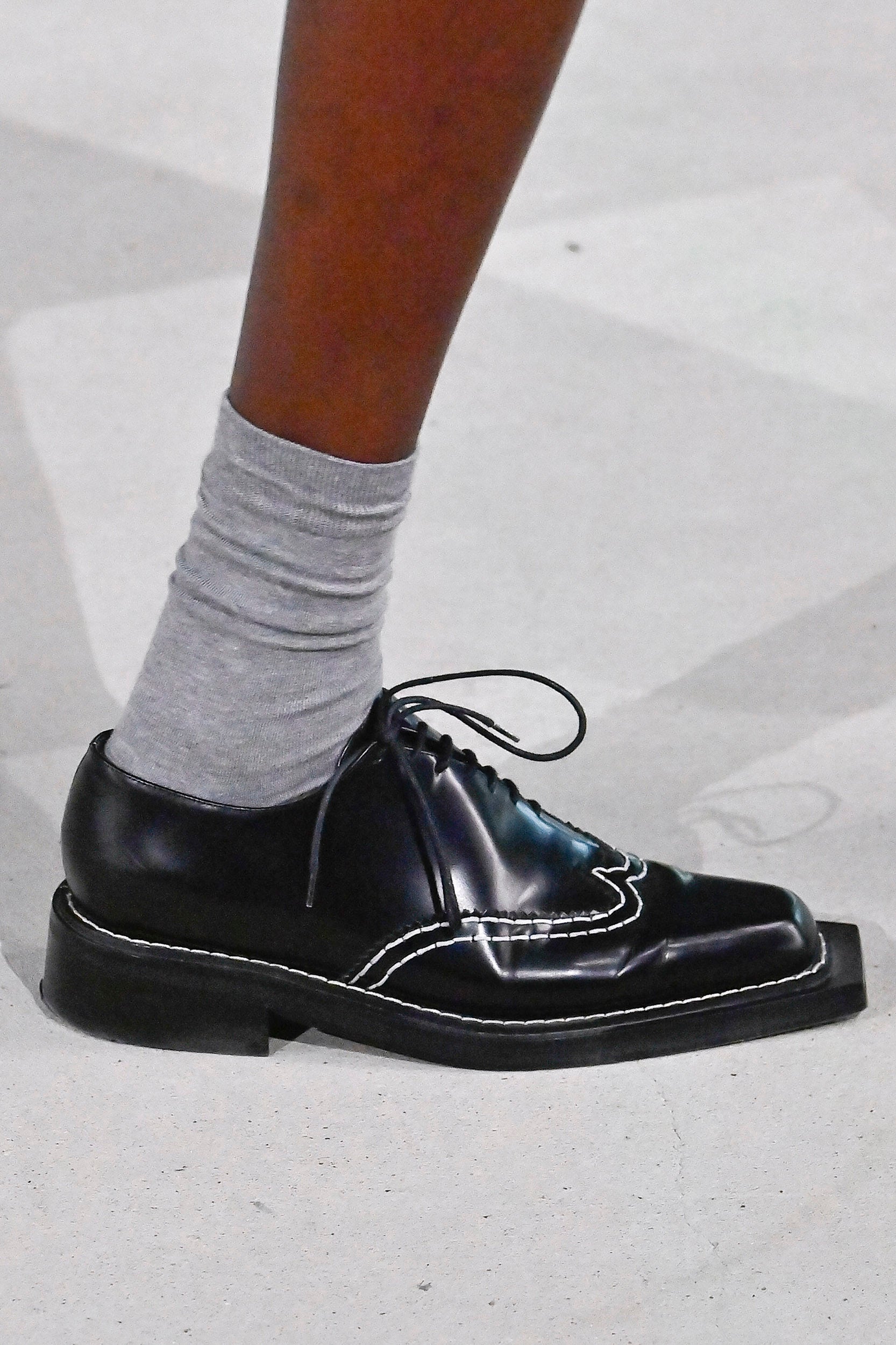 Saccharine pastels clash with rich leathers and wools, while full skirts balance strong-shouldered tailoring. Classic British wardrobe staples are reimagined, layering nostalgia with modernity. Eccentric textures, and playful contrasts redefine tradition, embracing a multifaceted reality.