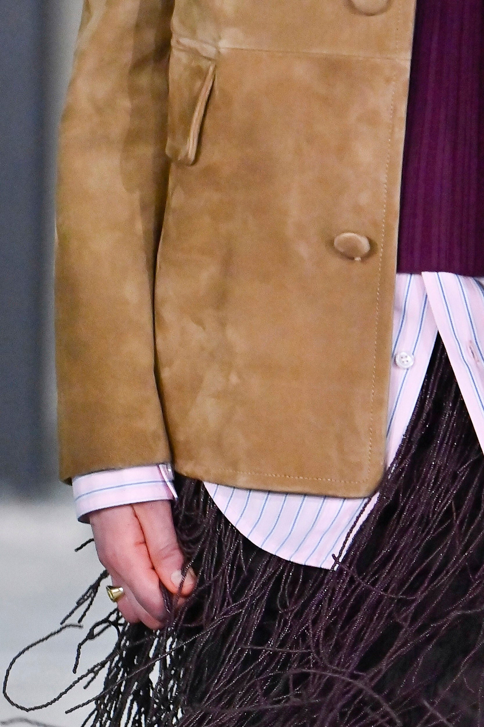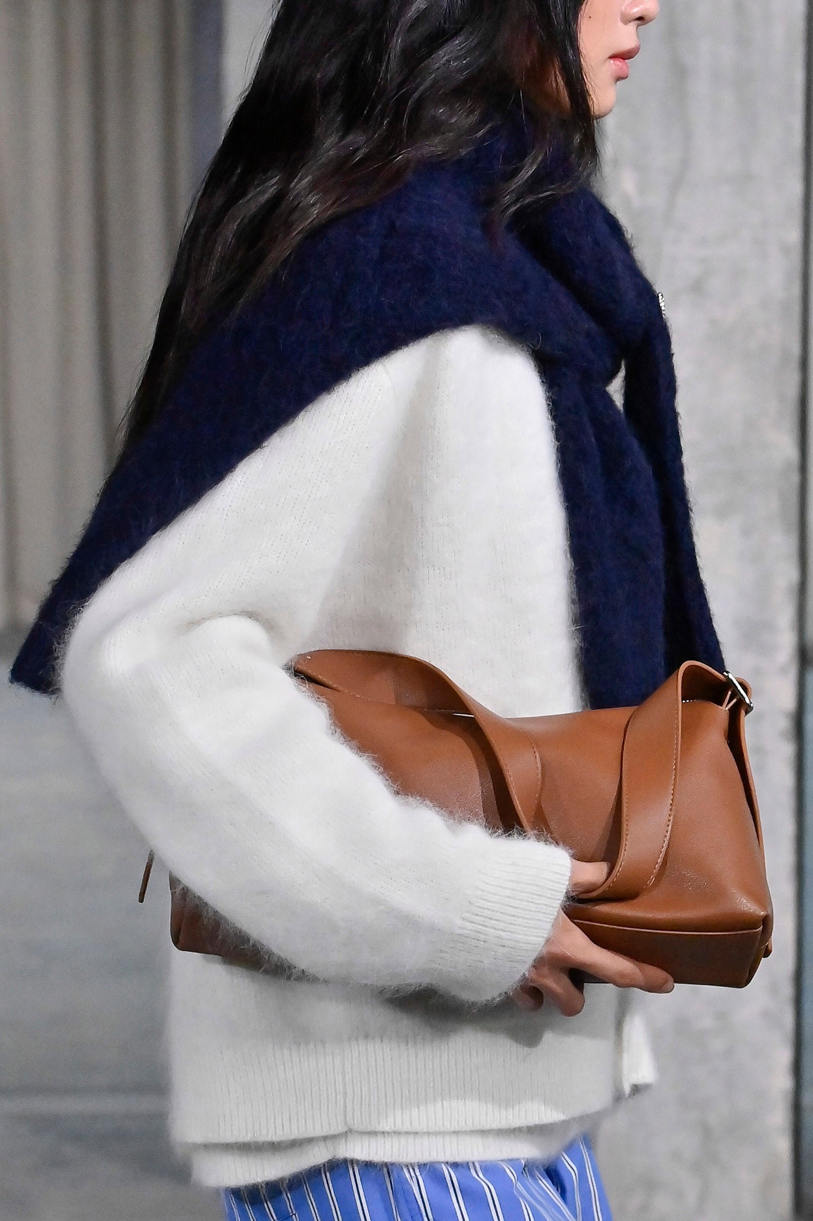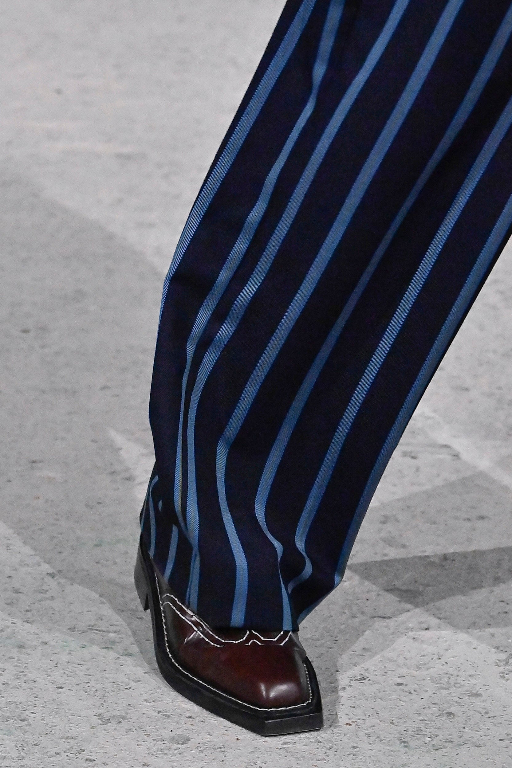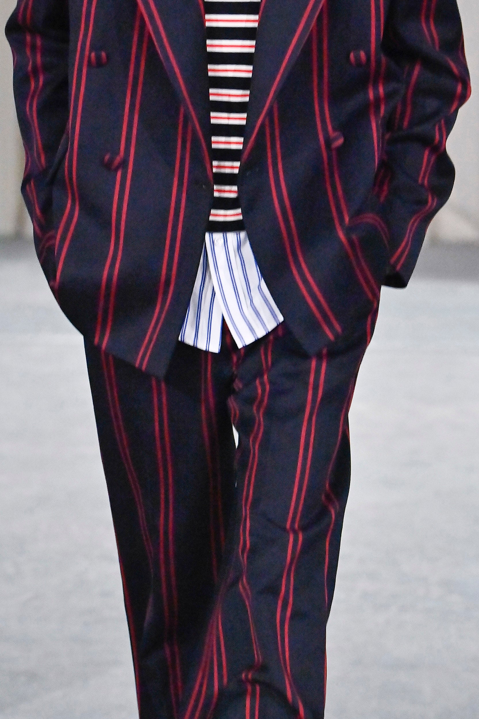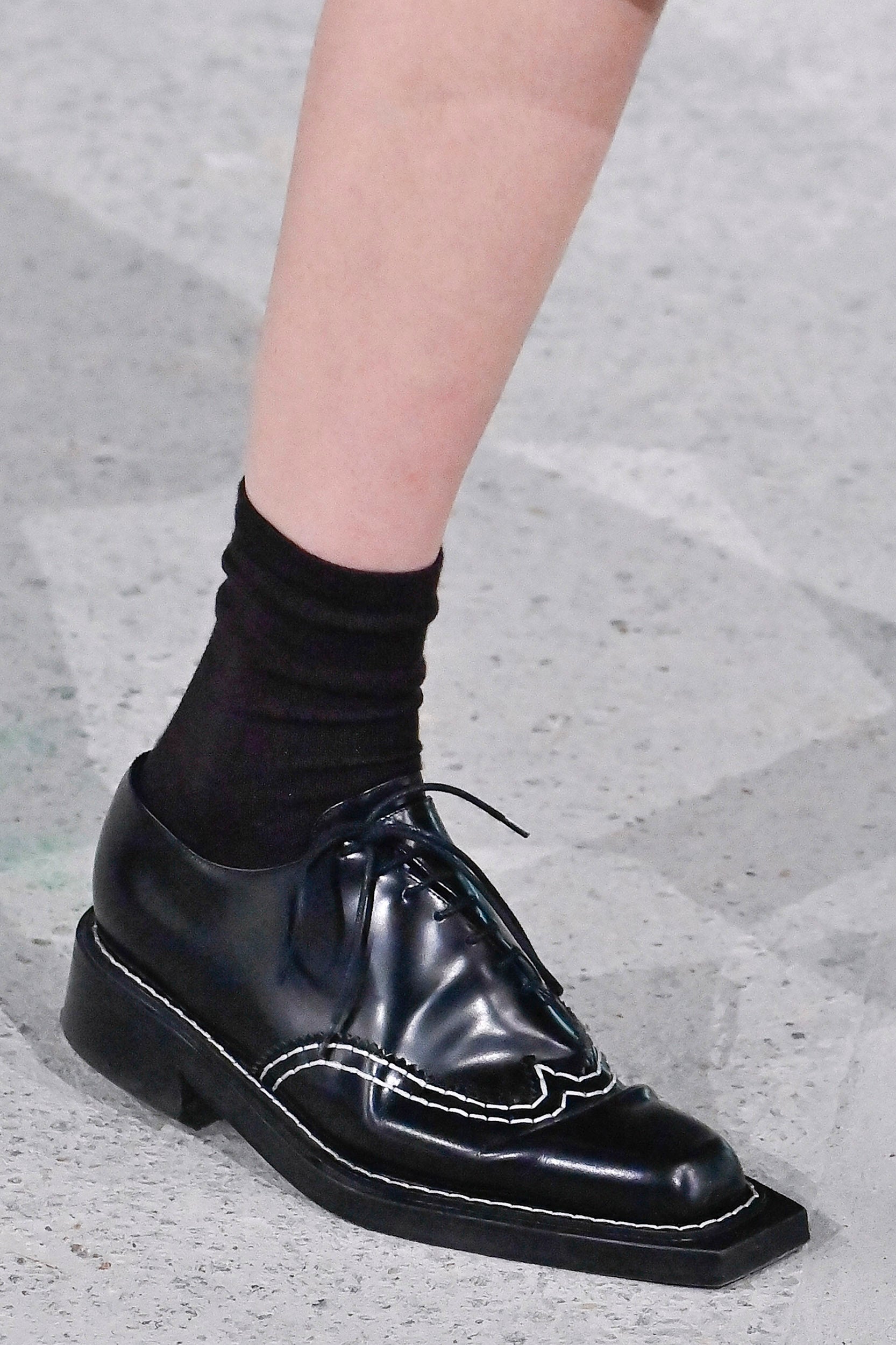 Saccharine pastels clash with rich leathers and wools, while full skirts balance strong-shouldered tailoring. Classic British wardrobe staples are reimagined, layering nostalgia with modernity. Eccentric textures, and playful contrasts redefine tradition, embracing a multifaceted reality.