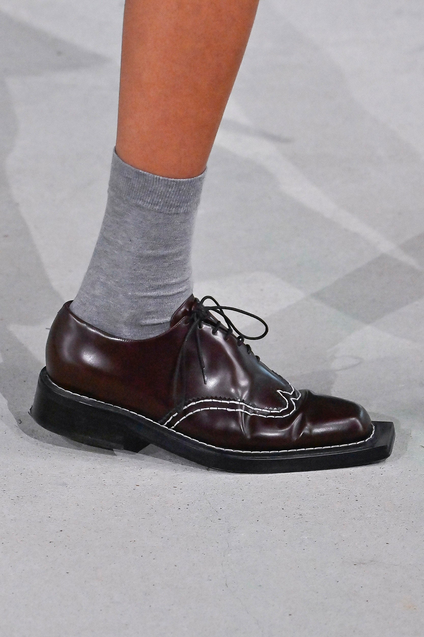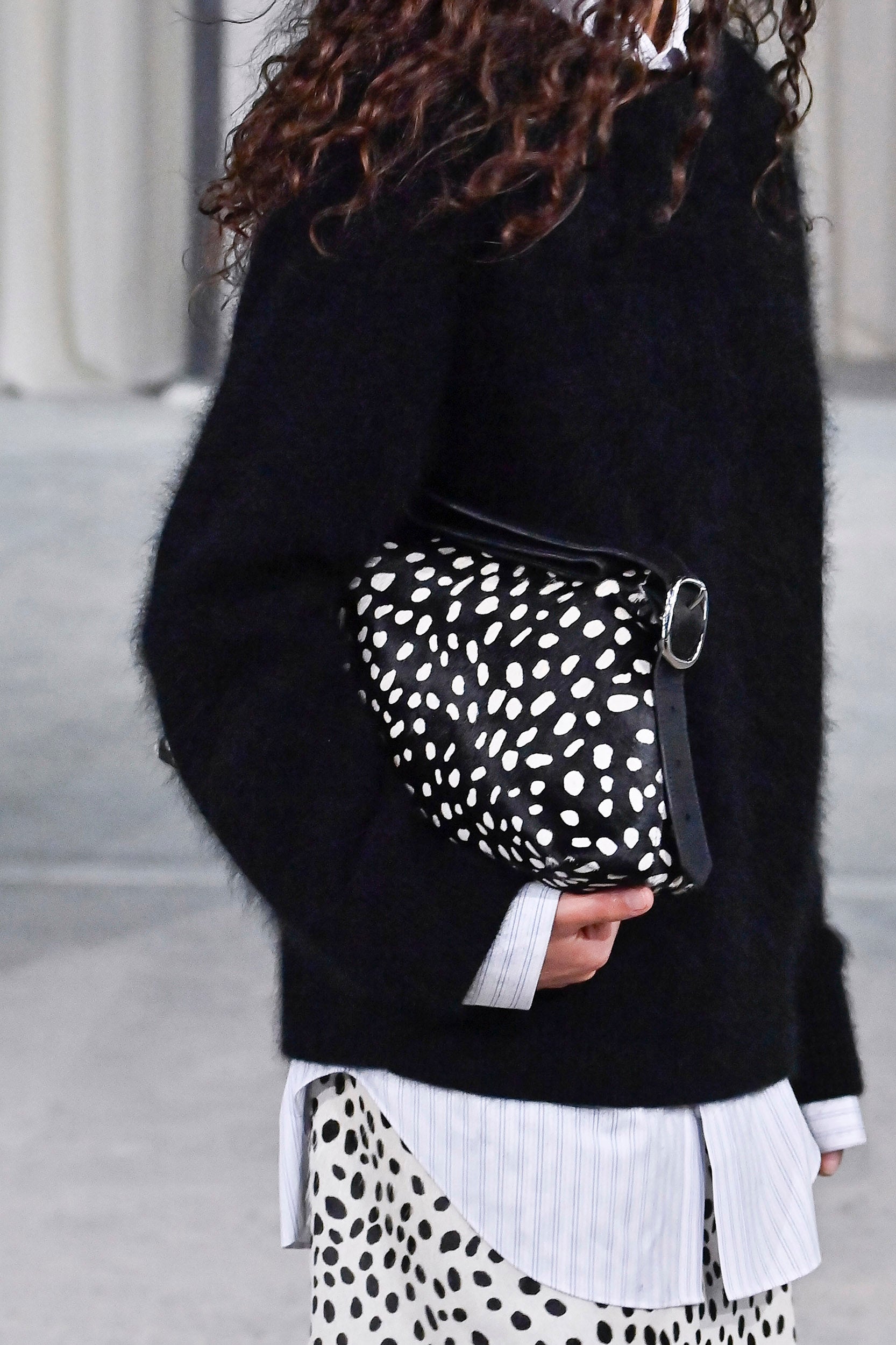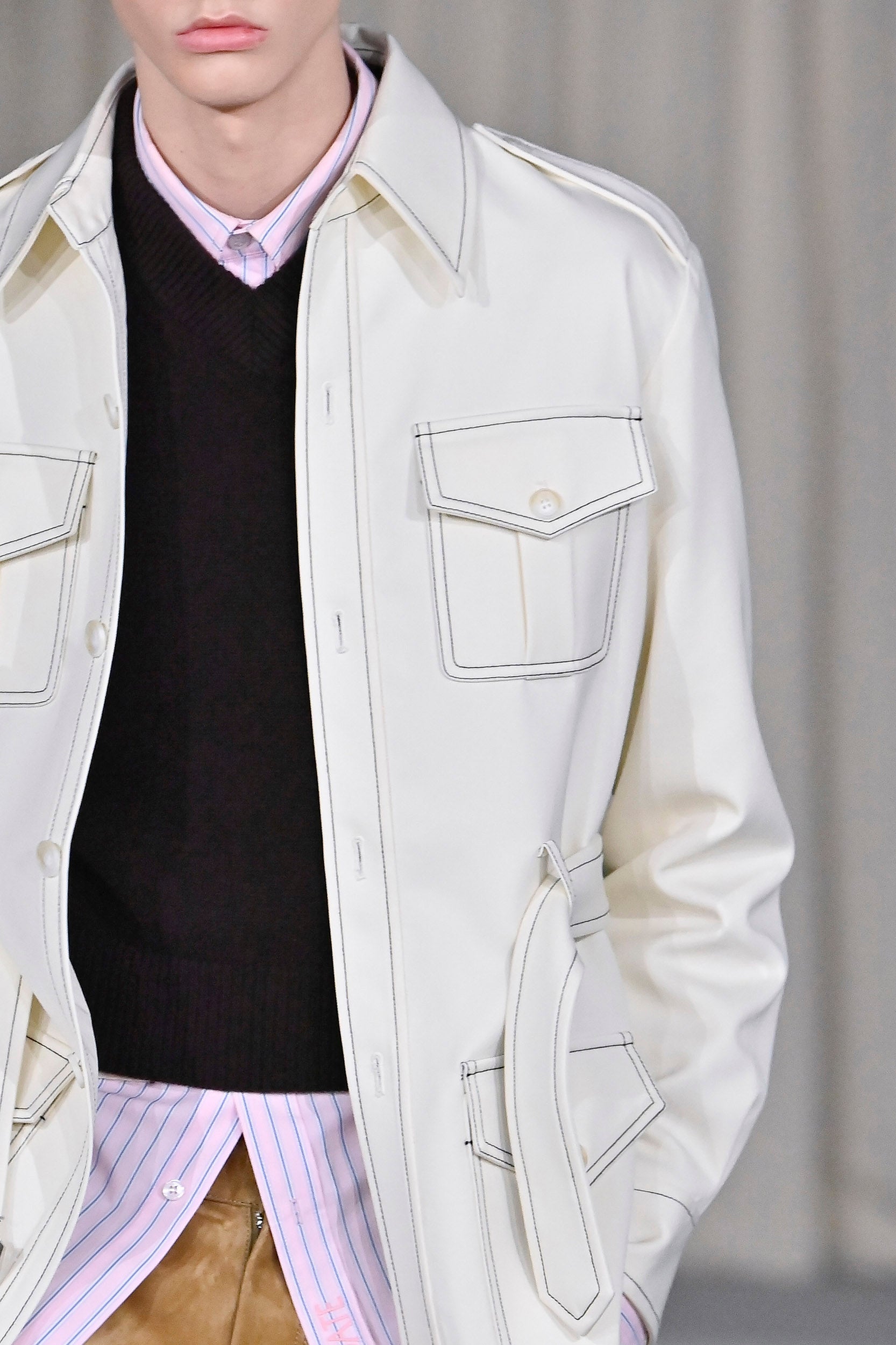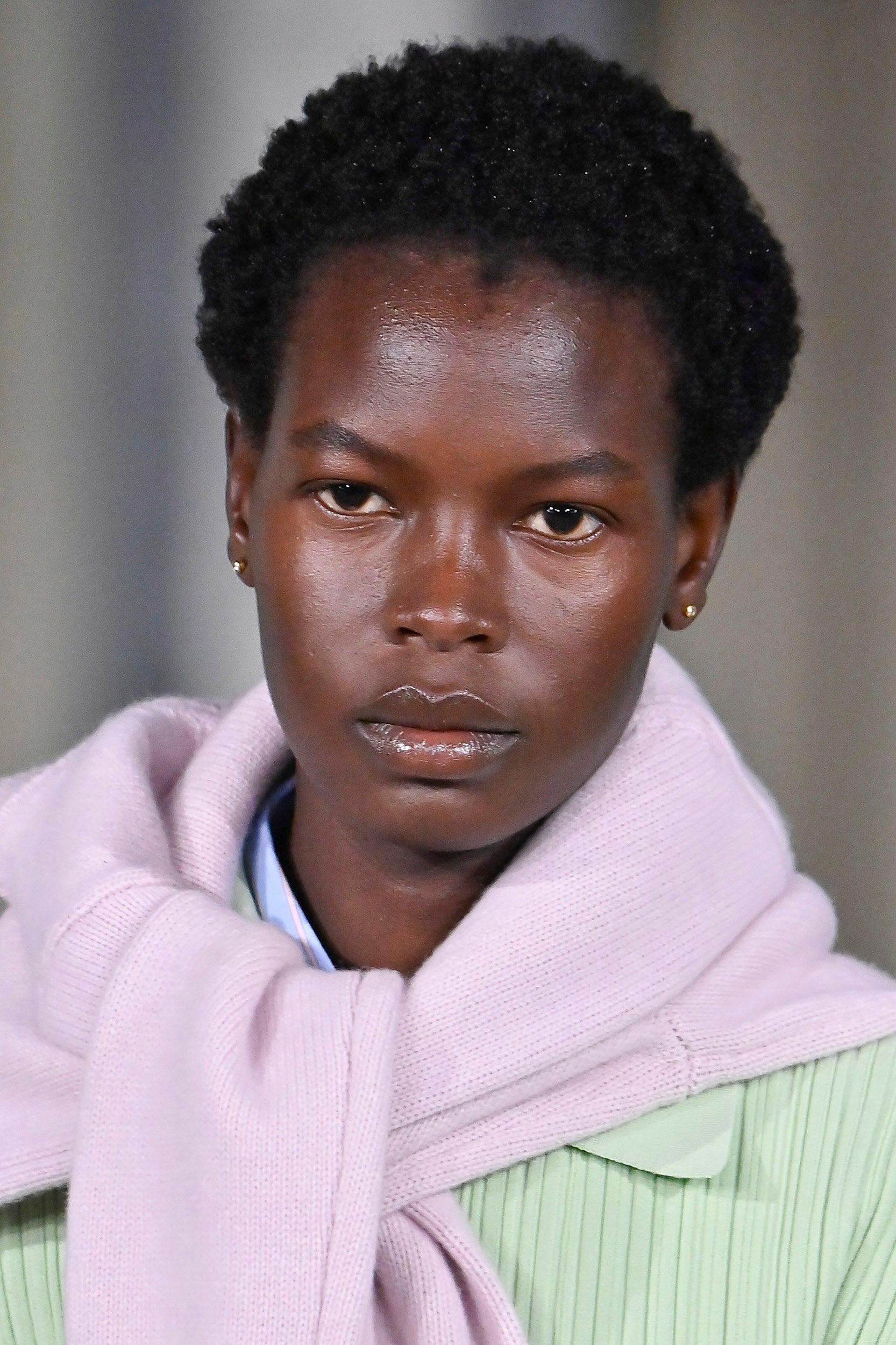 Saccharine pastels clash with rich leathers and wools, while full skirts balance strong-shouldered tailoring. Classic British wardrobe staples are reimagined, layering nostalgia with modernity. Eccentric textures, and playful contrasts redefine tradition, embracing a multifaceted reality.
