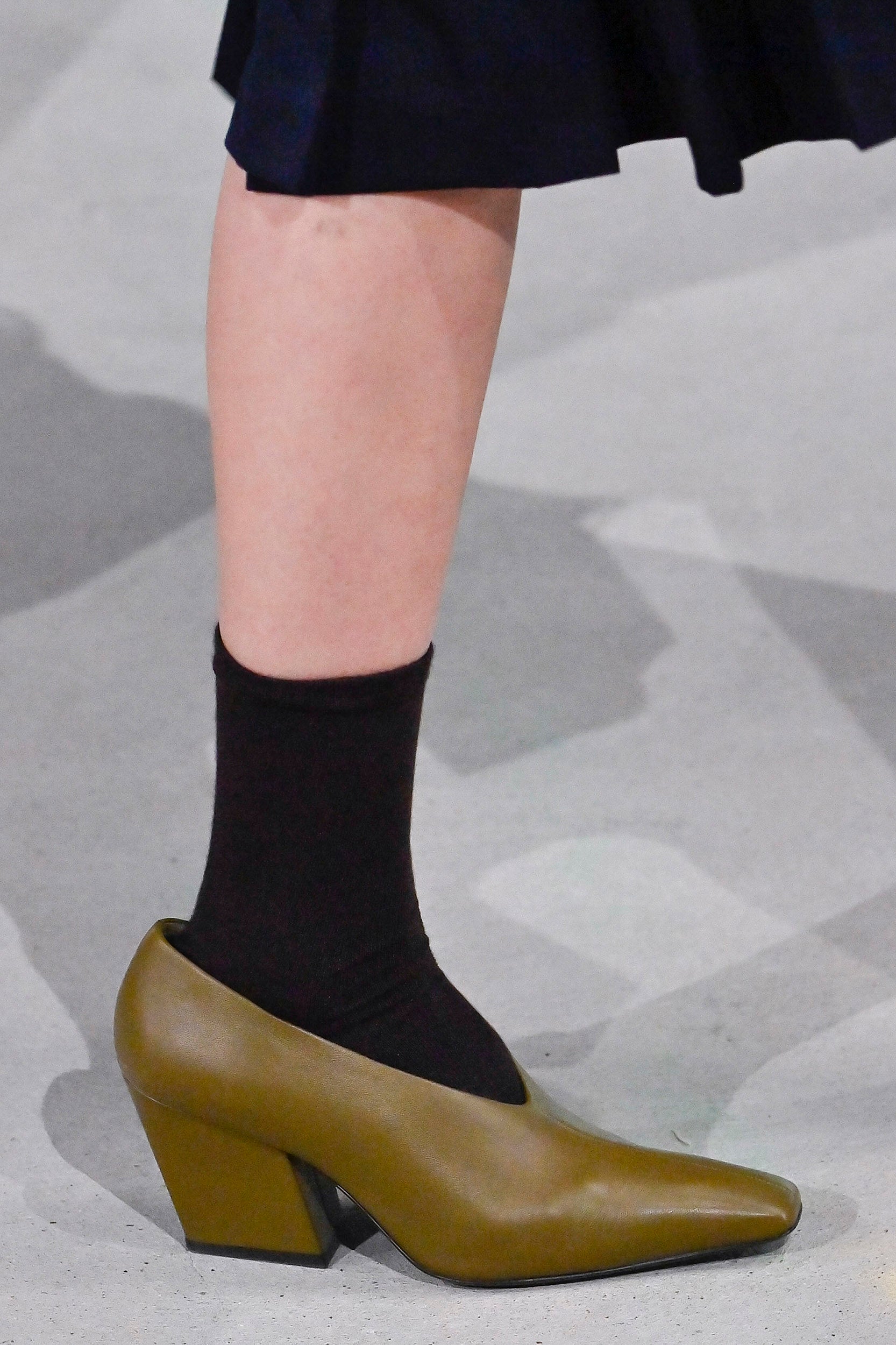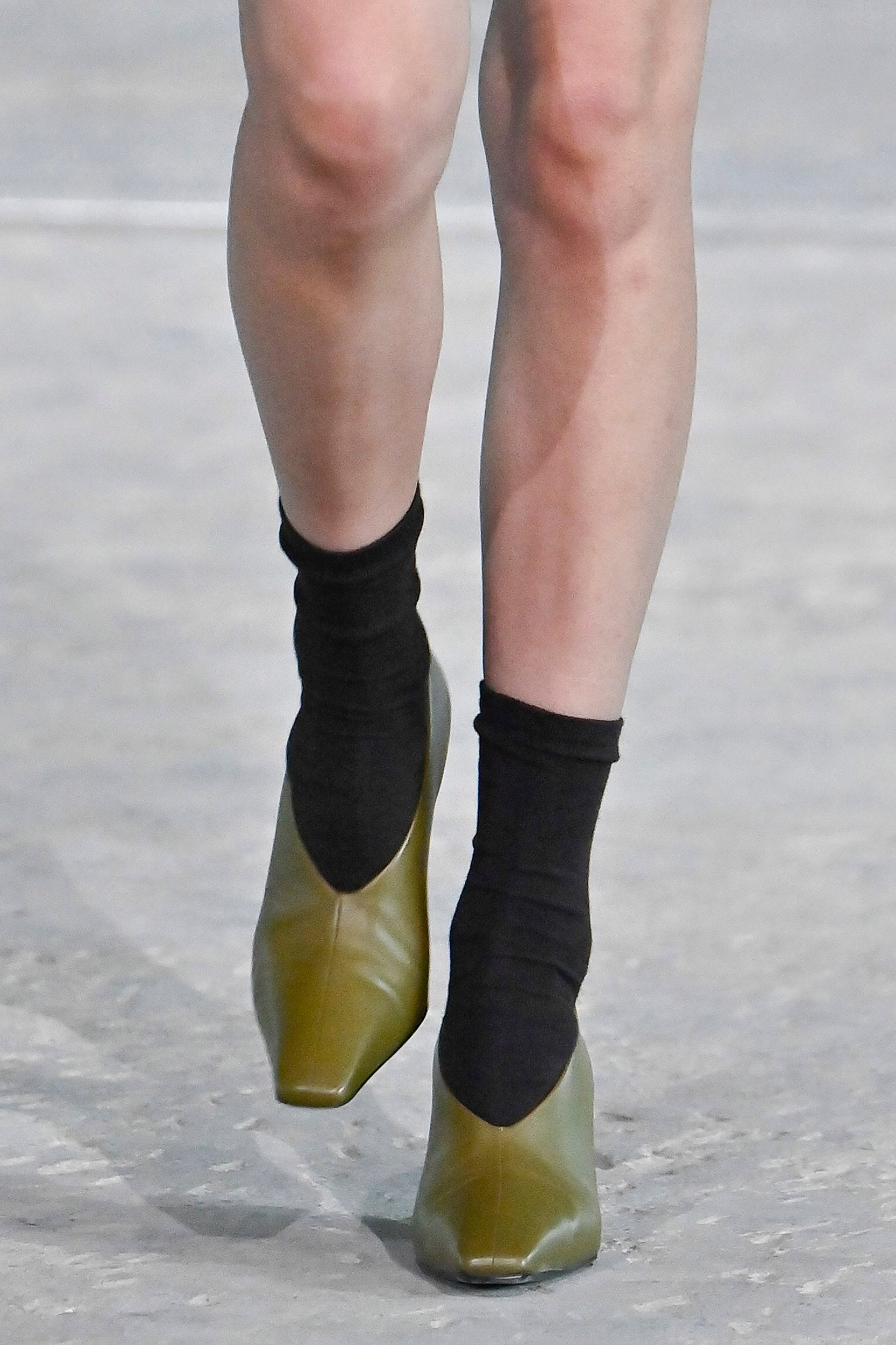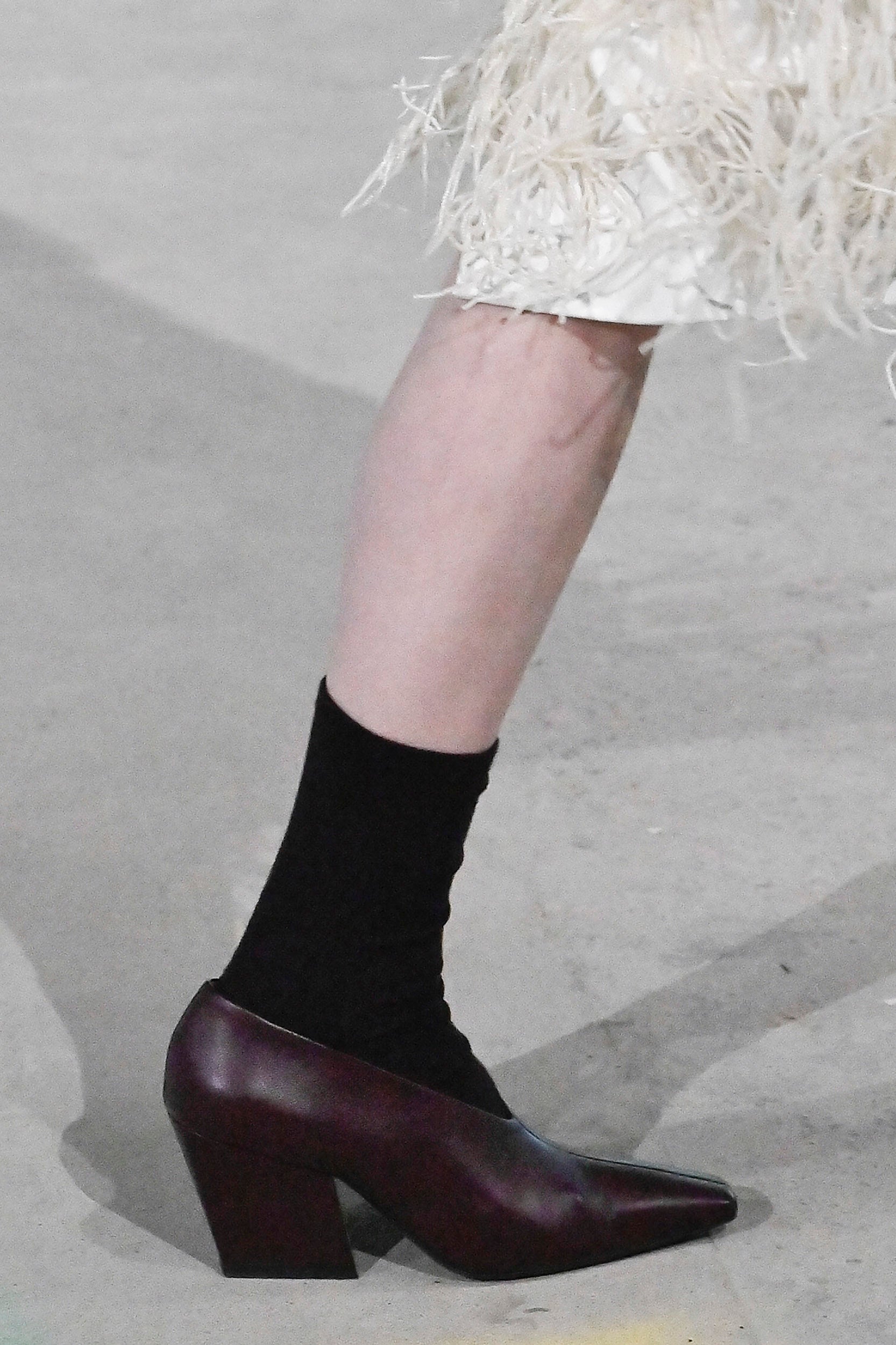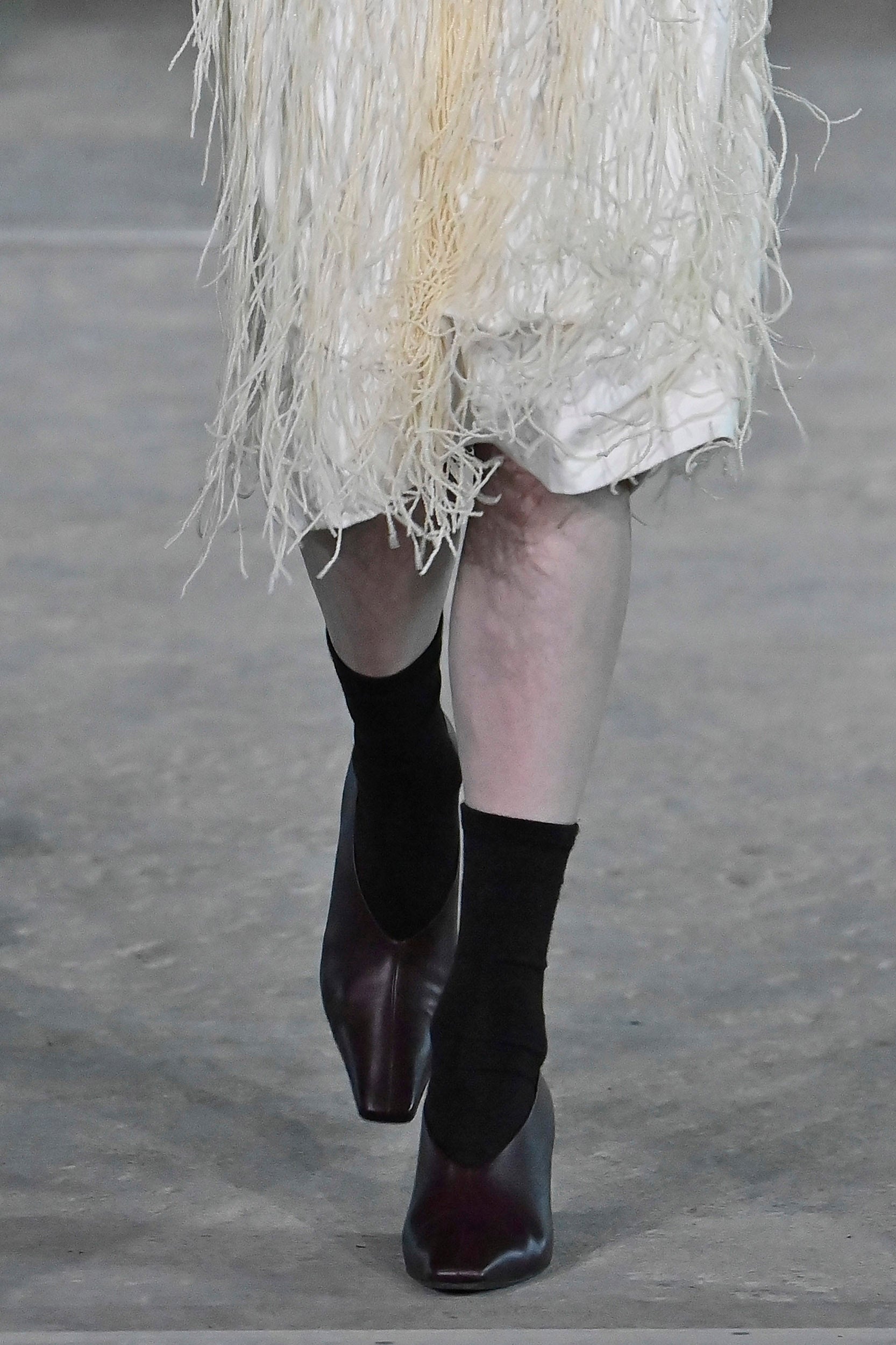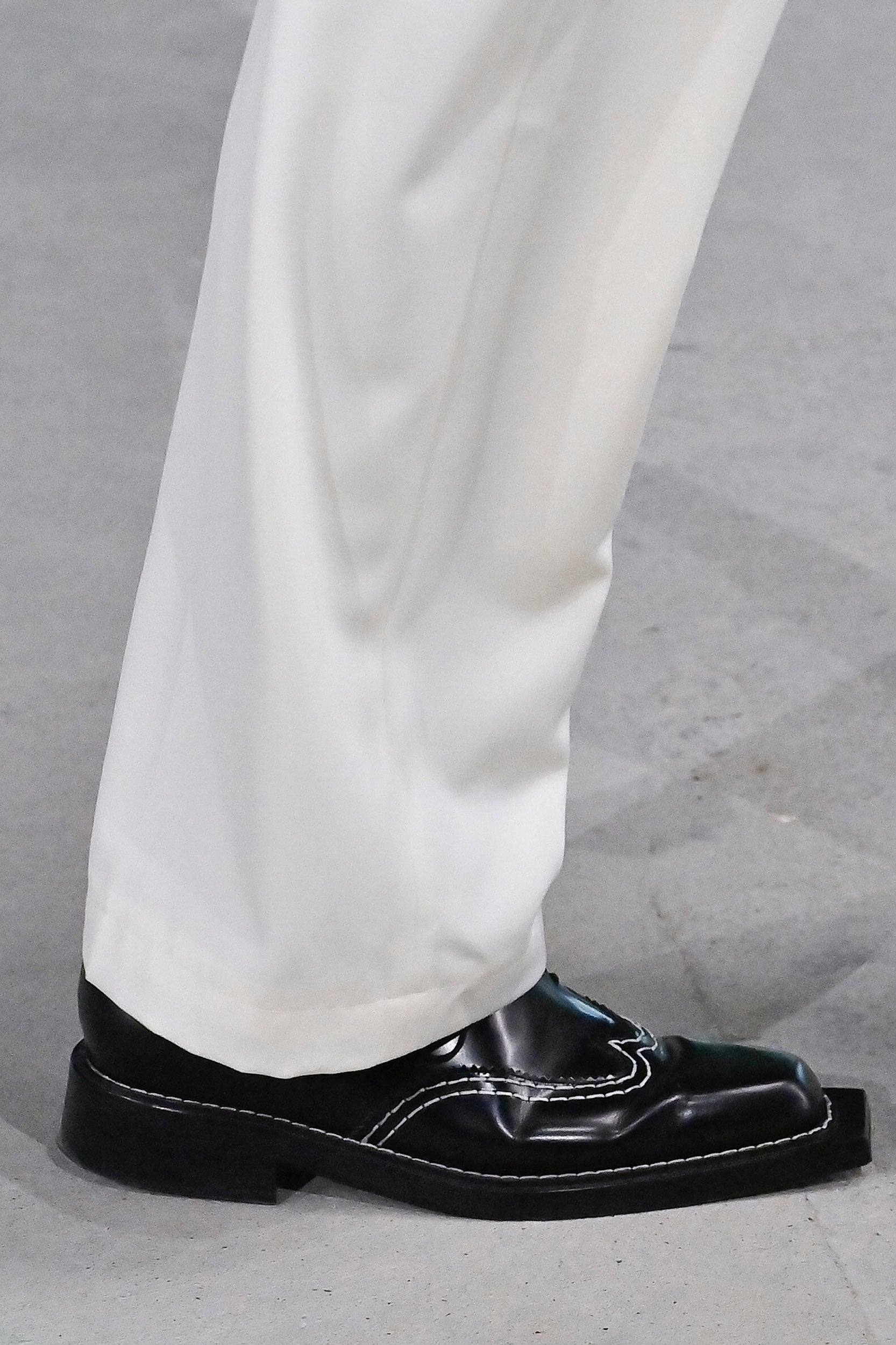 Saccharine pastels clash with rich leathers and wools, while full skirts balance strong-shouldered tailoring. Classic British wardrobe staples are reimagined, layering nostalgia with modernity. Eccentric textures, and playful contrasts redefine tradition, embracing a multifaceted reality.