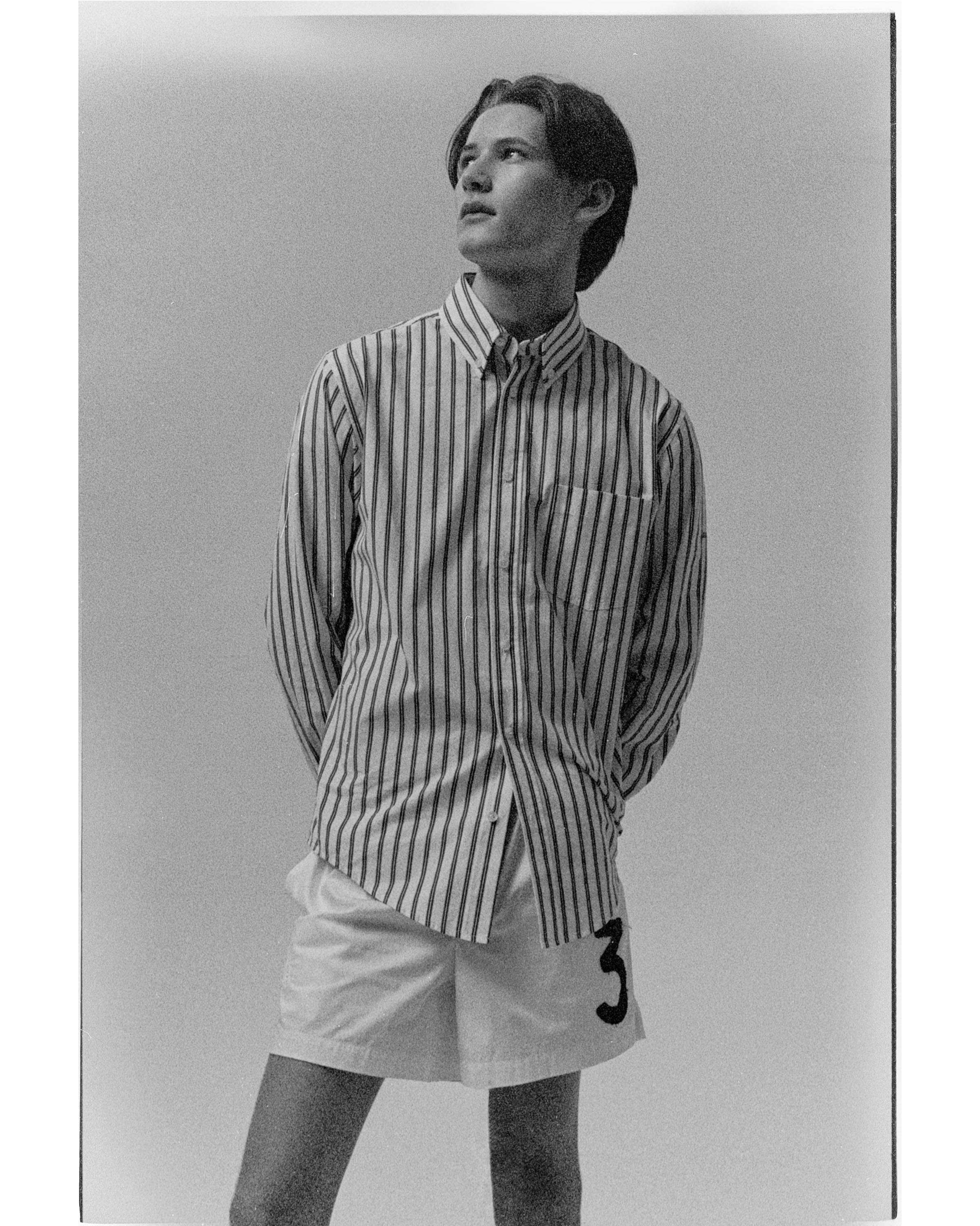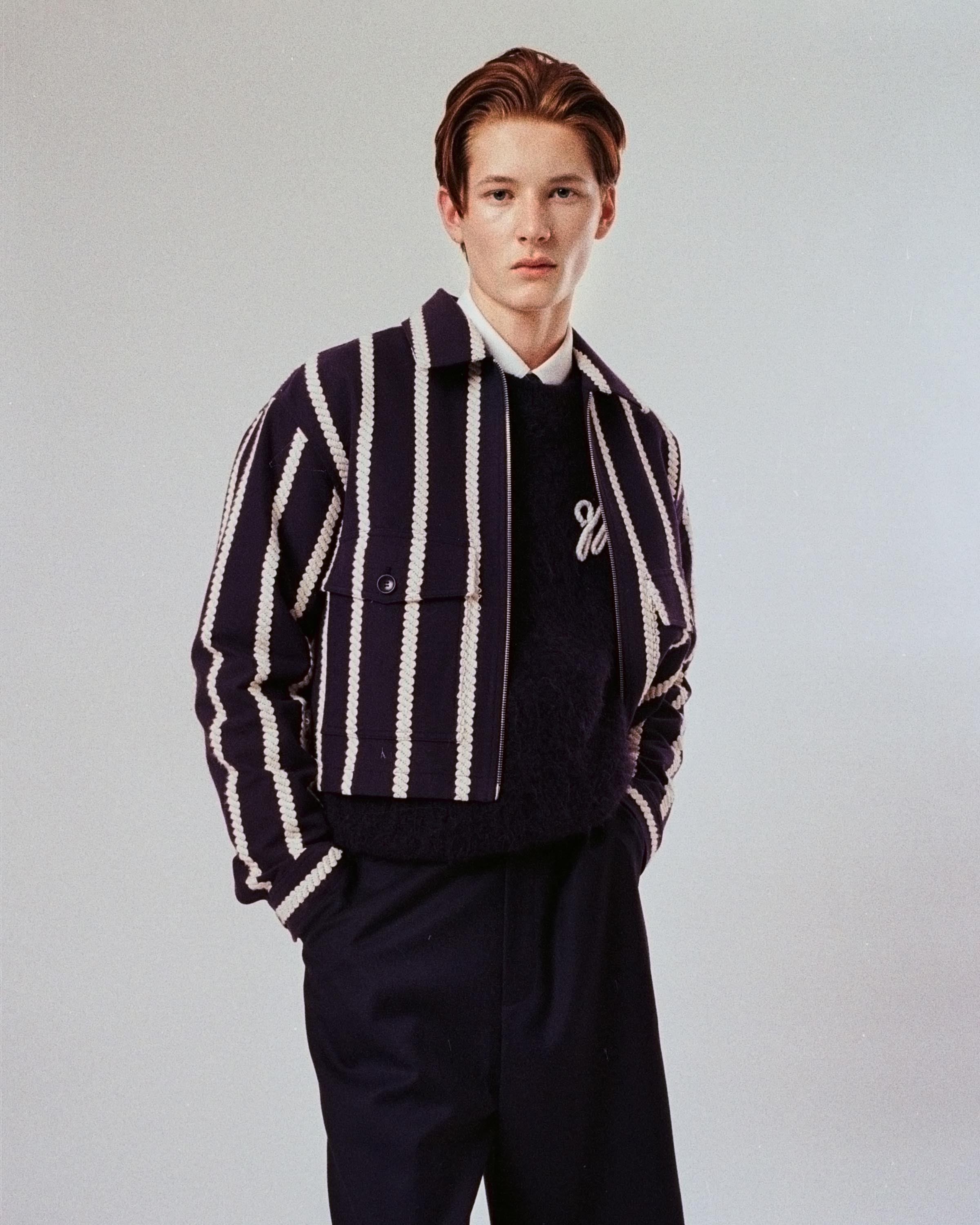 Elsewhere in the capsule, Fletcher’s British heritage shines through in the form of rugby style shorts, striped jerseys and knitted polos emblazoned with appliqué sporting style numbers. Taking inspiration from both the sports pitches of the English Home Counties and the ancient Chinese art of Feng Shui, Fletcher chose significant numbers reflecting his hopes for Mithridate’s future.