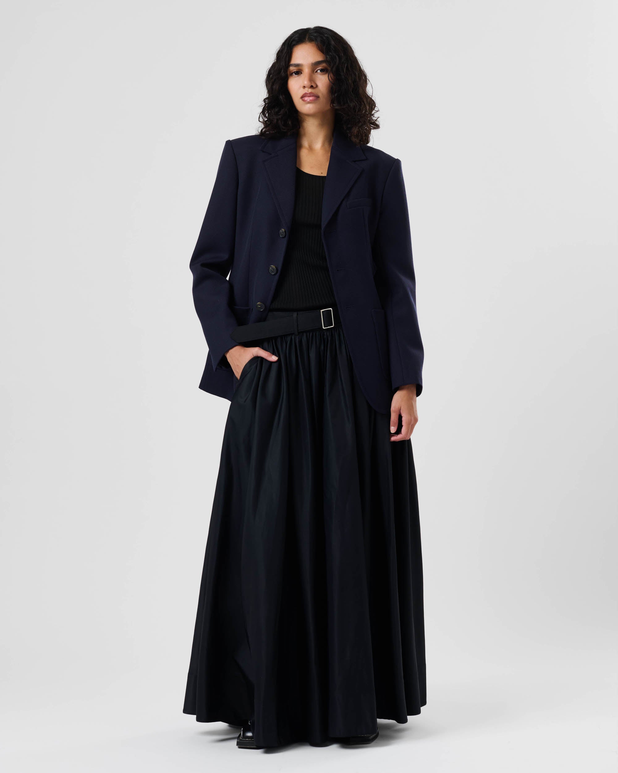 View Similar ProductsFull-length skirt crafted from heavyweight satin with a soft lustrous finish. Designed with a dropped waist and voluminous silhouette that gathers from the hip. Finished with a concealed centre-back zip closure and cut to a regular fit with floor-length hem.