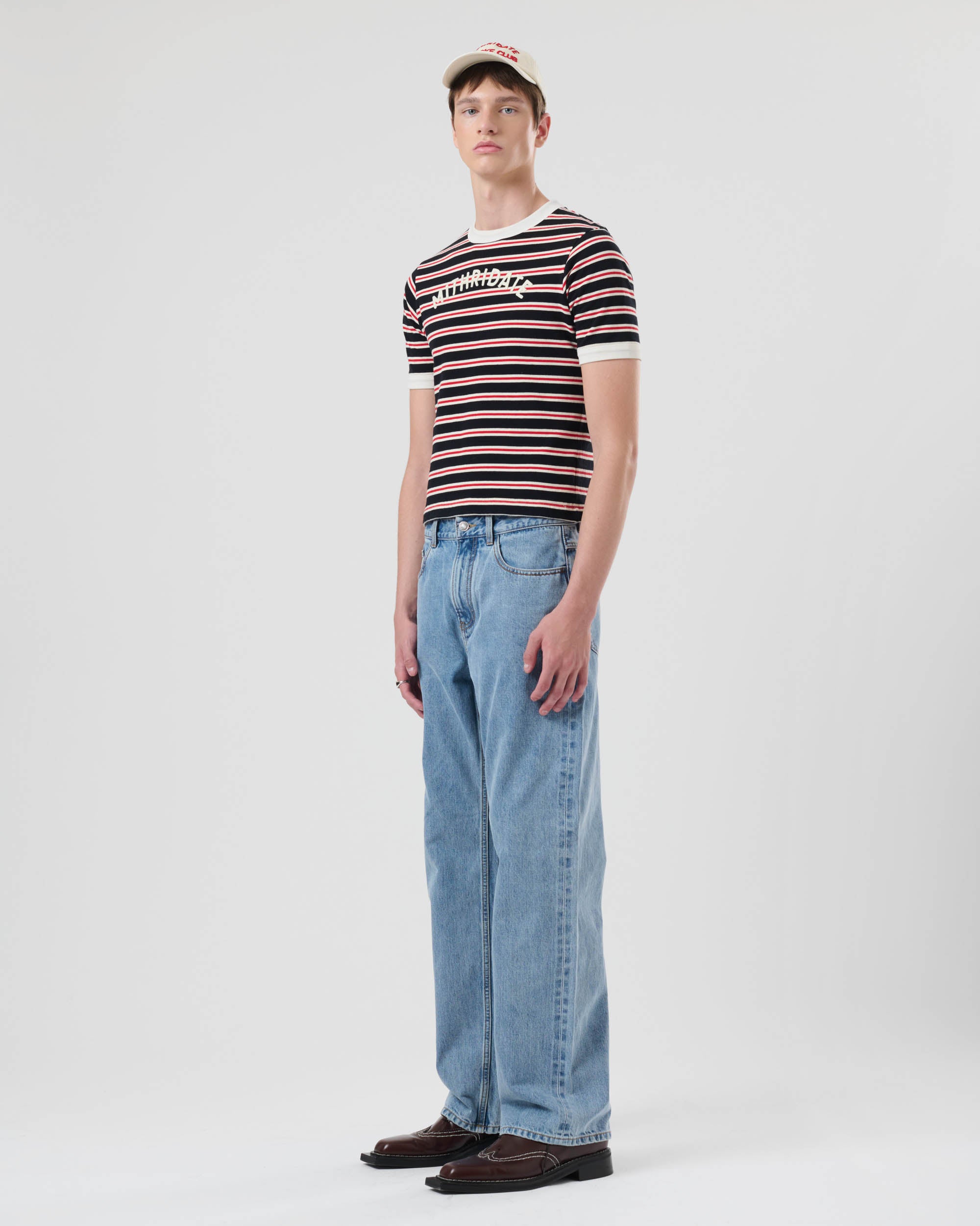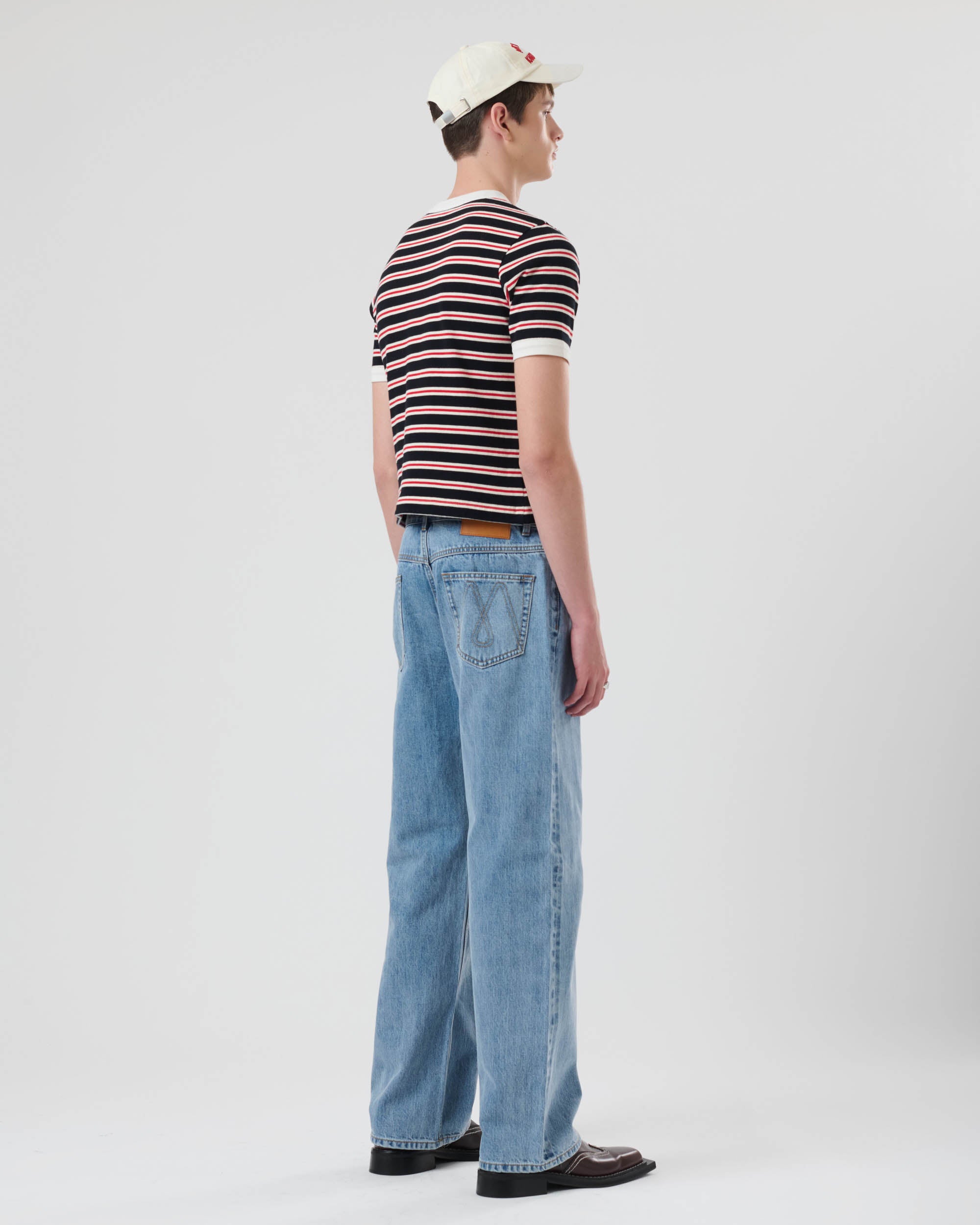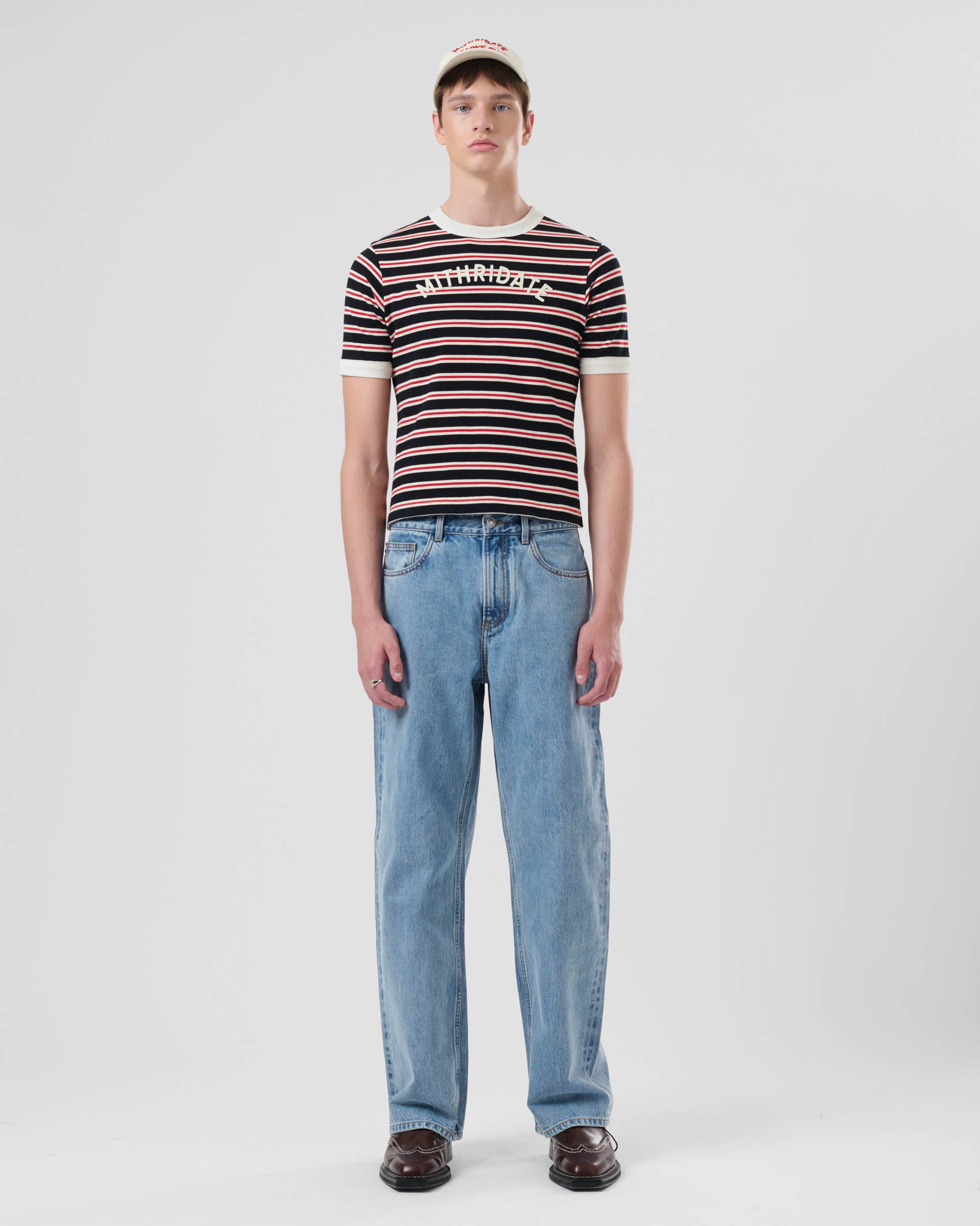 Striped jersey t-shirt in a classic silhouette with ribbed neckline and cuffs. Finished with contrast felt appliqué Mithridate lettering.