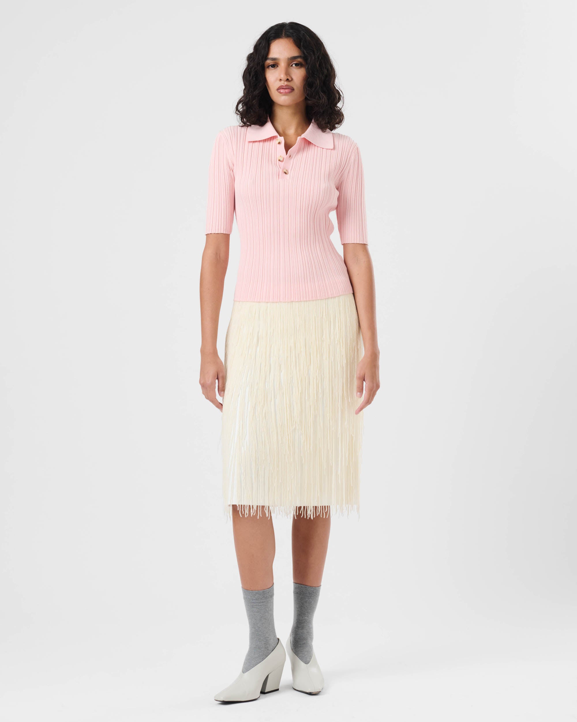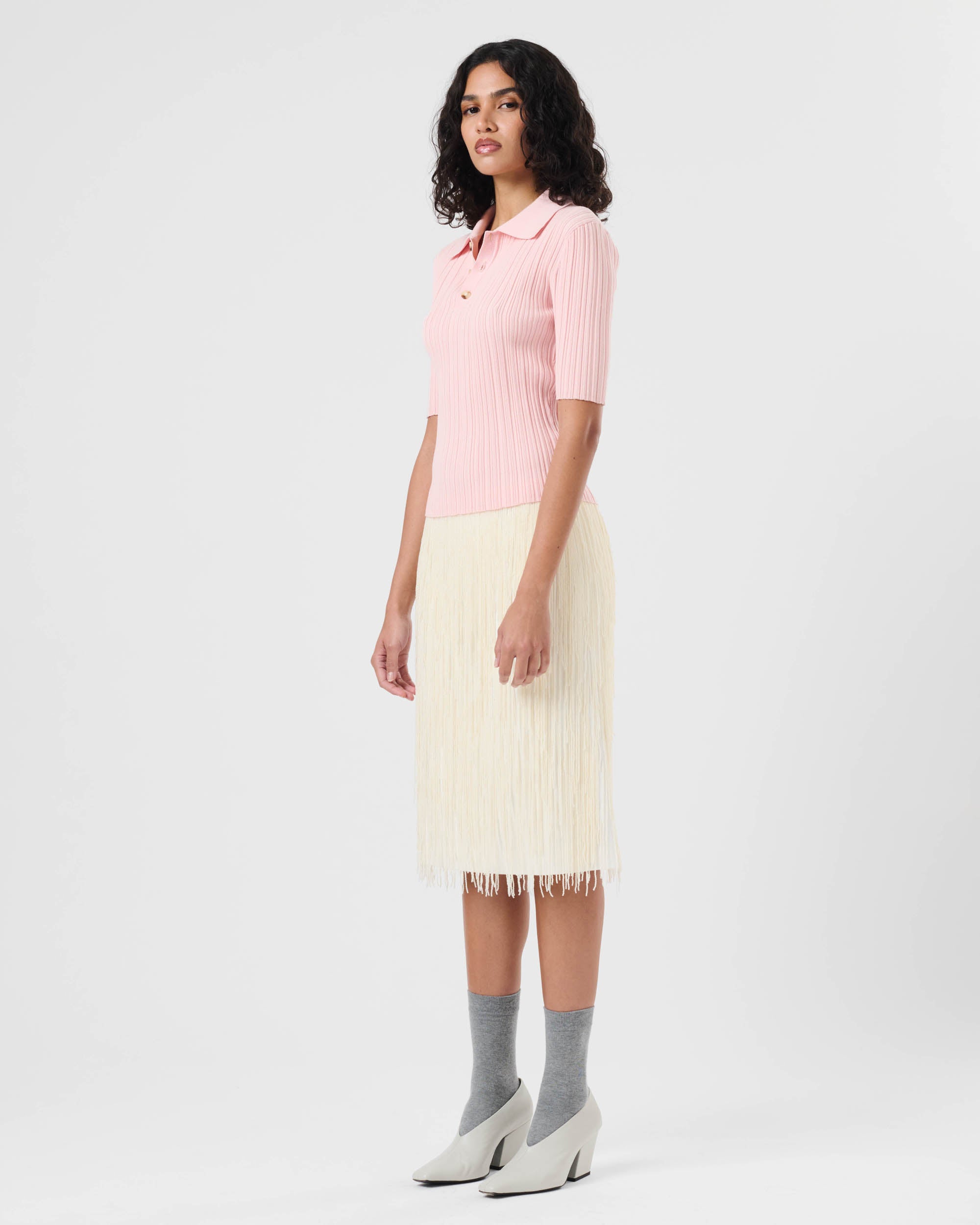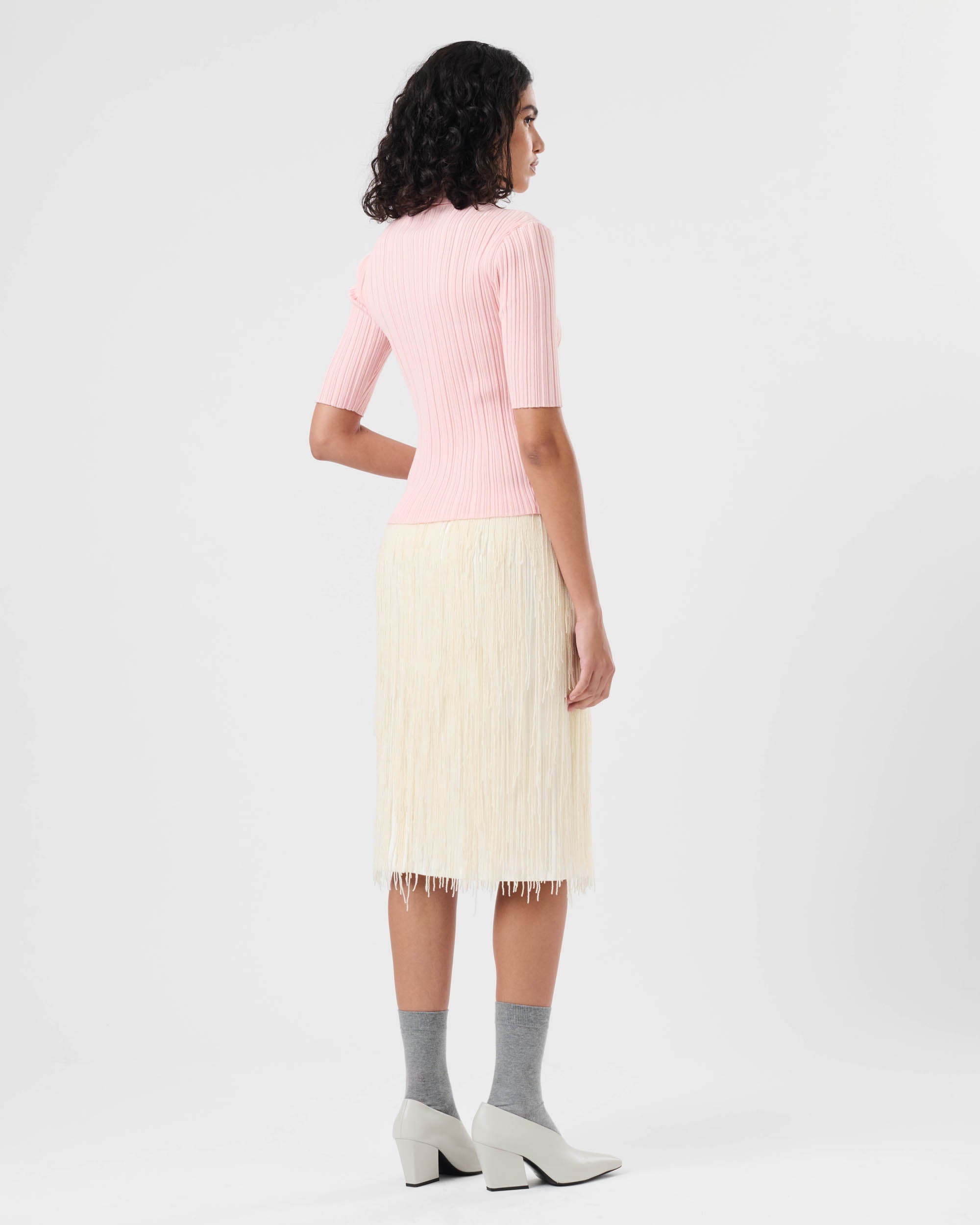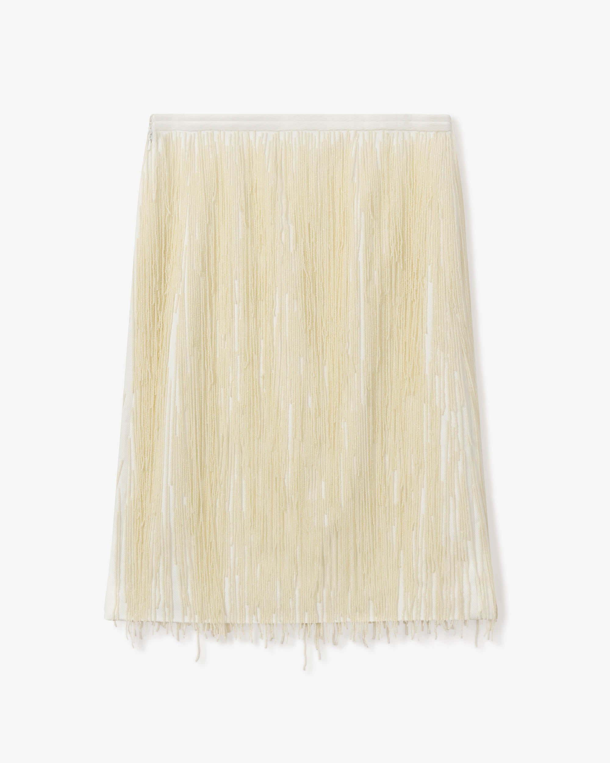 View Similar ProductsMidi skirt adorned with beaded fringing, featuring classic waistband and invisible zip closure in the side seam. Cut to a slightly a-line silhouette and finishing just below knee length.