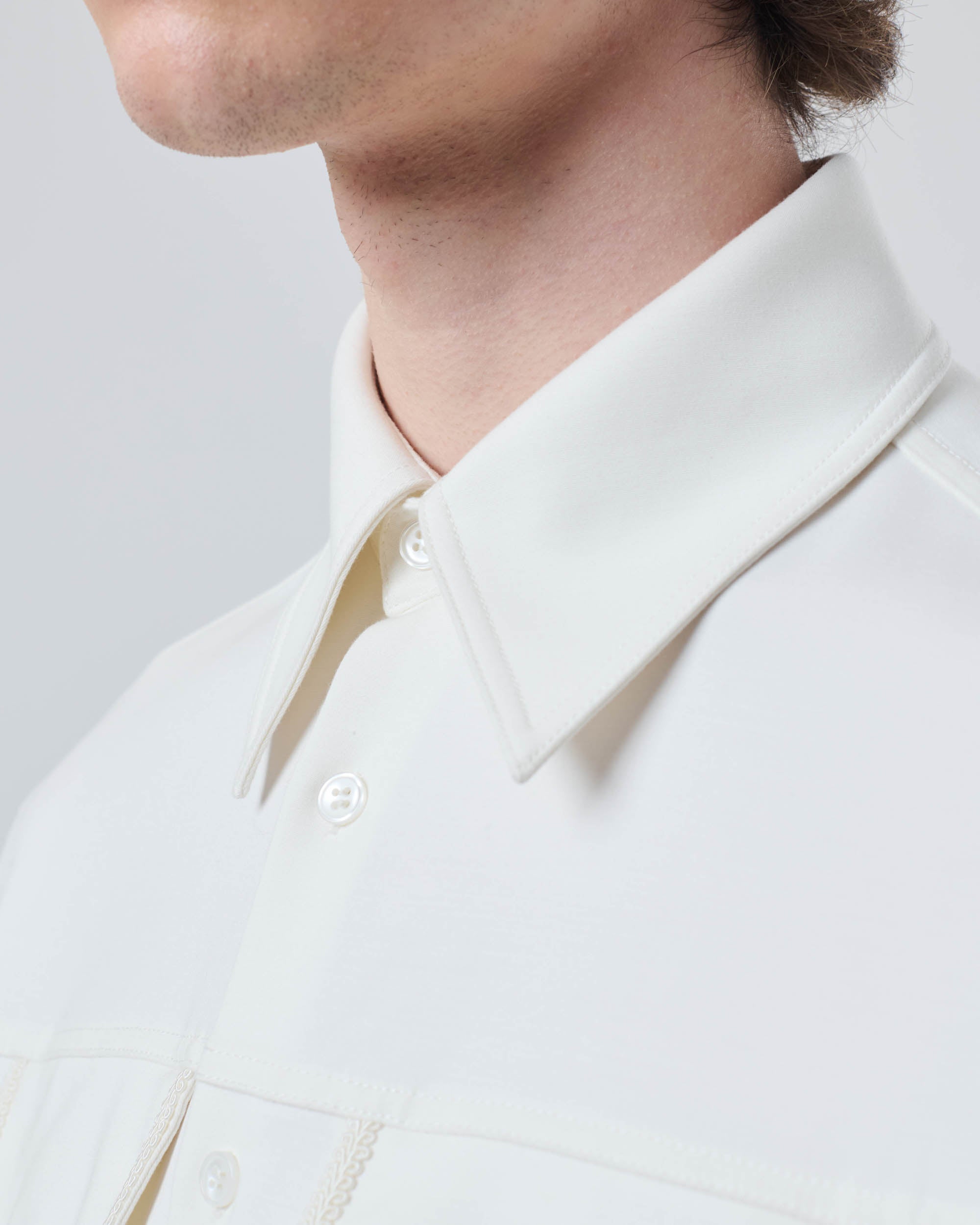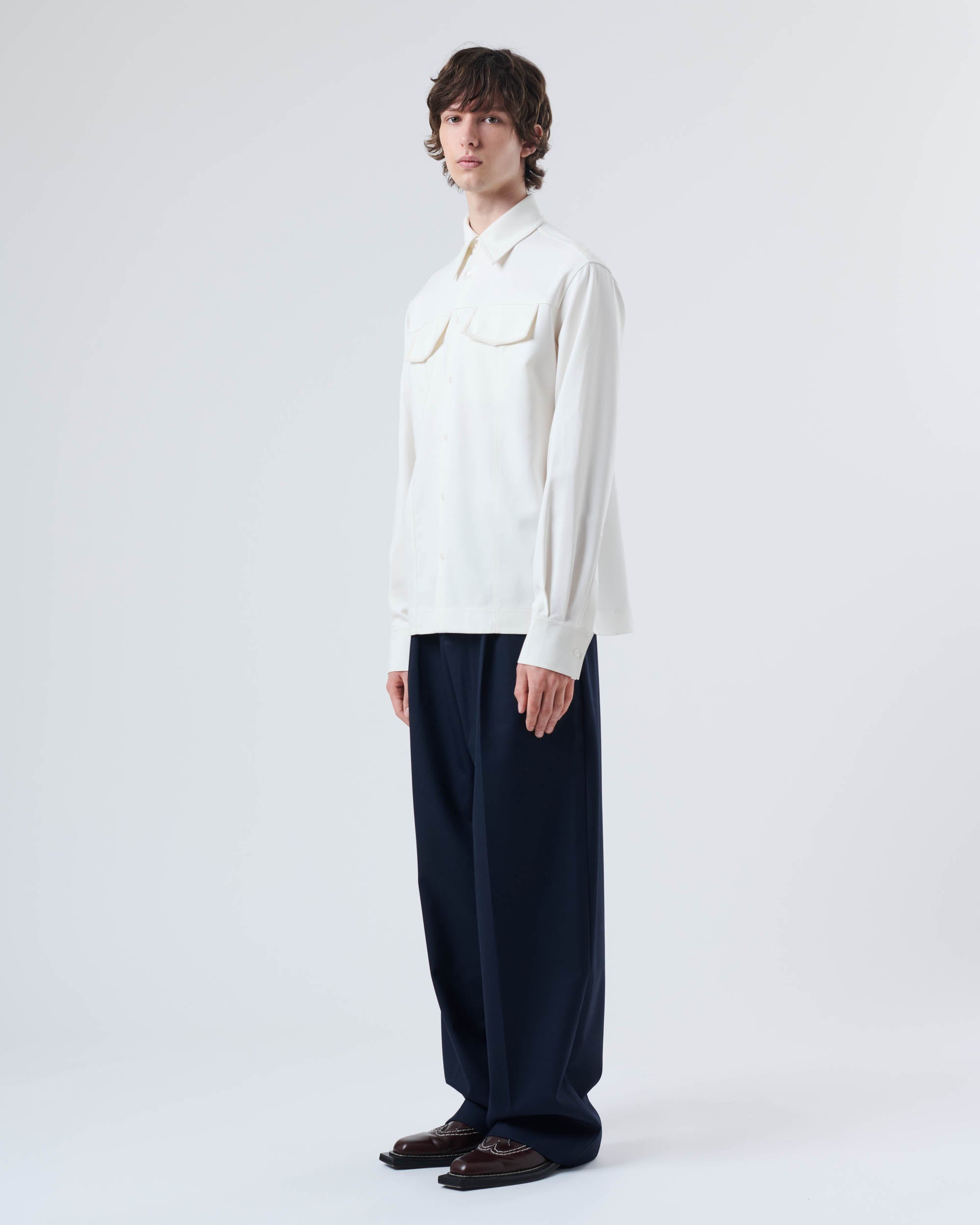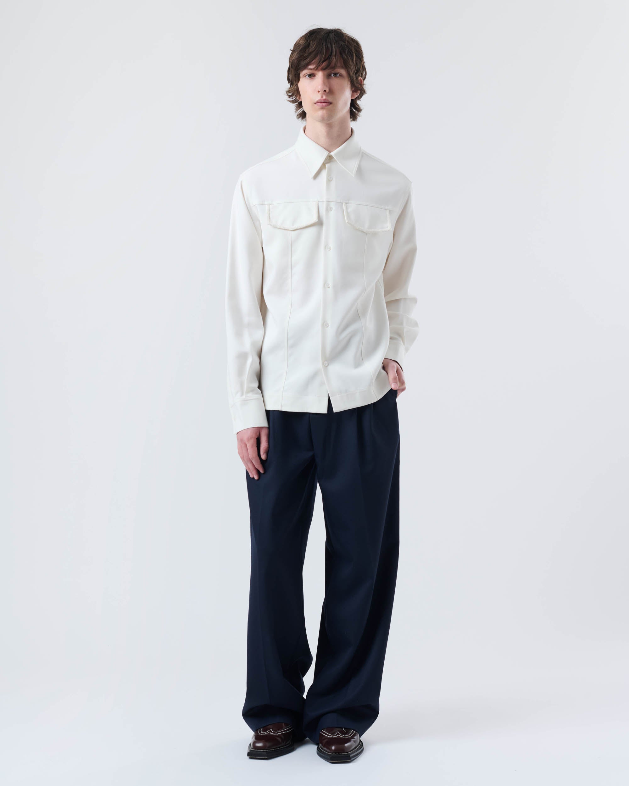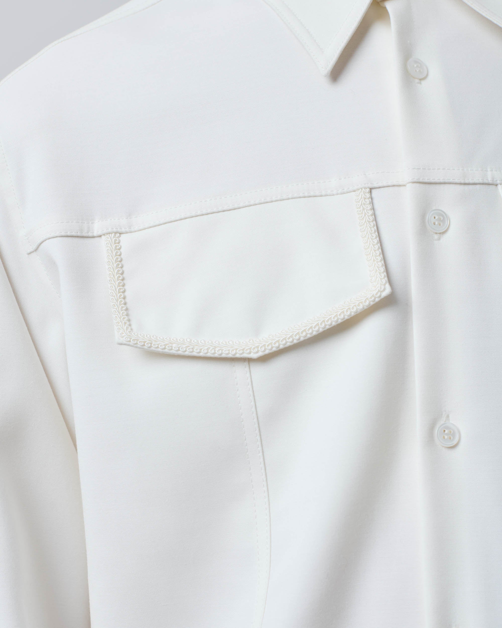 View Similar ProductsButton-up shirt featuring two front patch pockets with braided detailing around edges. Crafted from a fluid Modal fabric and cut to a regular fit, finishing below hip length.