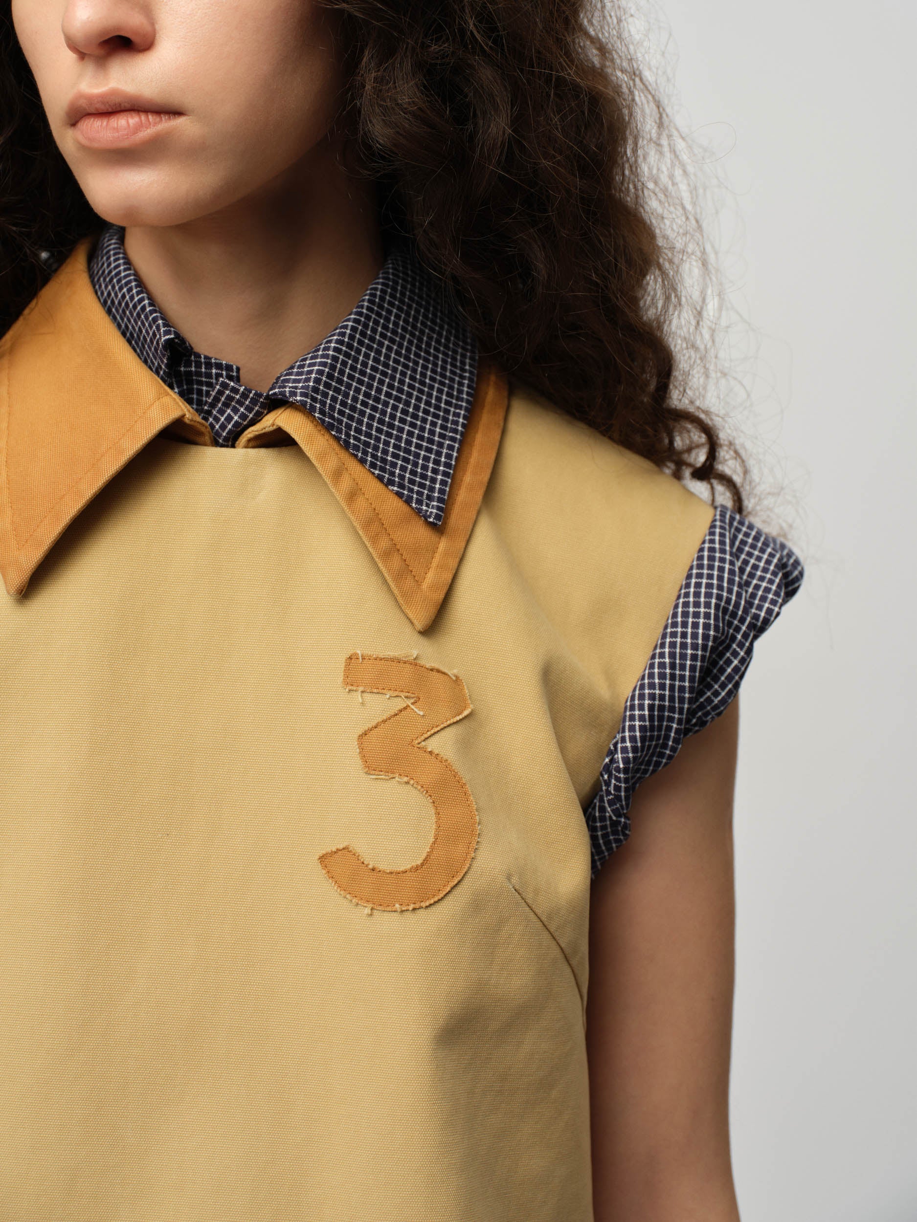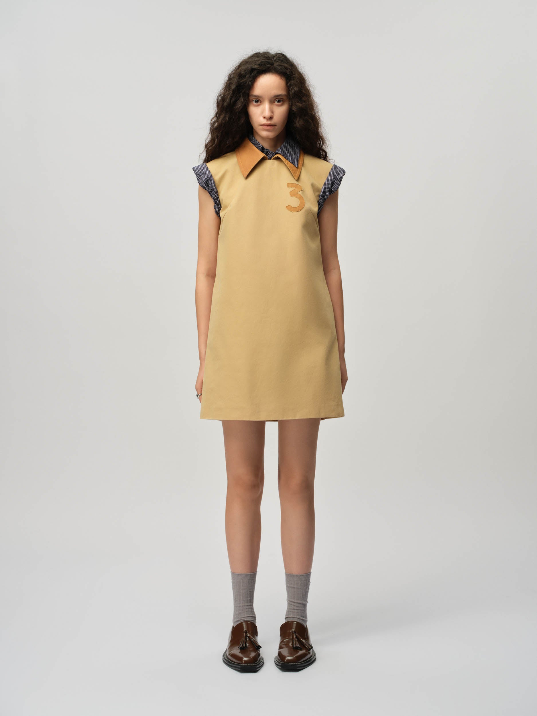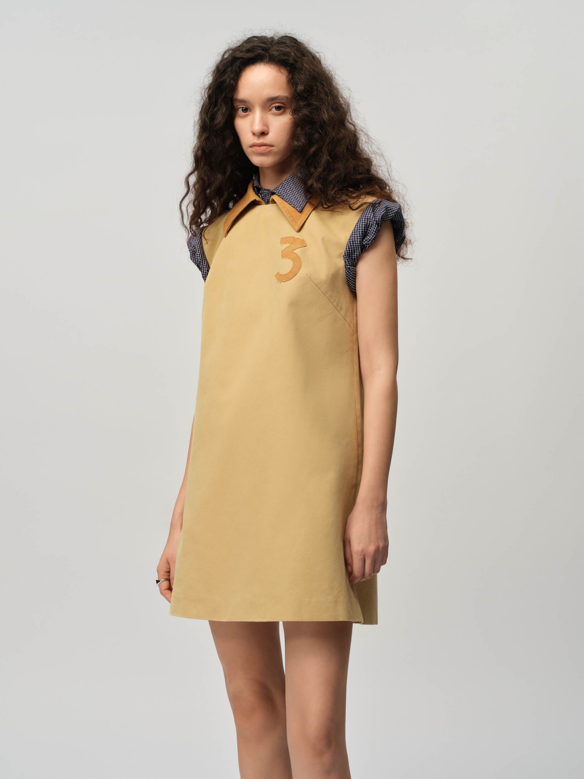 View Similar ProductsSleeveless canvas shift dress featuring detachable collar and appliqué number 3 on chest. Cut to a regular fit and above knee length.