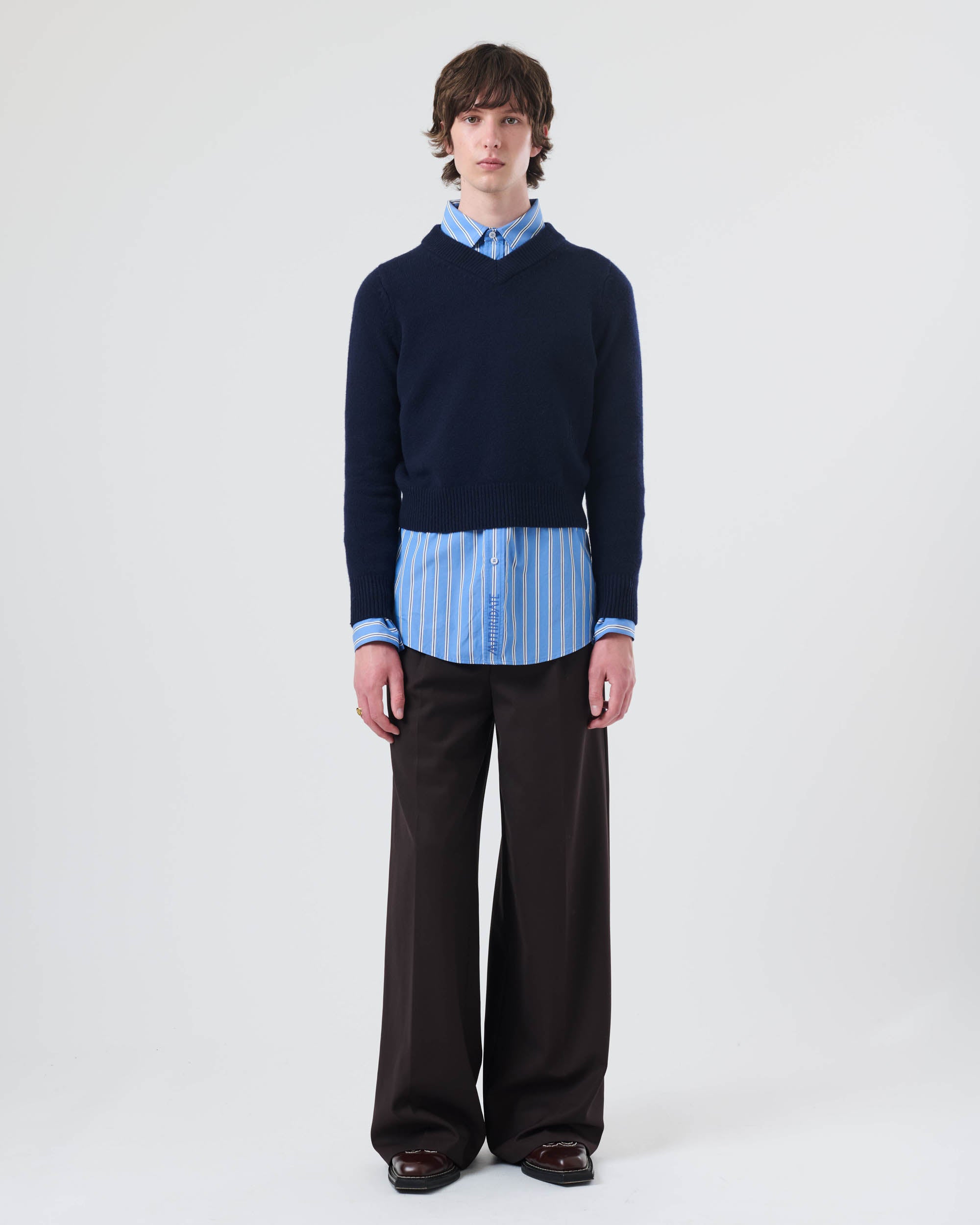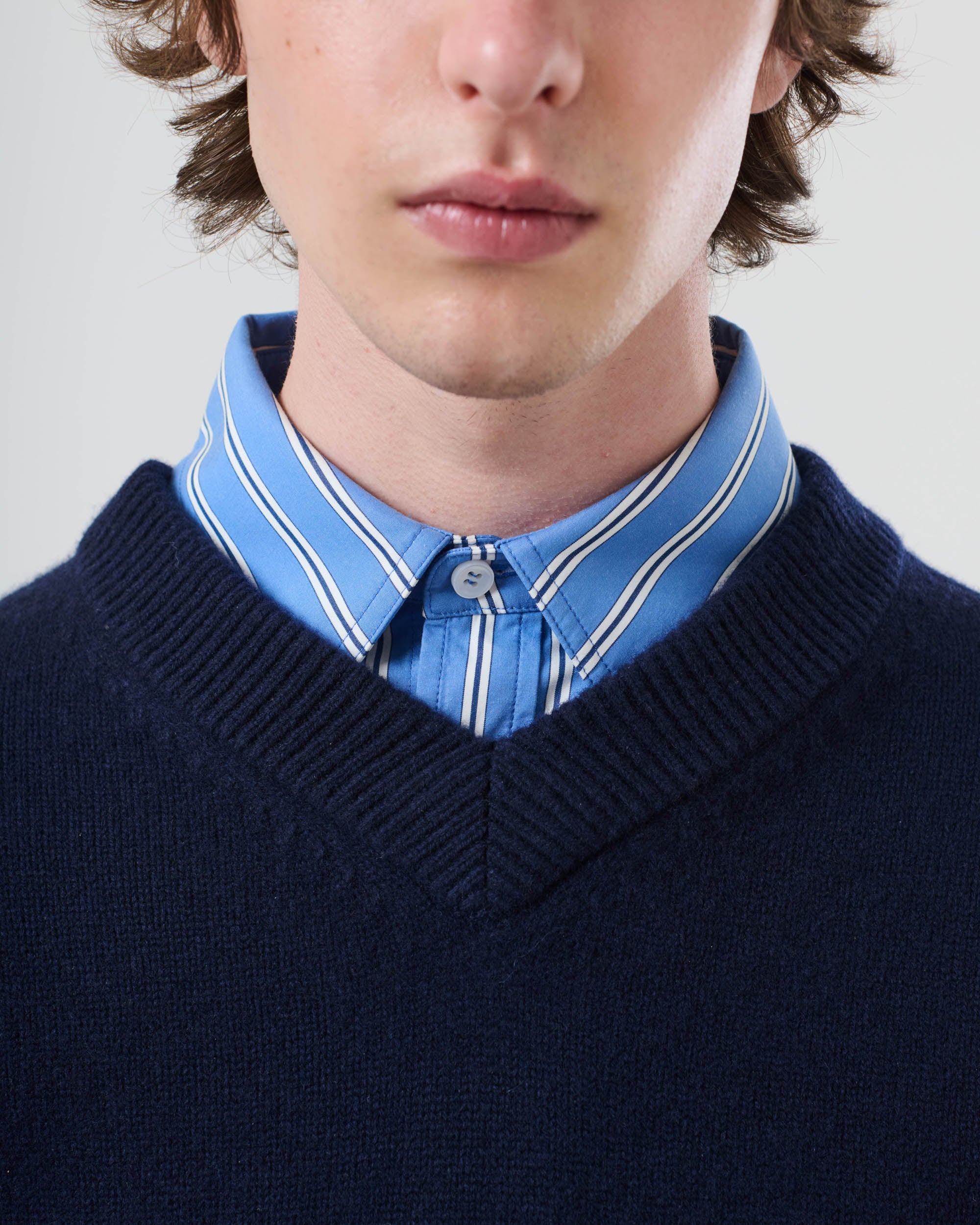 View Similar ProductsV-neck jumper crafted from 100% wool featuring chunky ribbed neckline, cuffs and hem. Cut to a regular fit and waist length.