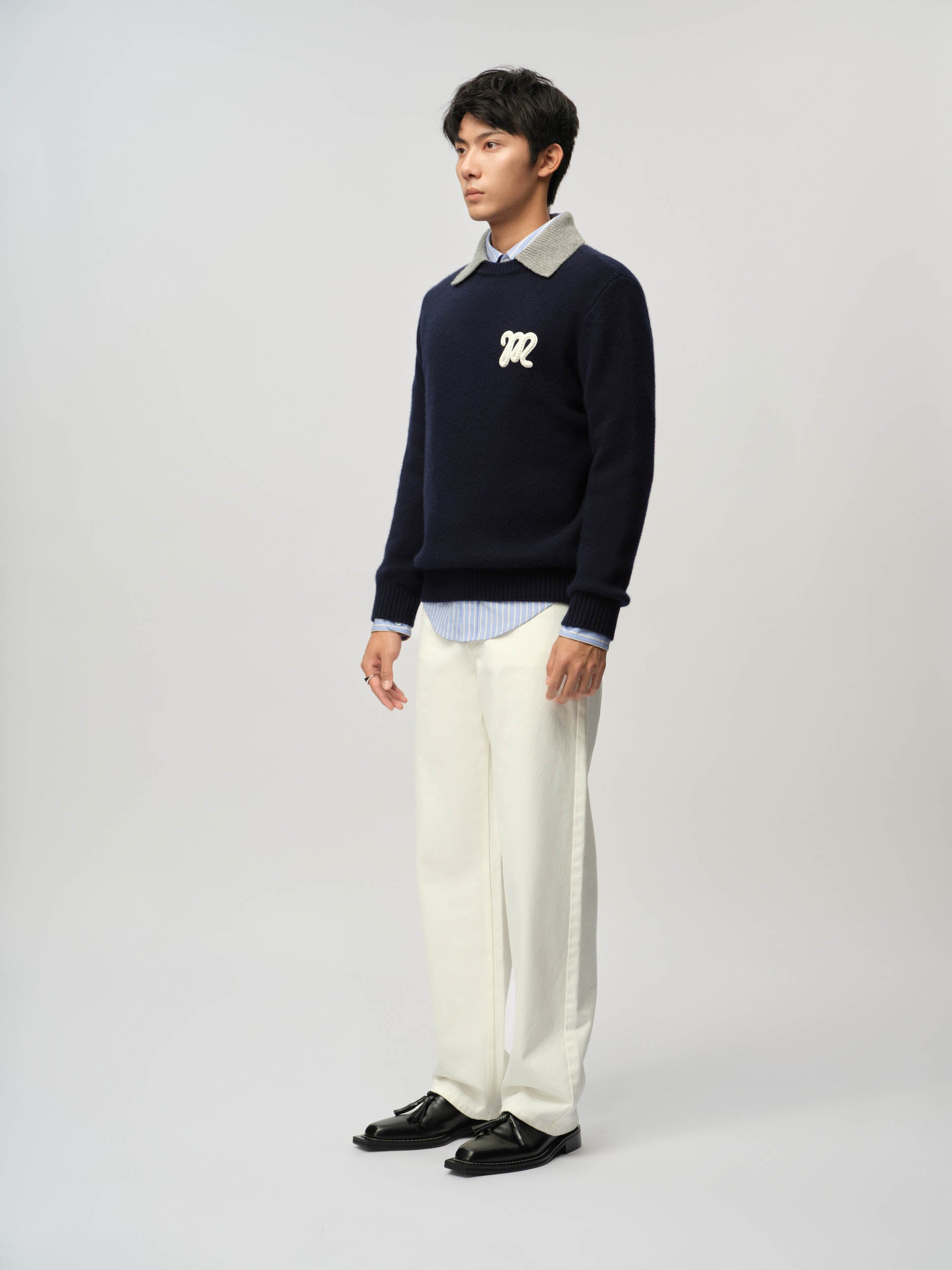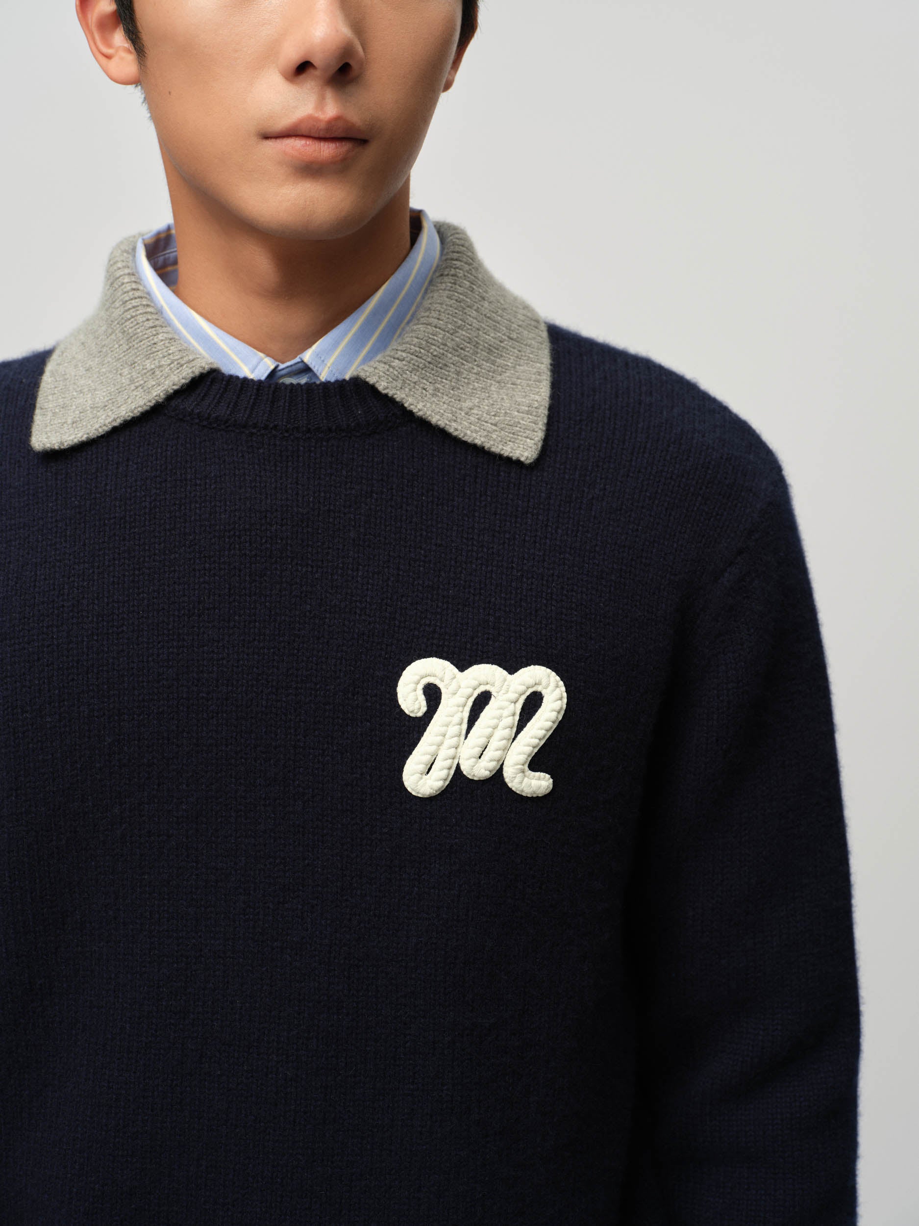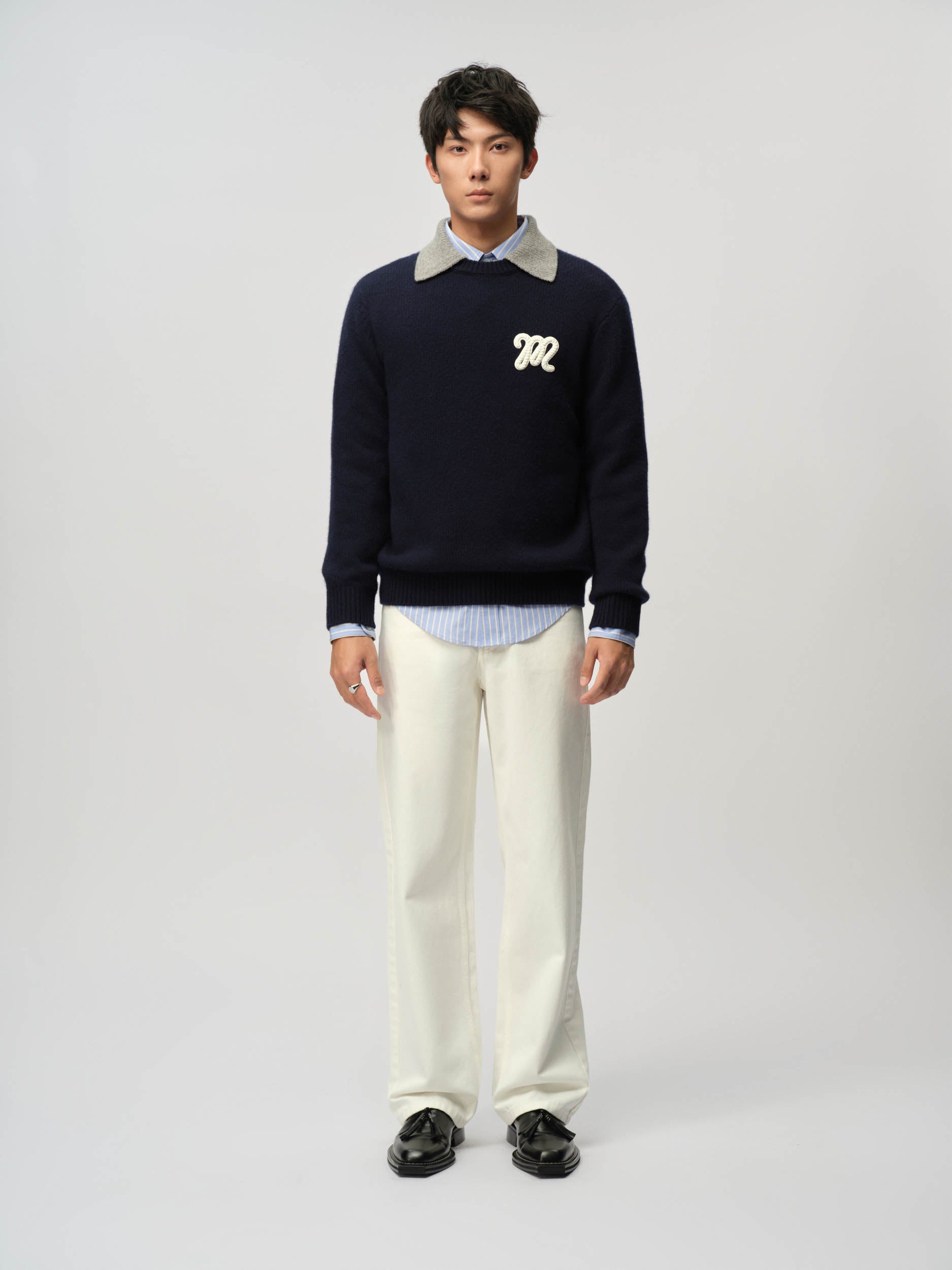 View Similar ProductsUnisex long sleeve crewneck jumper made from 100% cashmere featuring a contrast appliqué letter 'M'. Cut to a regular fit and finished at hip length.
