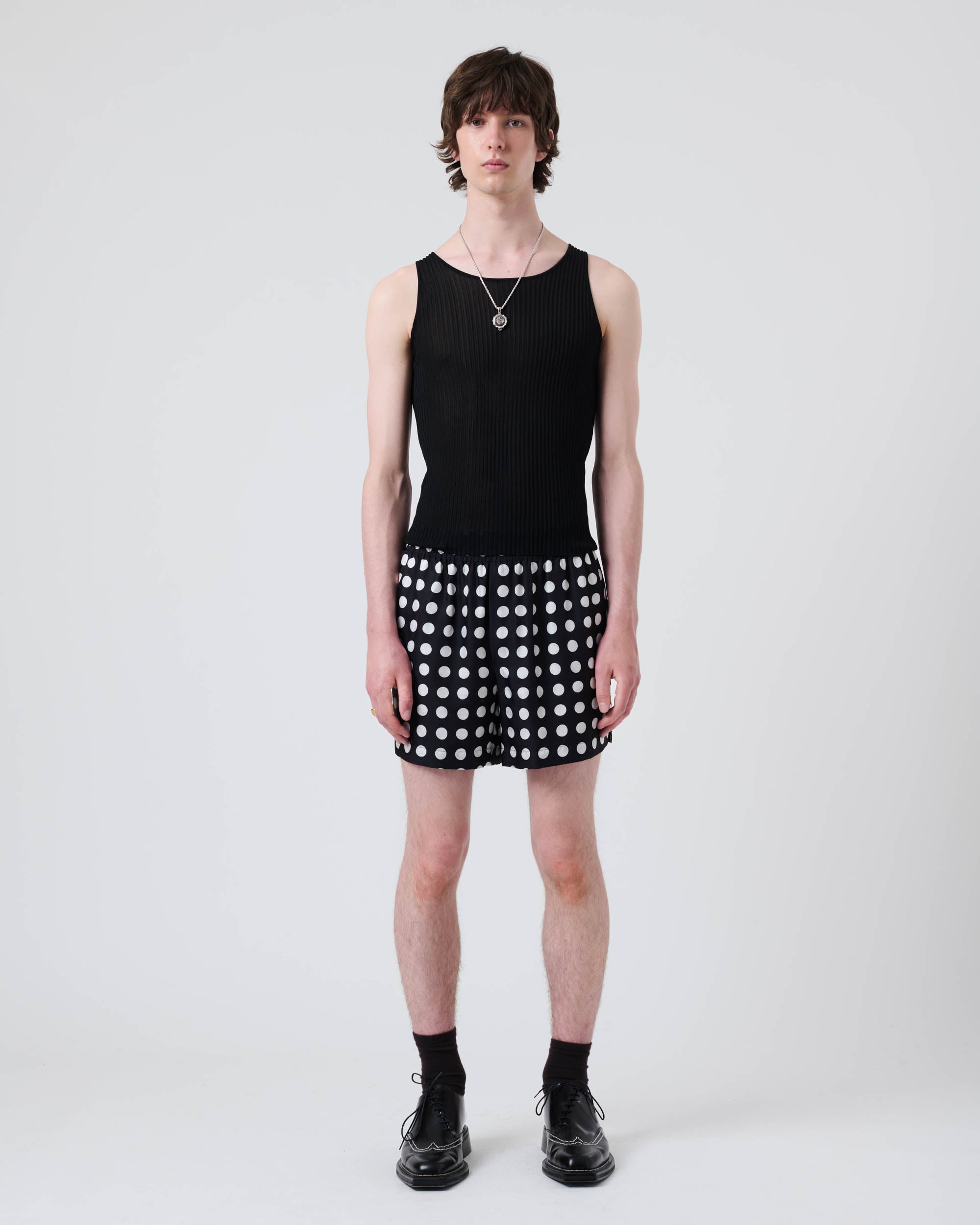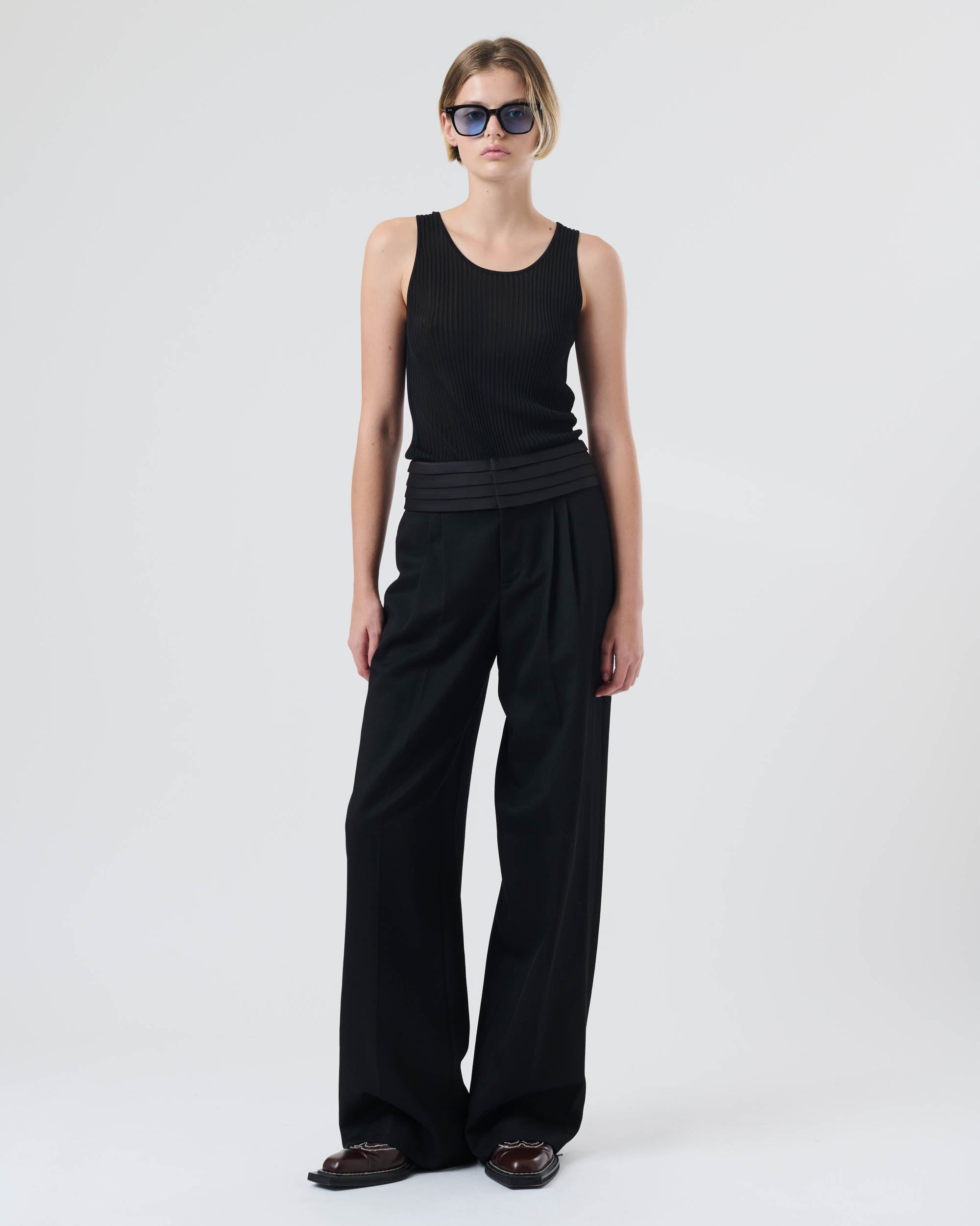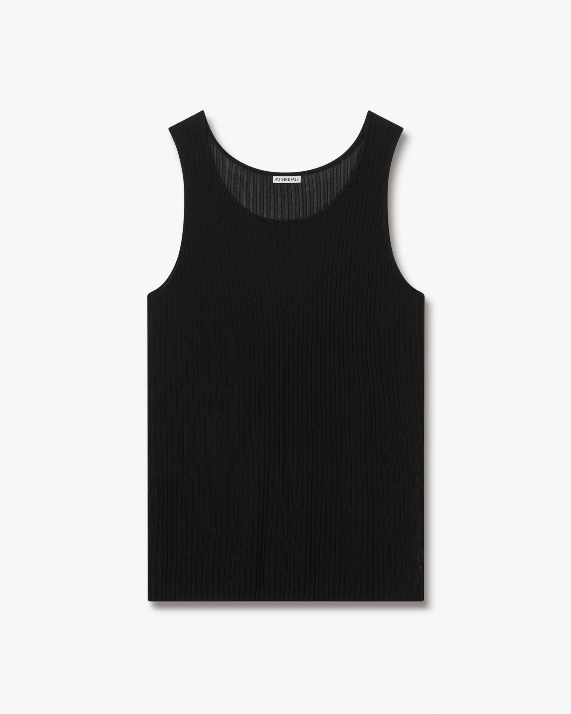 Fine knitted ribbed vest cut to a regular fit and finished at waist.