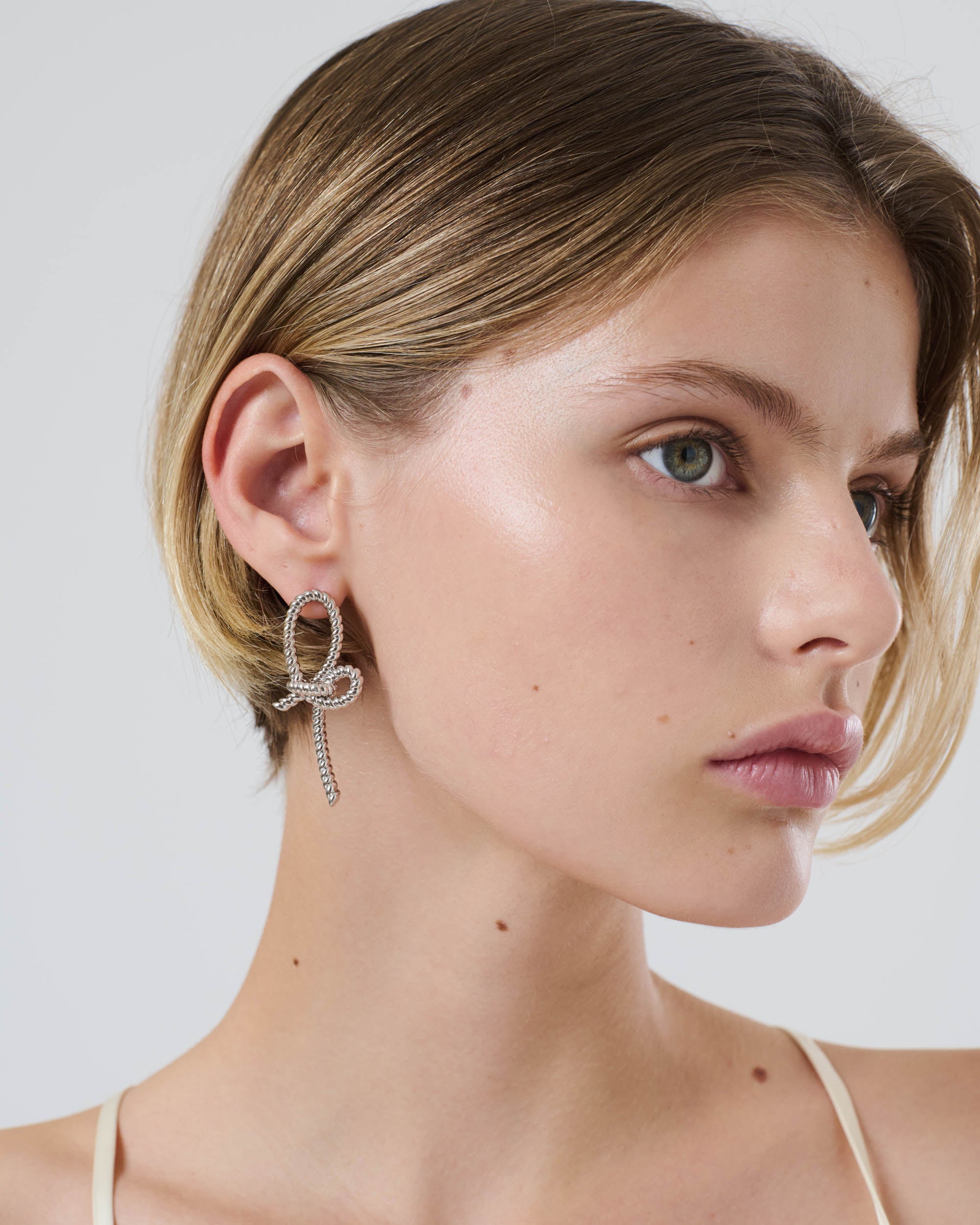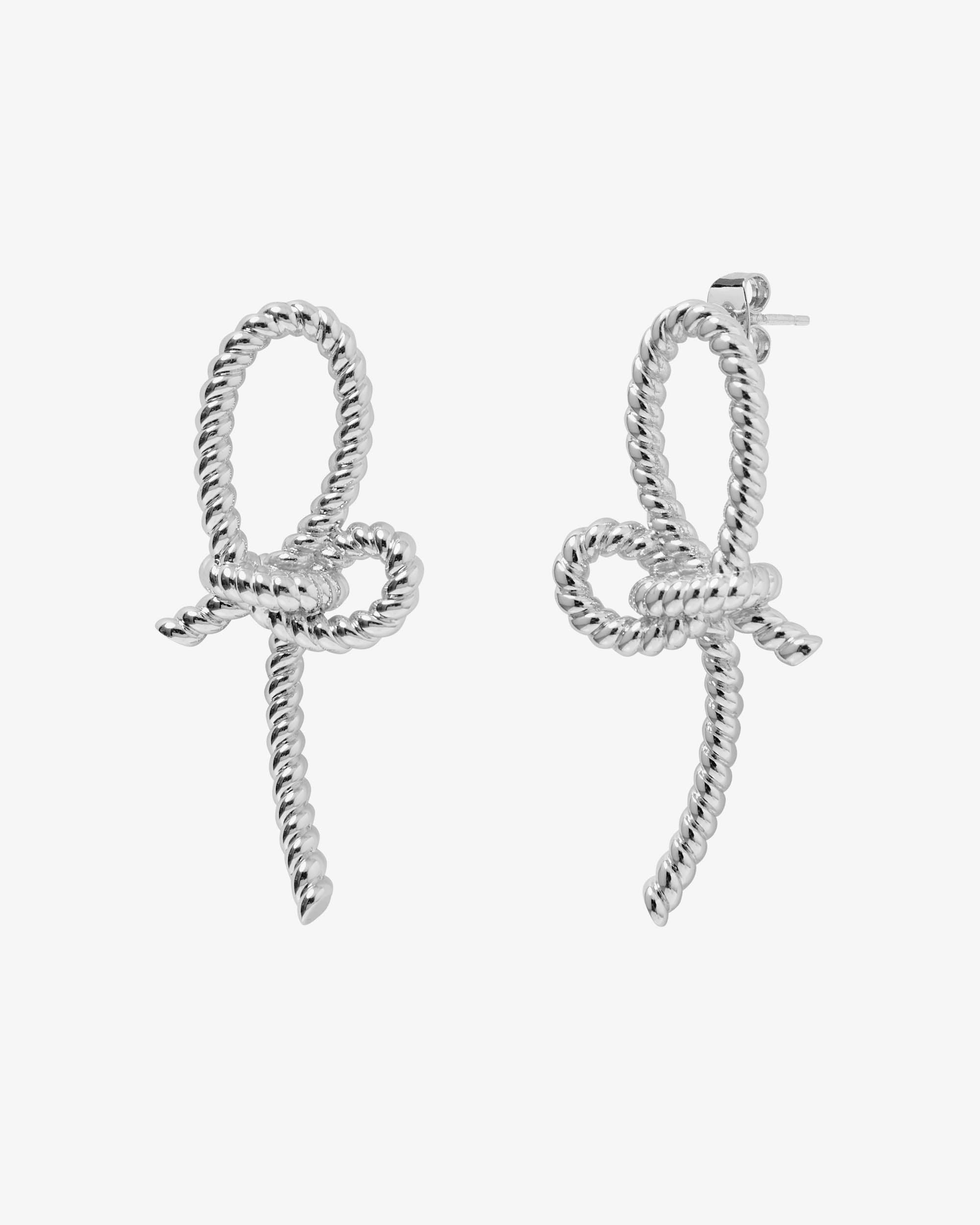 View Similar ProductsSilver earrings featuring a knotted rope design and fastened with a butterfly clip at the back.