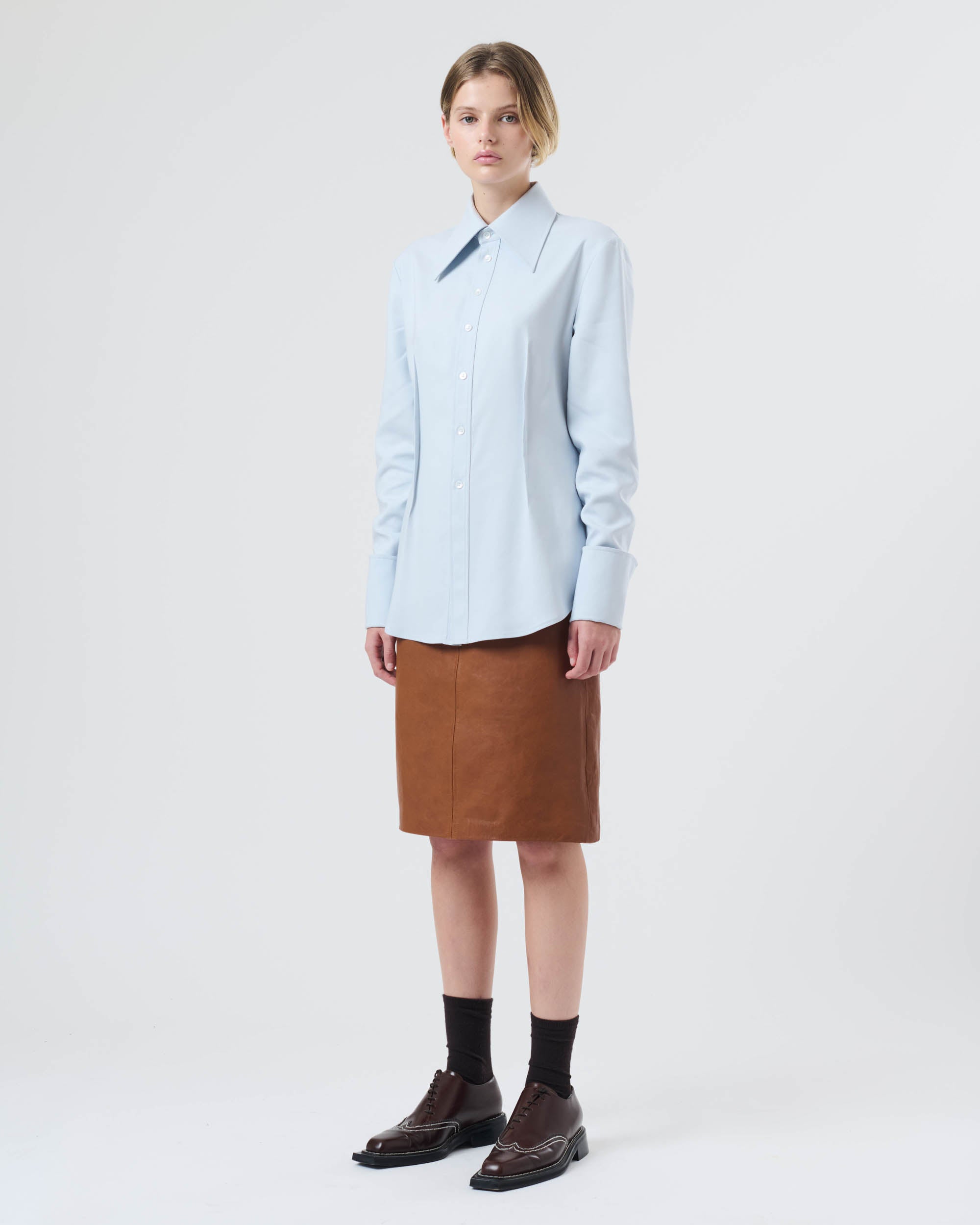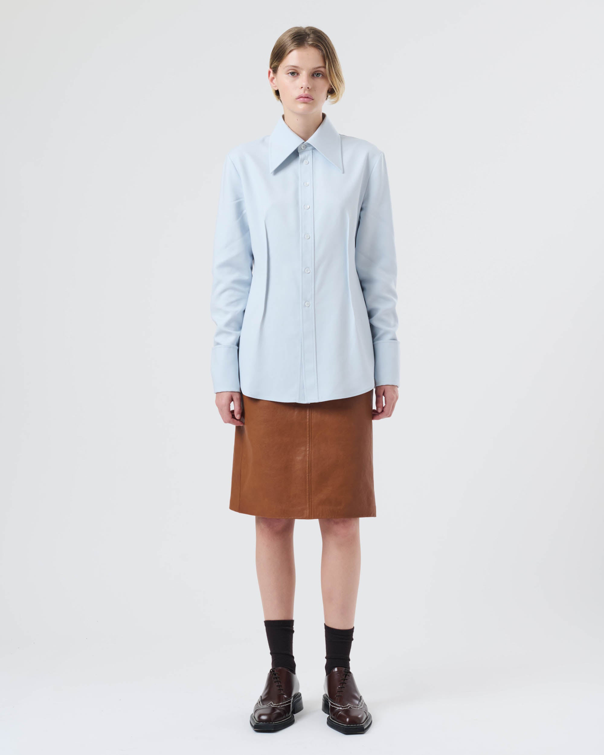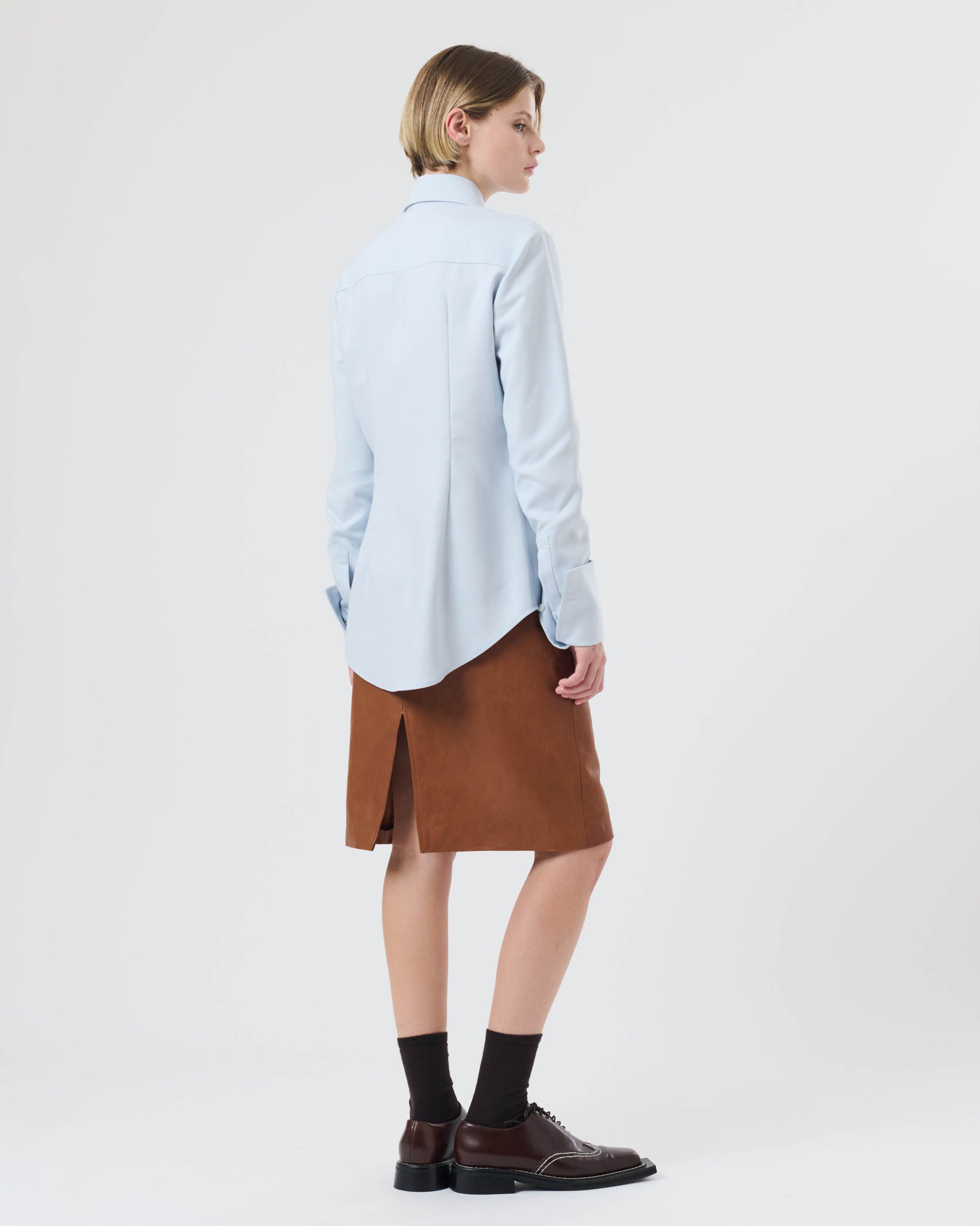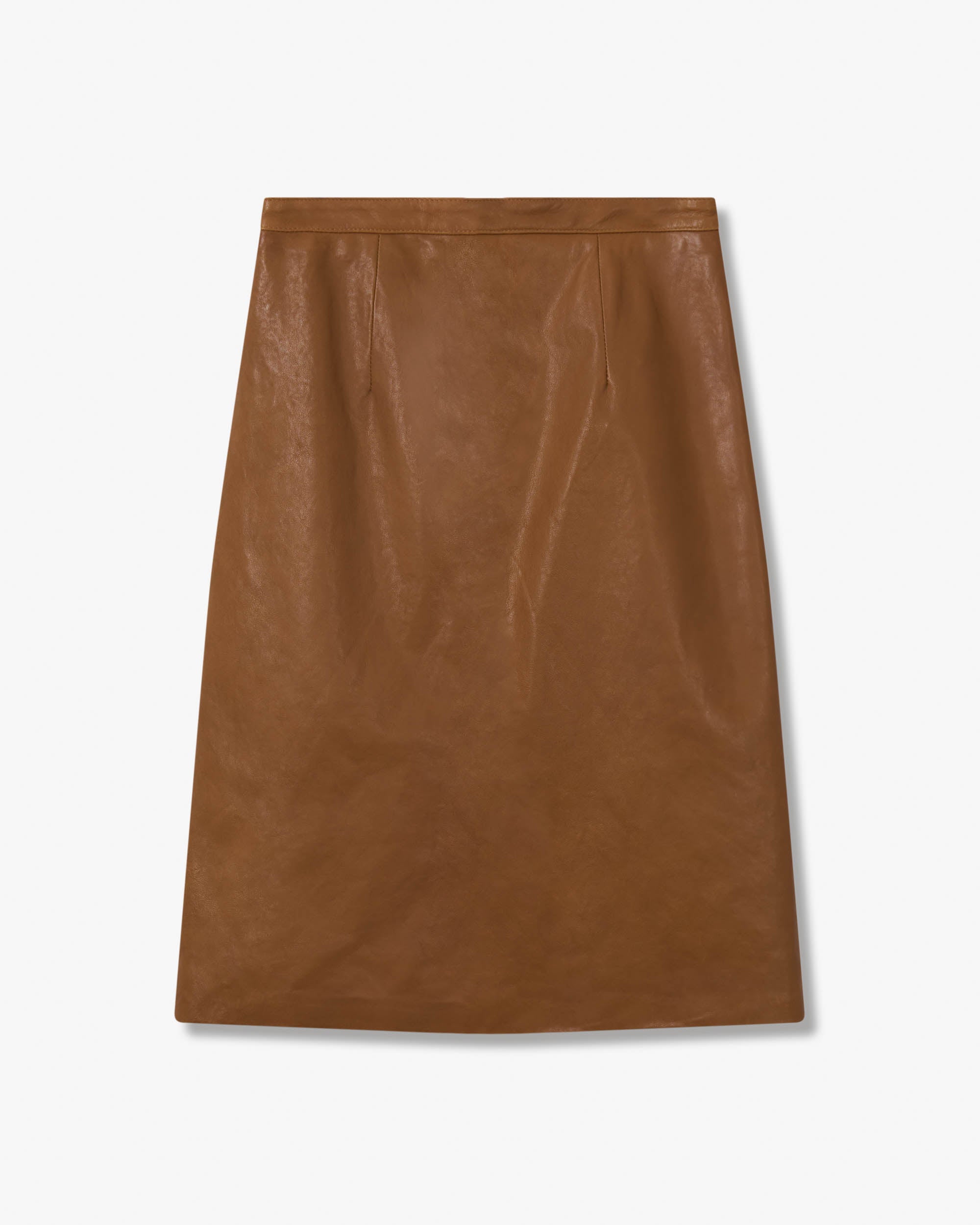 View Similar ProductsLeather midi skirt featuring a centre back slit and button closure. Cut to a regular fit and finishing at knee-length.