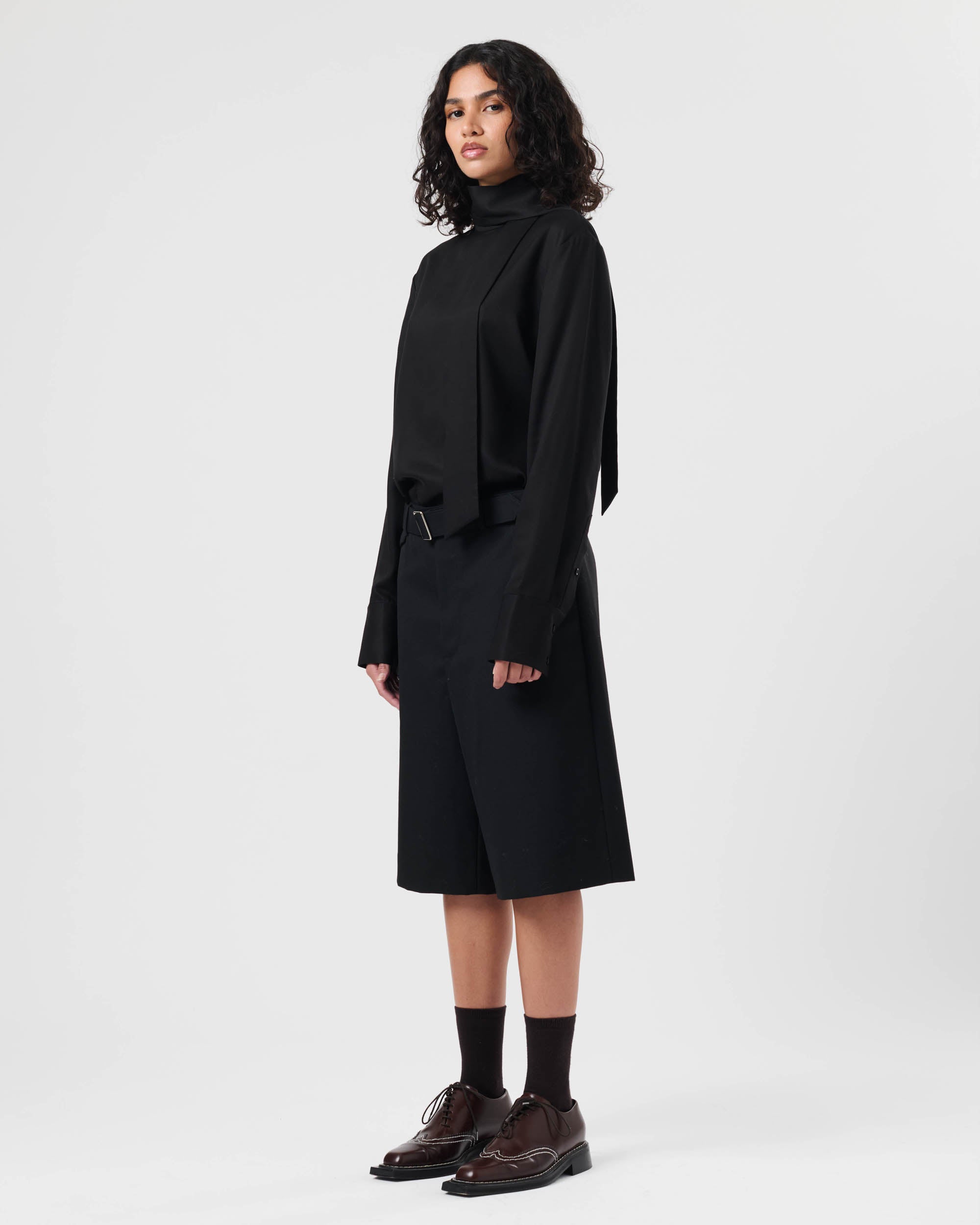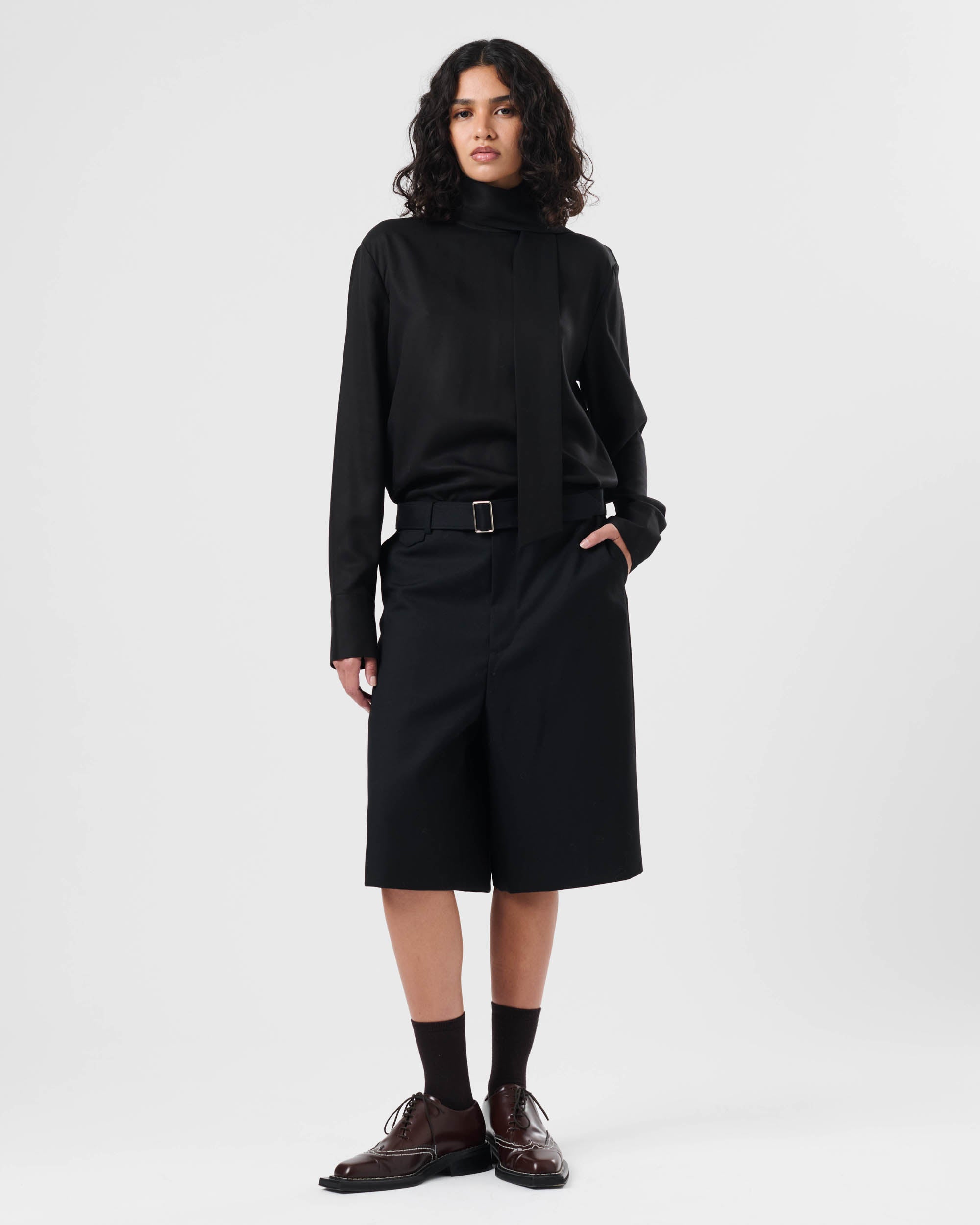 View Similar ProductsUnisex shorts crafted from structured cotton with a utilitarian finish. Designed with a button-up waistband, side seam pockets, and a relaxed silhouette. Cut to an oversized fit that falls just above the knee.