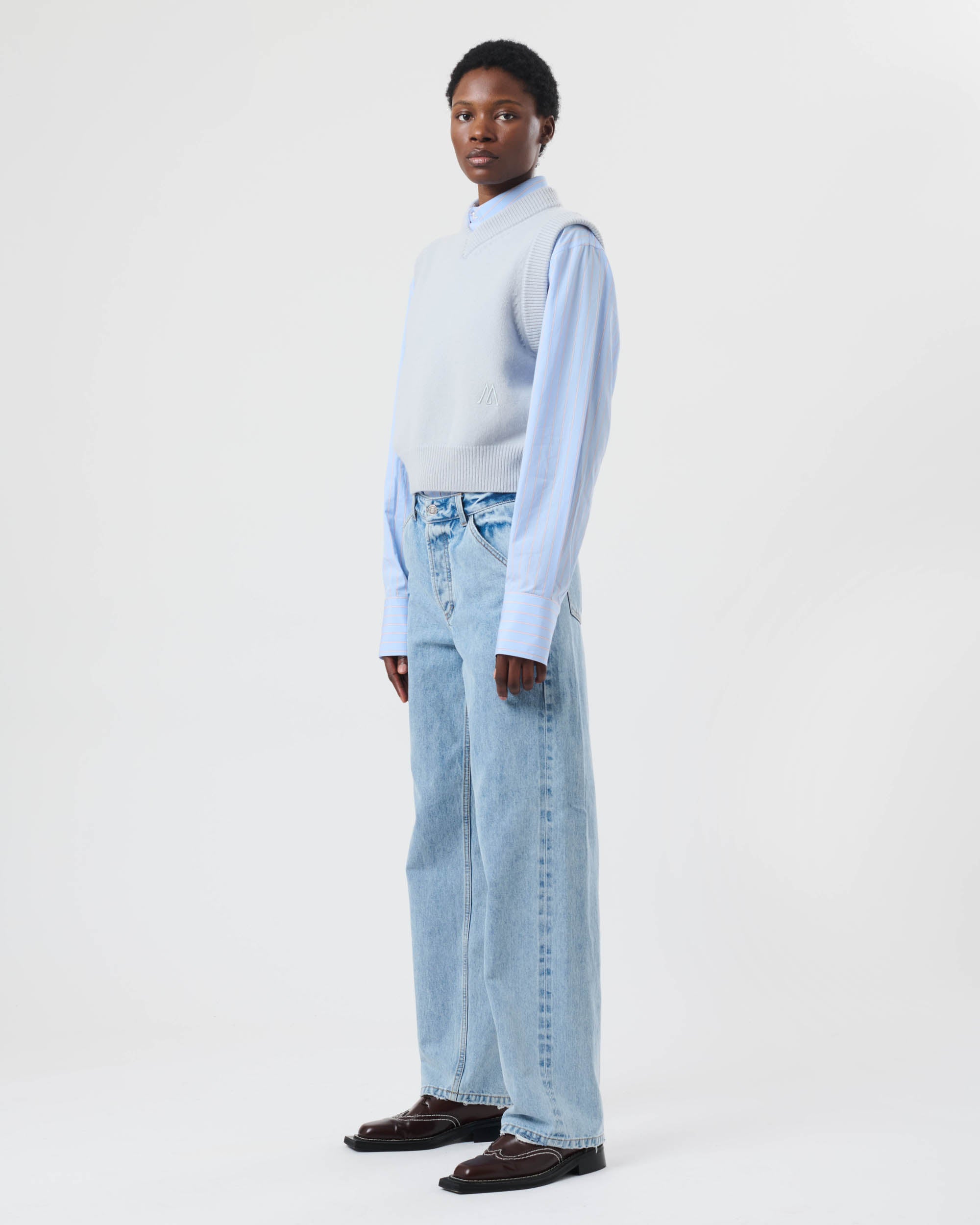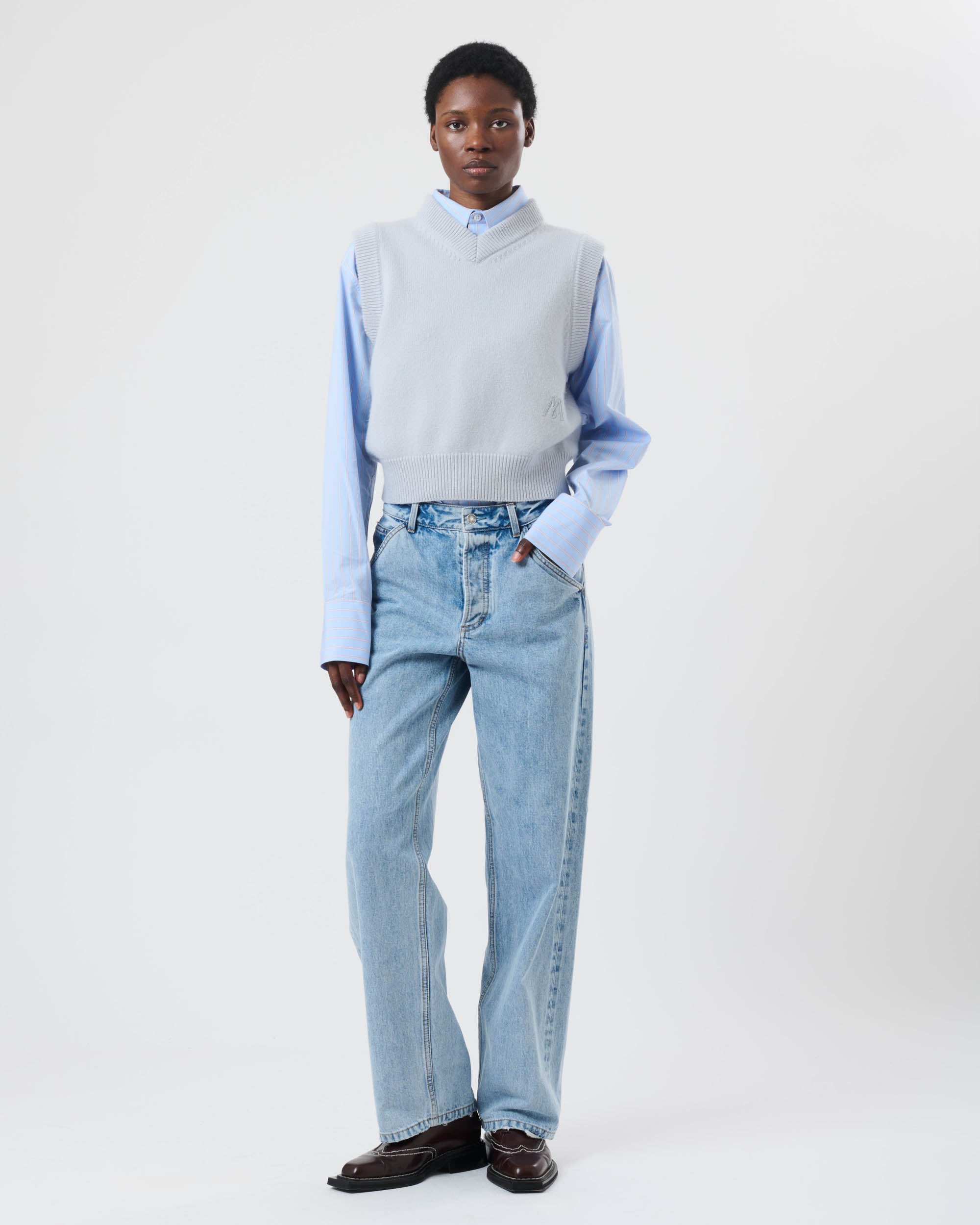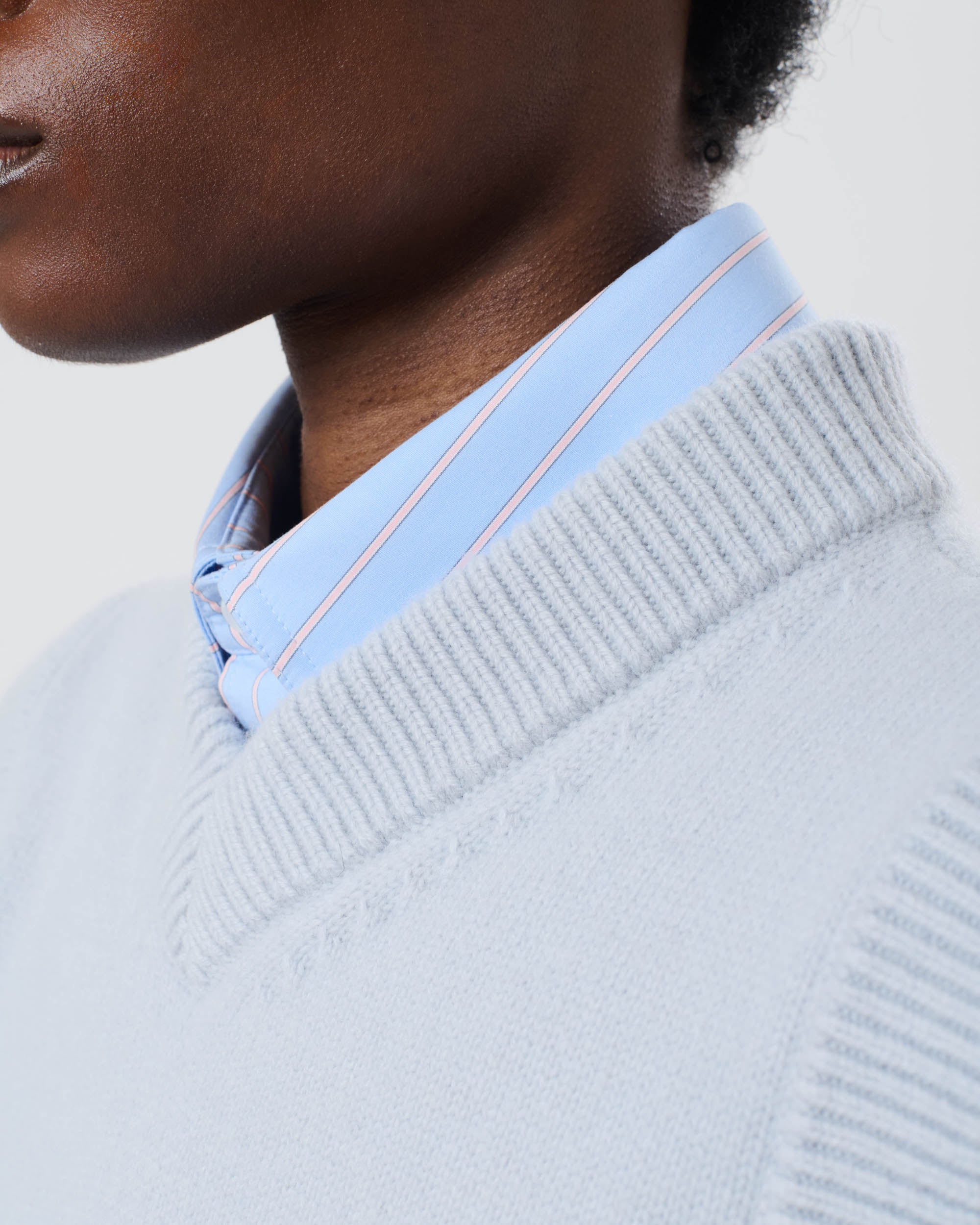 View Similar ProductsSleeveless v-neck jumper crafted from 100% wool, featuring an embroidered logo with a chunky ribbed neckline, armholes and hem. Cut to a regular fit and waist length.