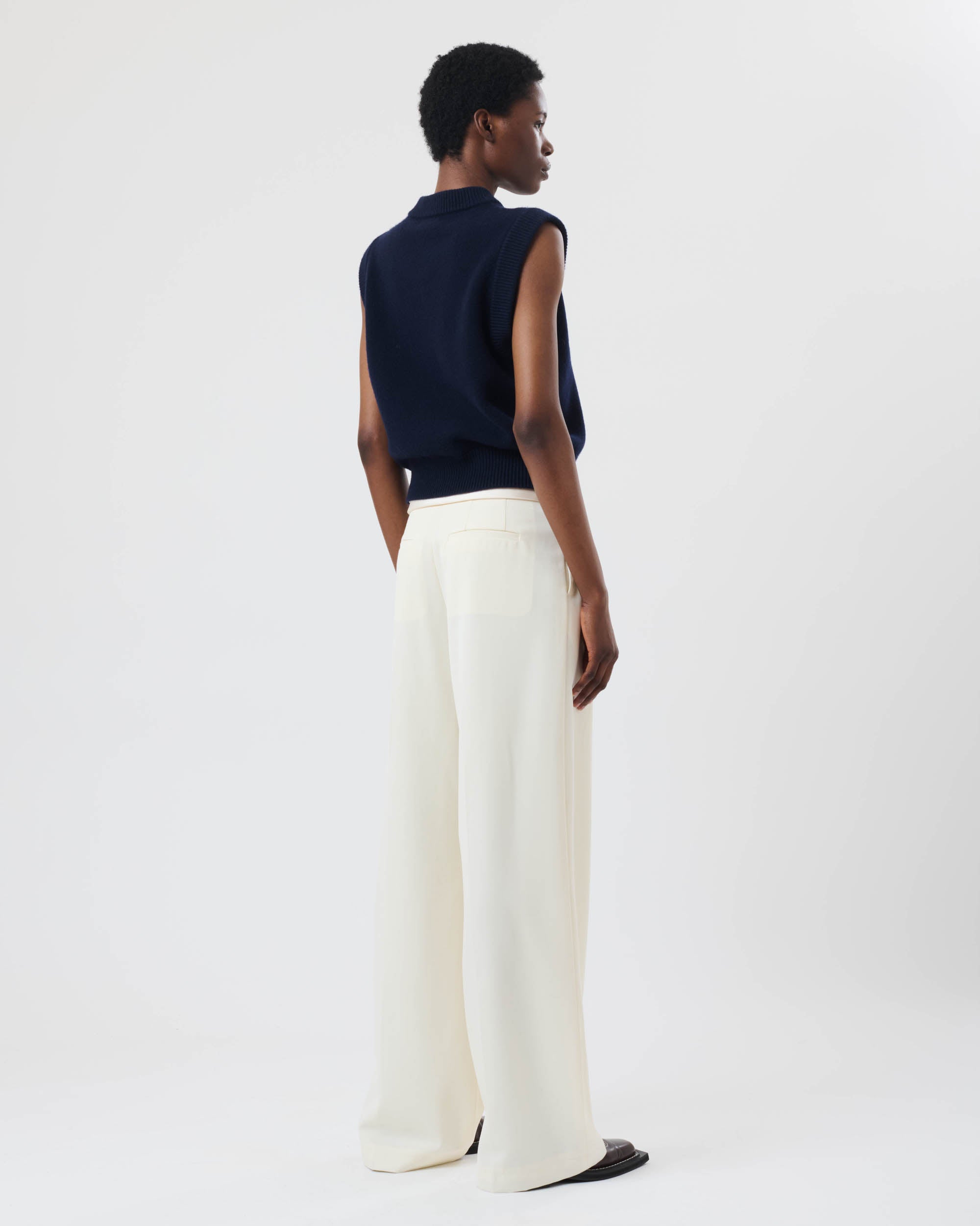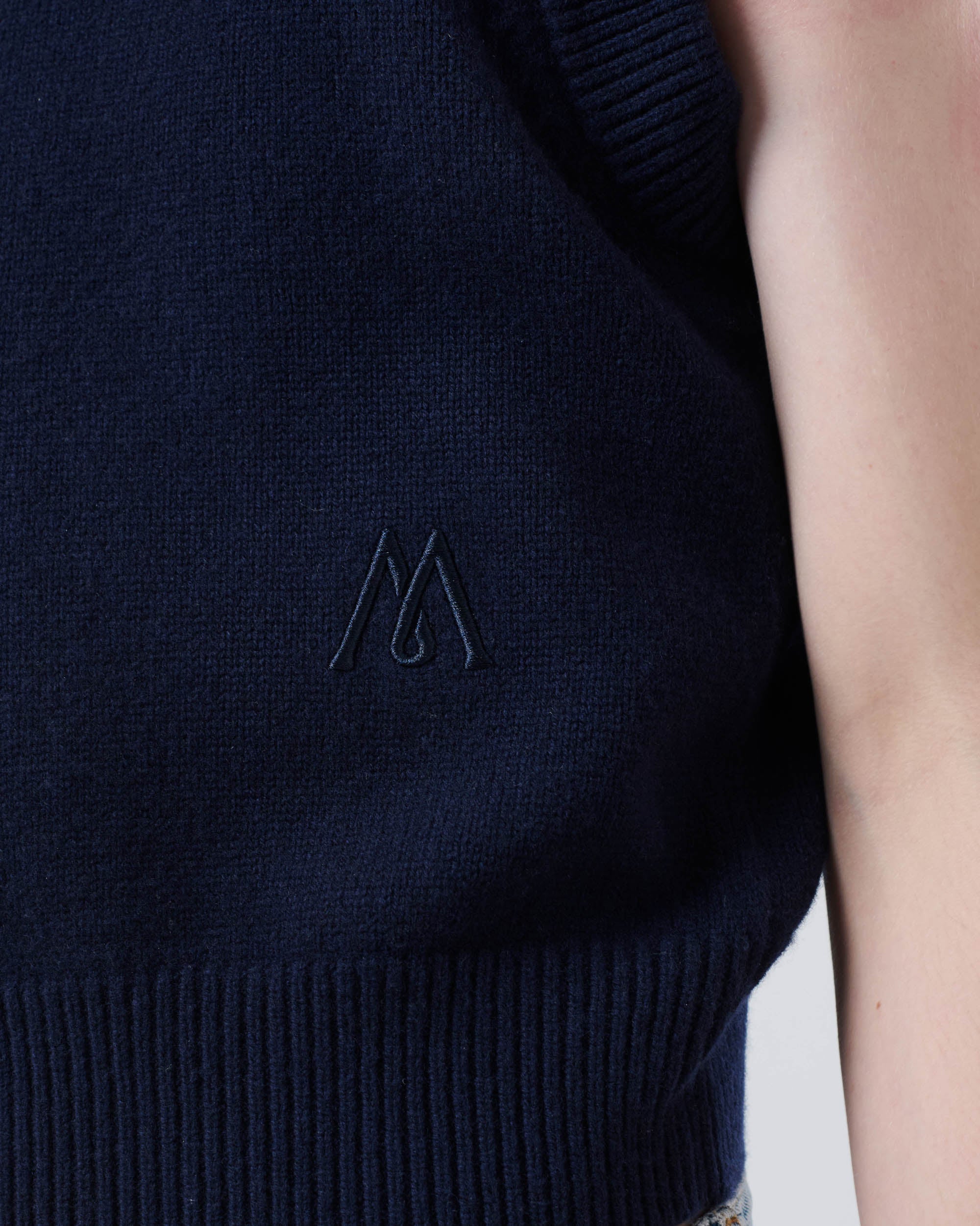 View Similar ProductsSleeveless v-neck jumper crafted from 100% wool, featuring an embroidered logo with a chunky ribbed neckline, armholes and hem. Cut to a regular fit and waist length.