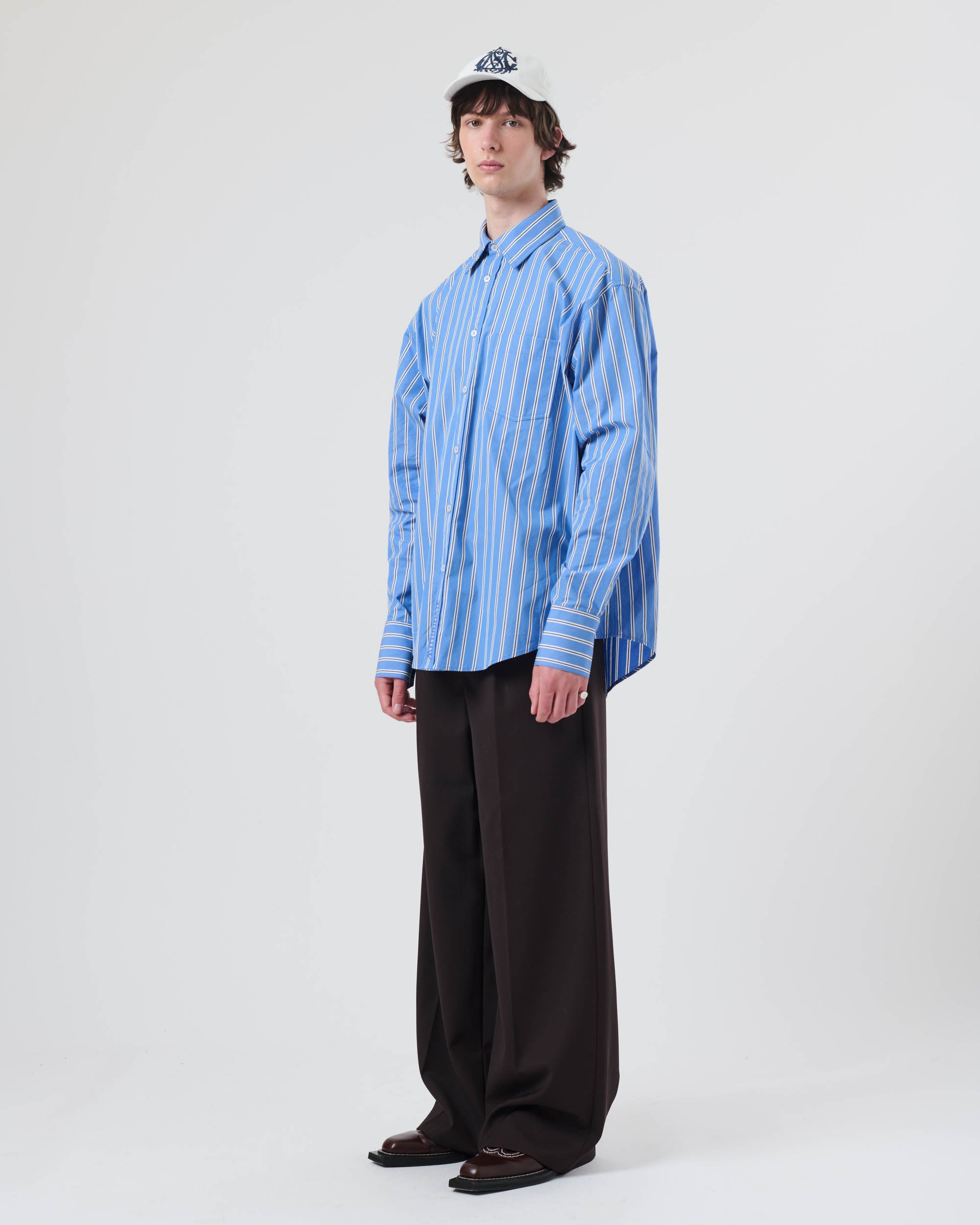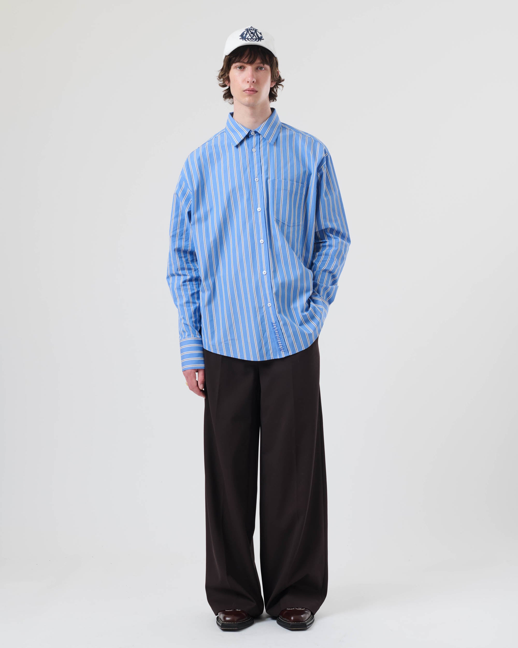 View Similar ProductsRelaxed fit shirt crafted from 100% cotton featuring a classic stripe and spread collar. Cut to a regular unisex fit.