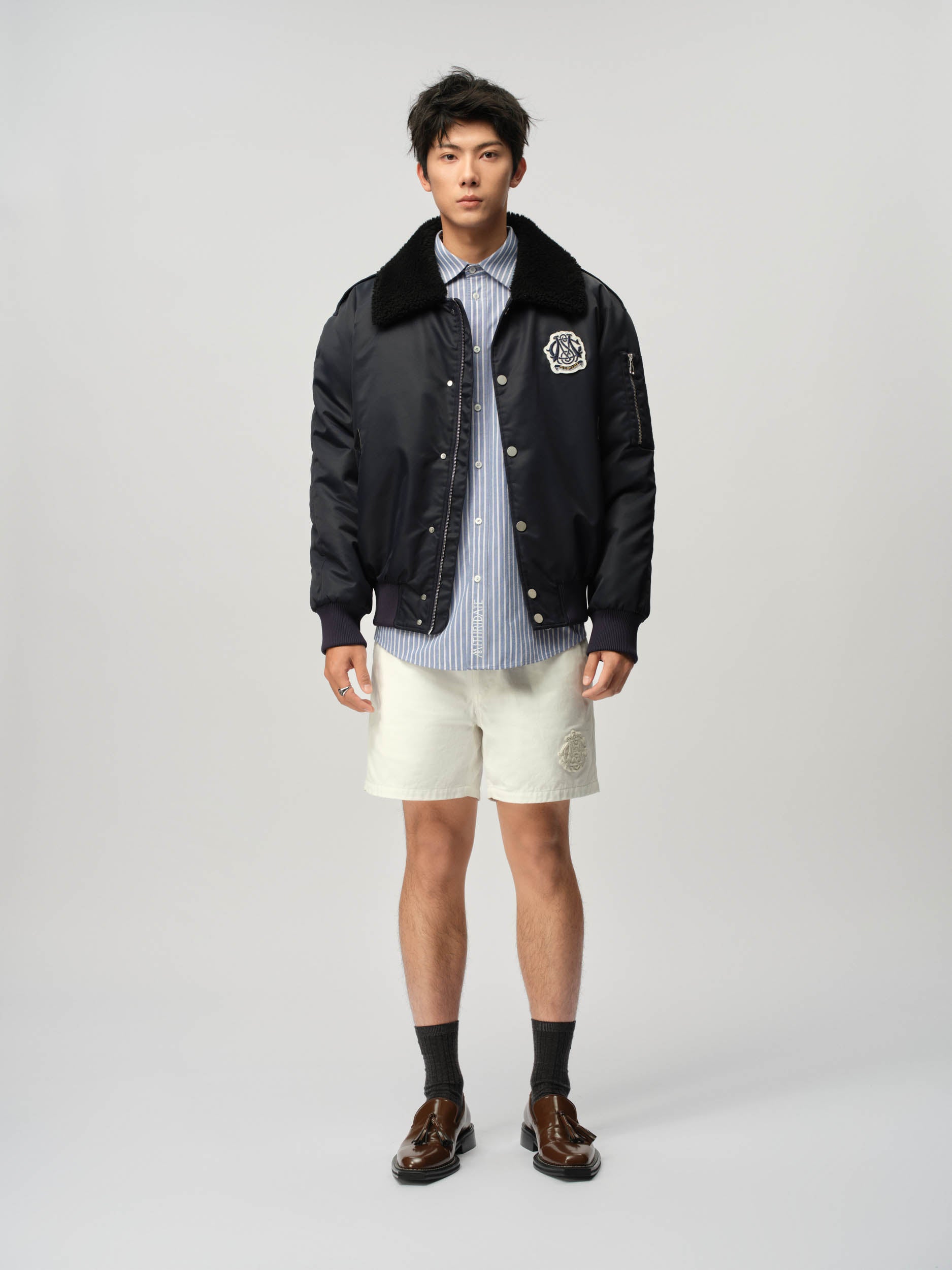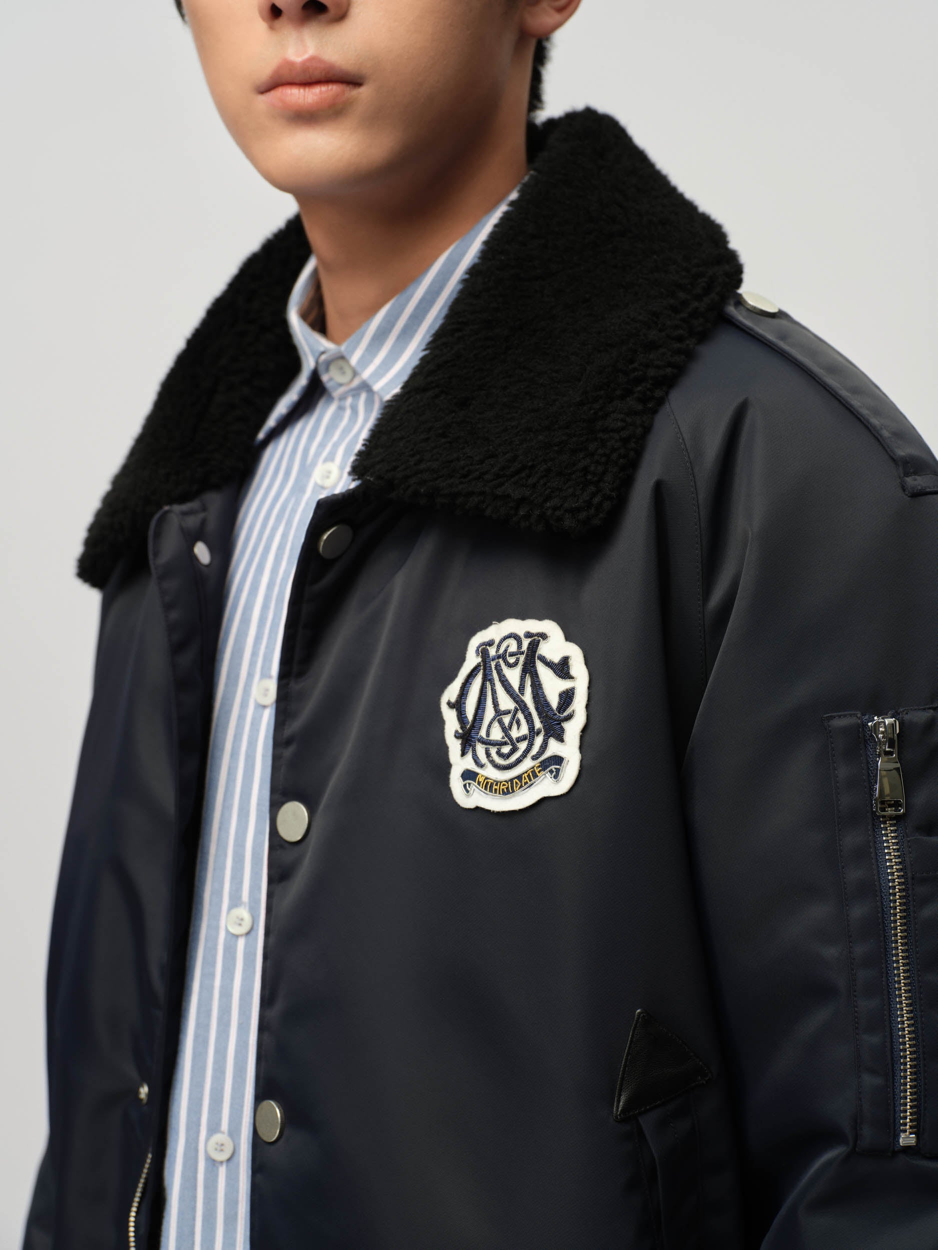 View Similar ProductsBomber jacket featuring Sheep Fur collar, an 'M' Crest logo patch and button-up closure. Cut to a regular fit and hip length.