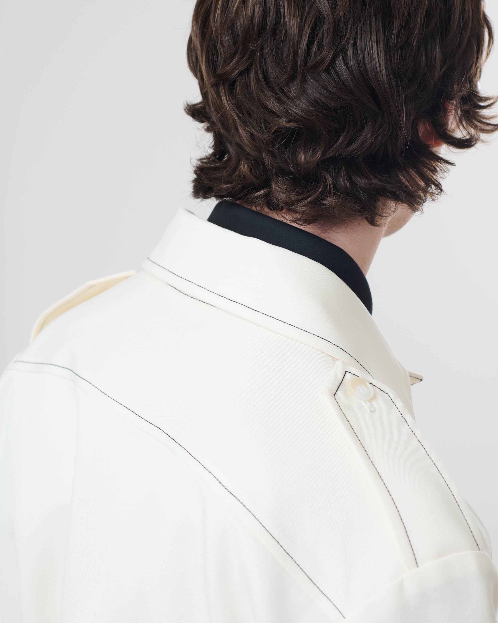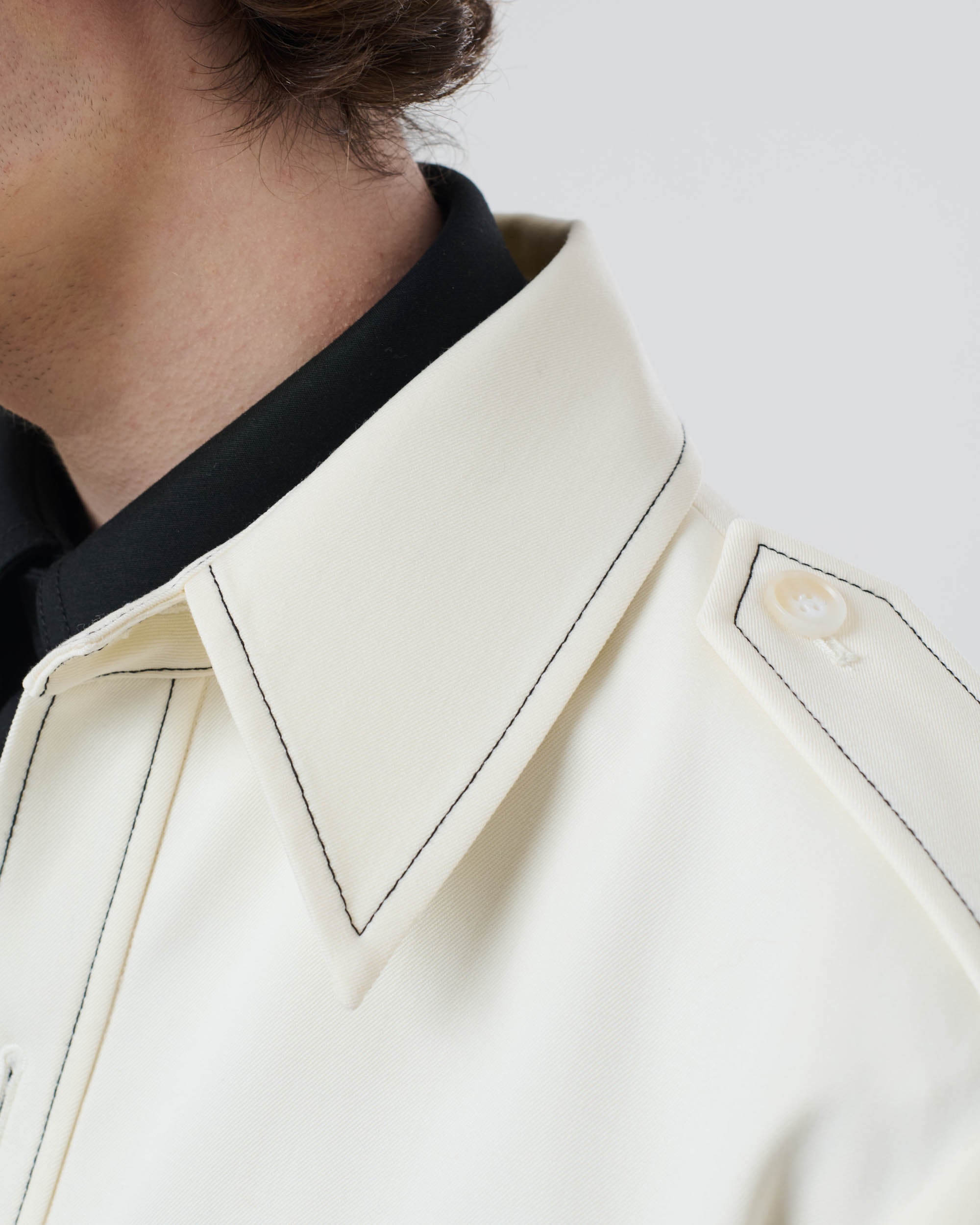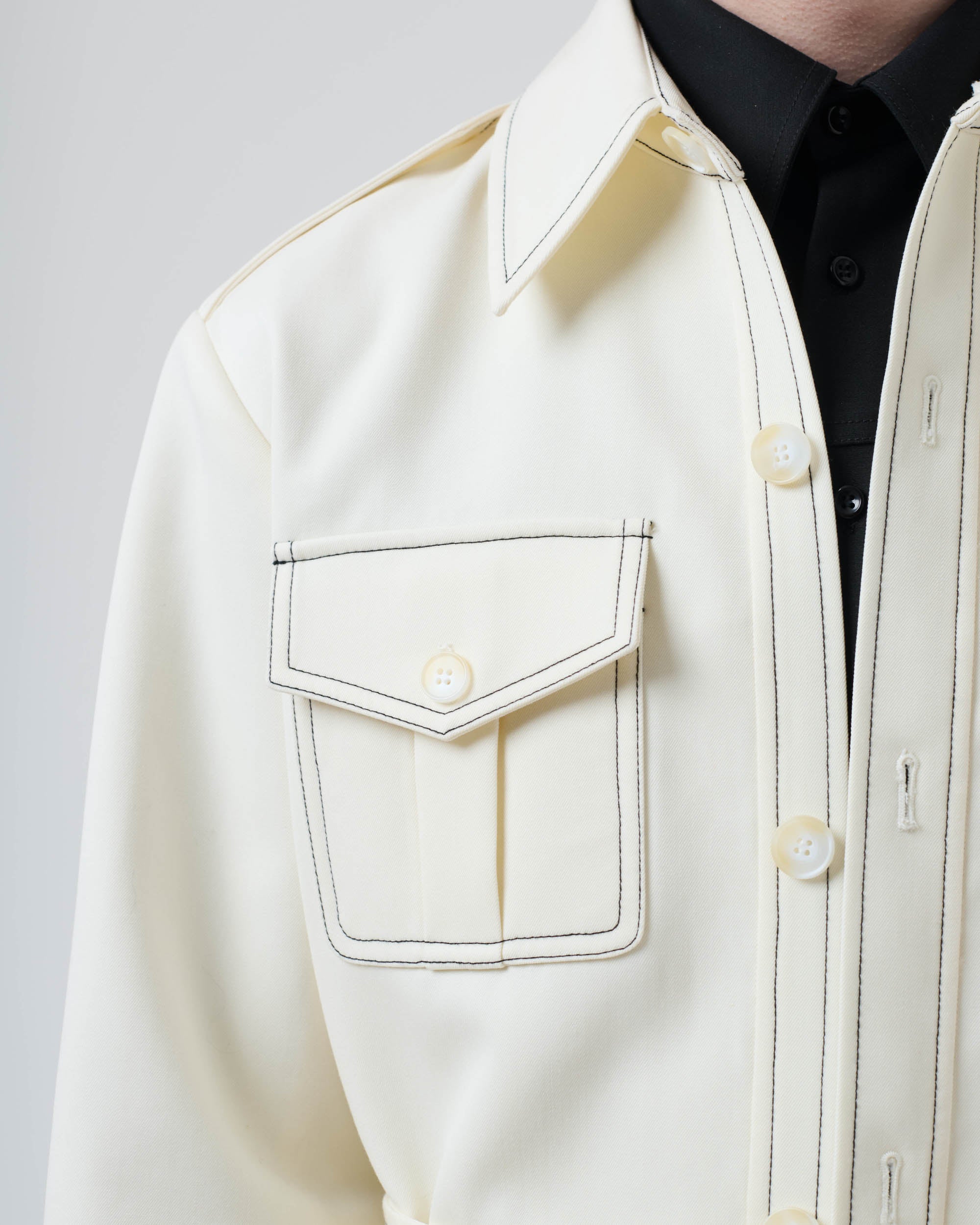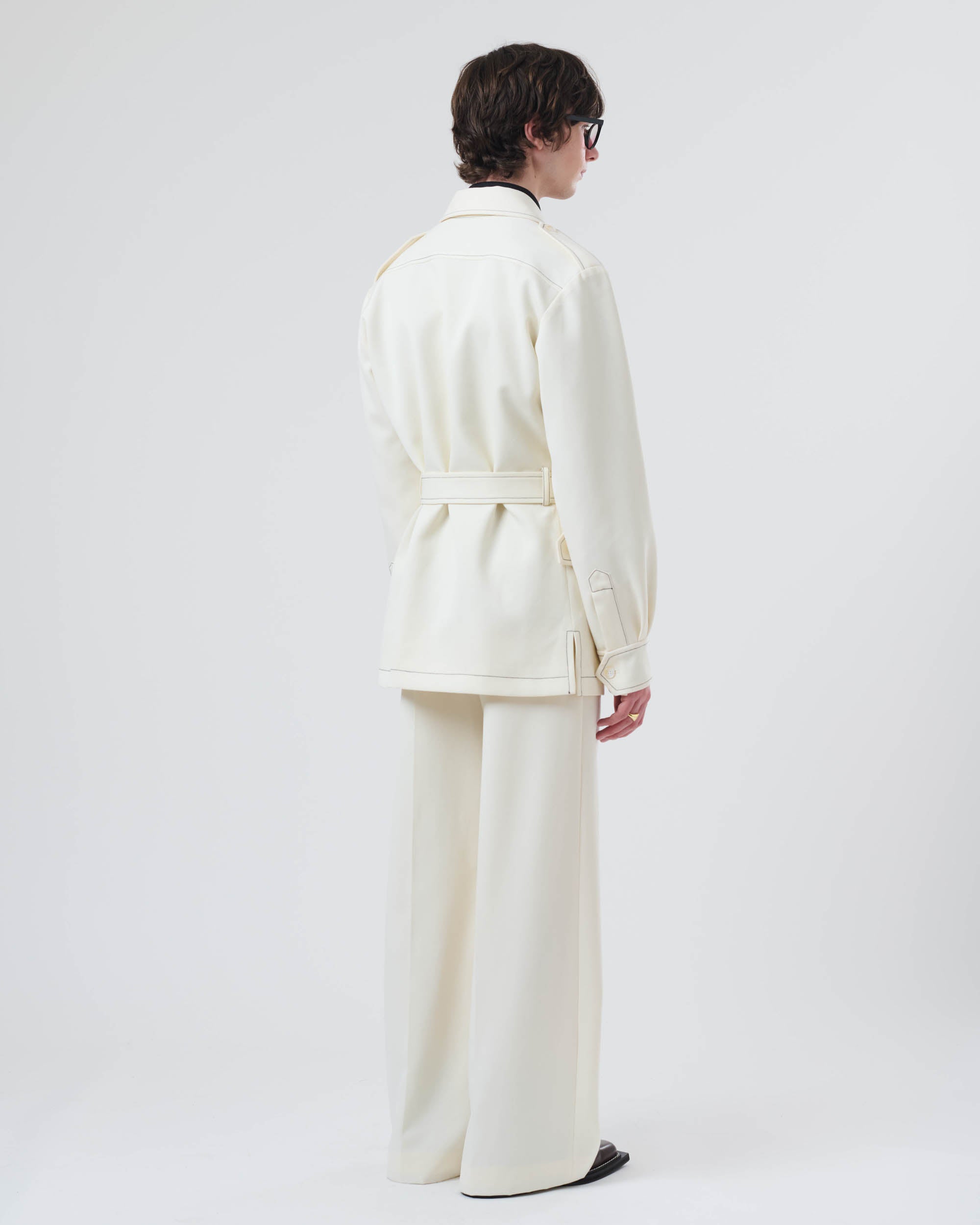 View Similar ProductsSafari jacket crafted from 100% wool featuring contrast stitching, four front patch pockets, epaulettes at the shoulders and a detachable self belt at the waist. Cut to a regular fit and below hip length.