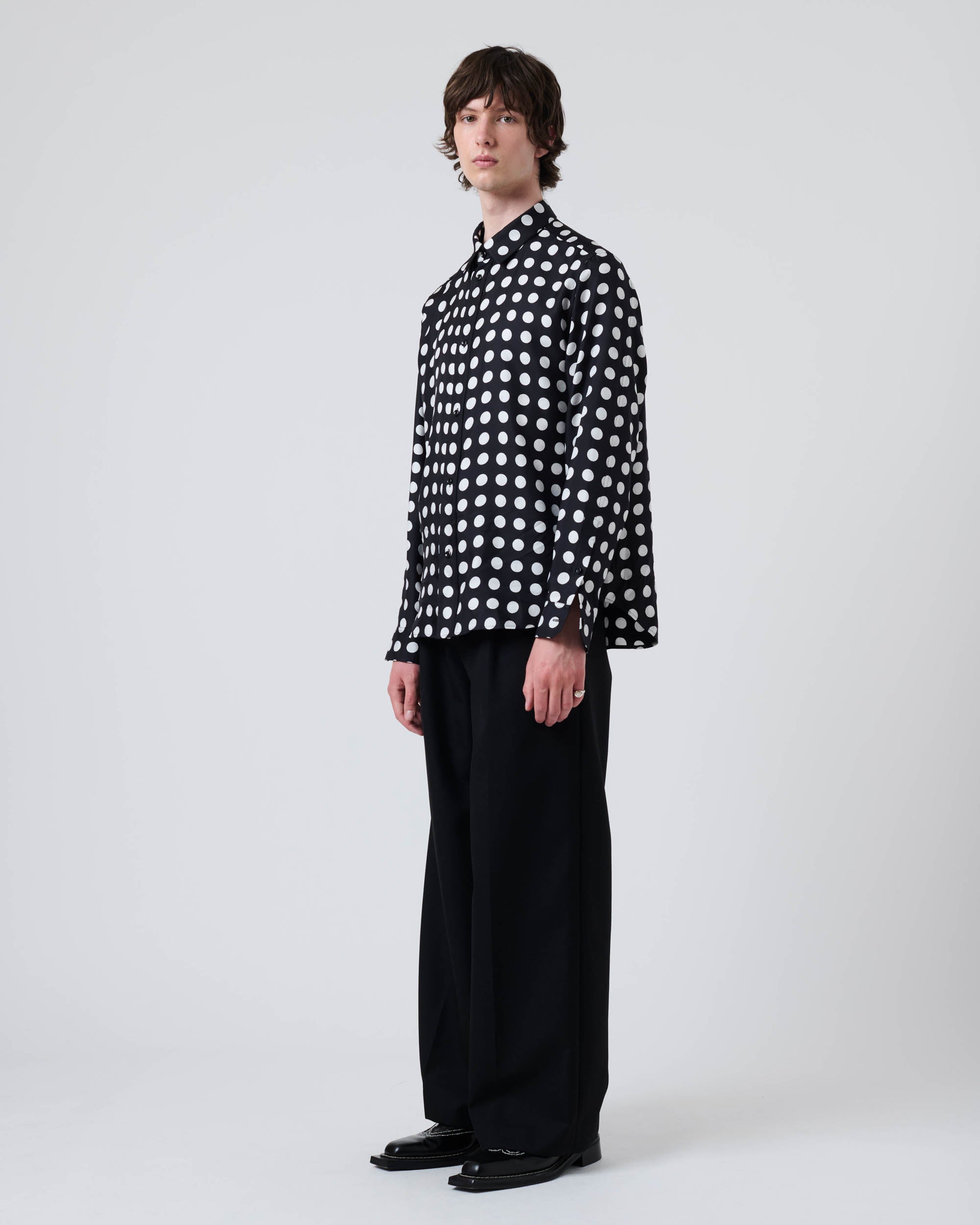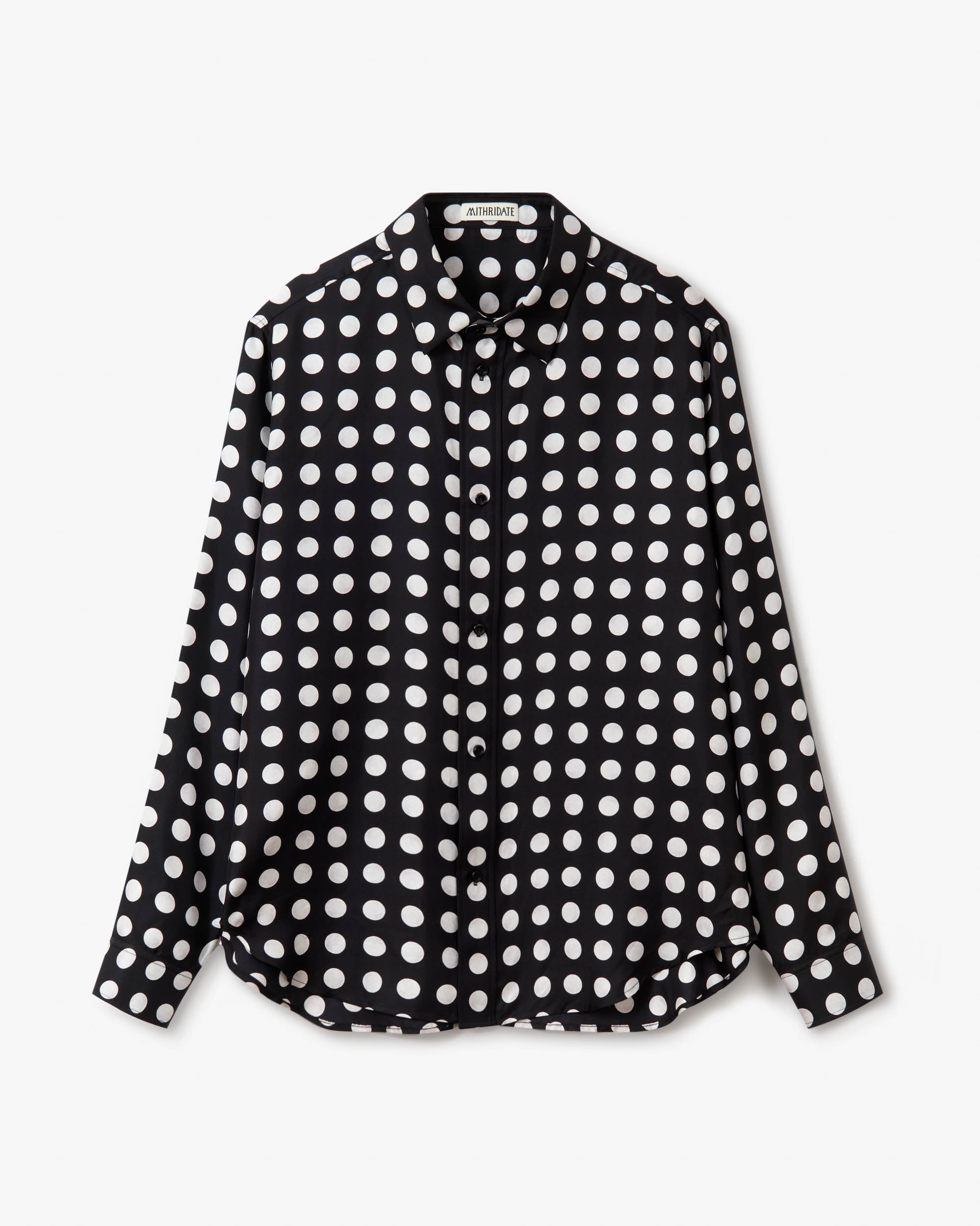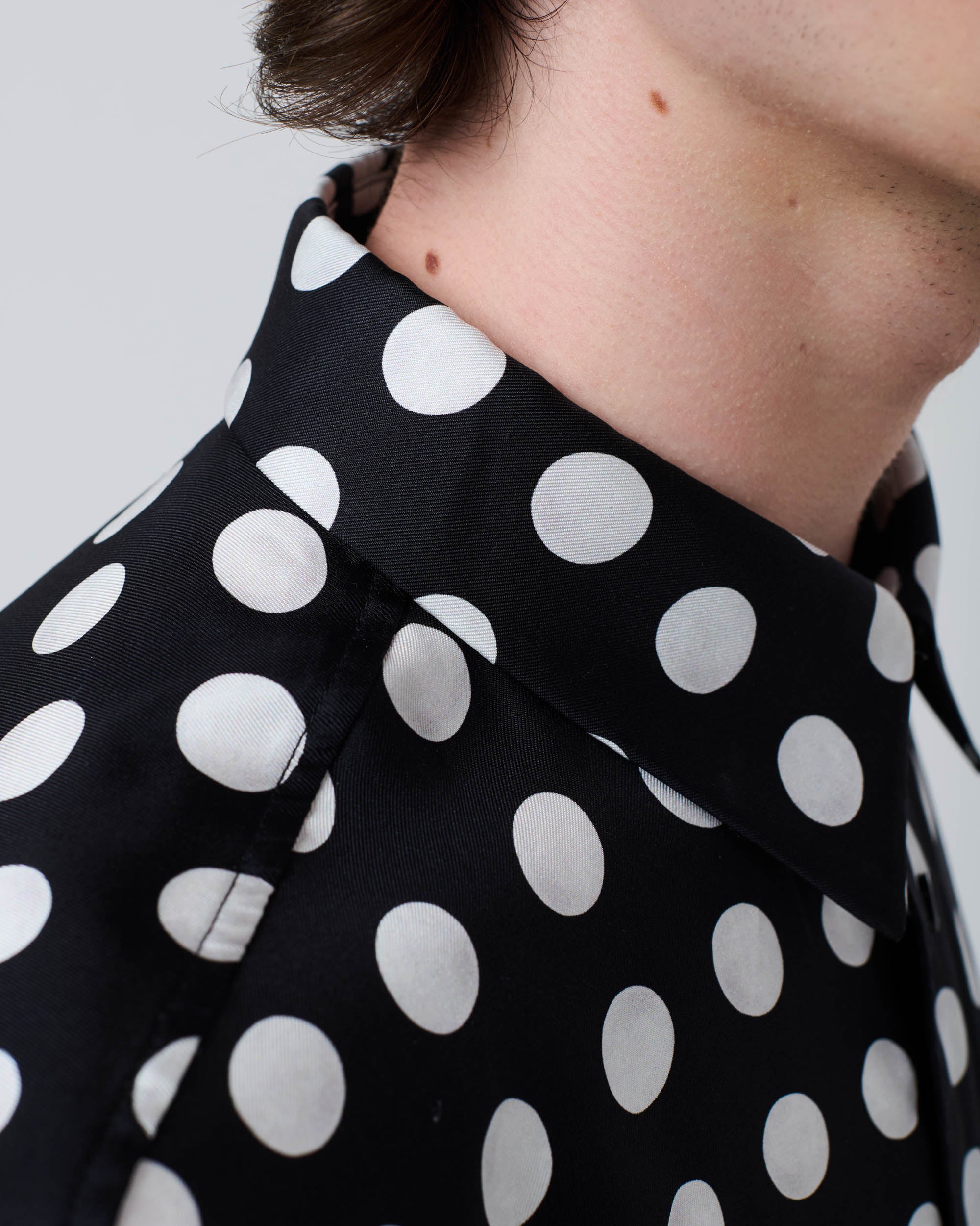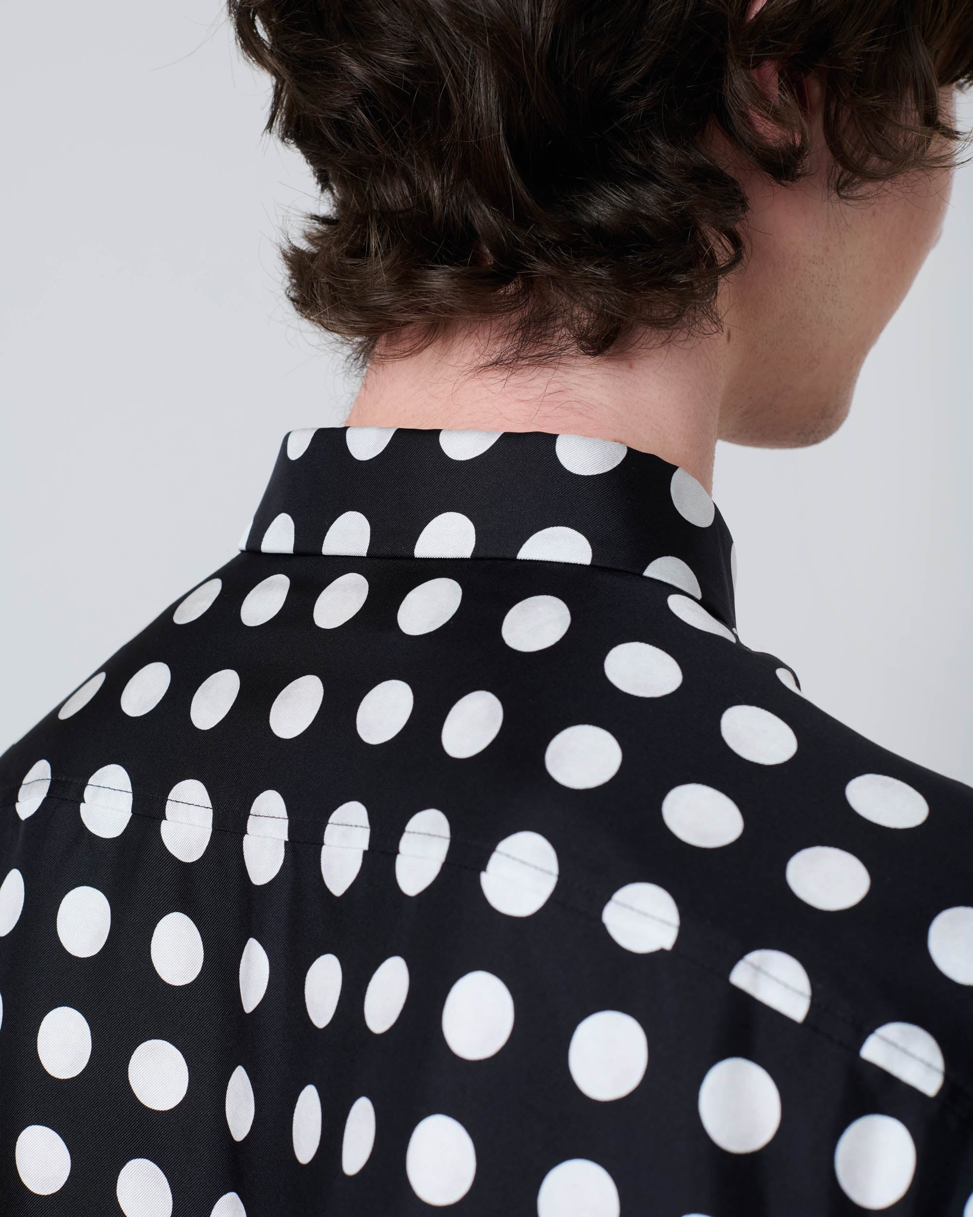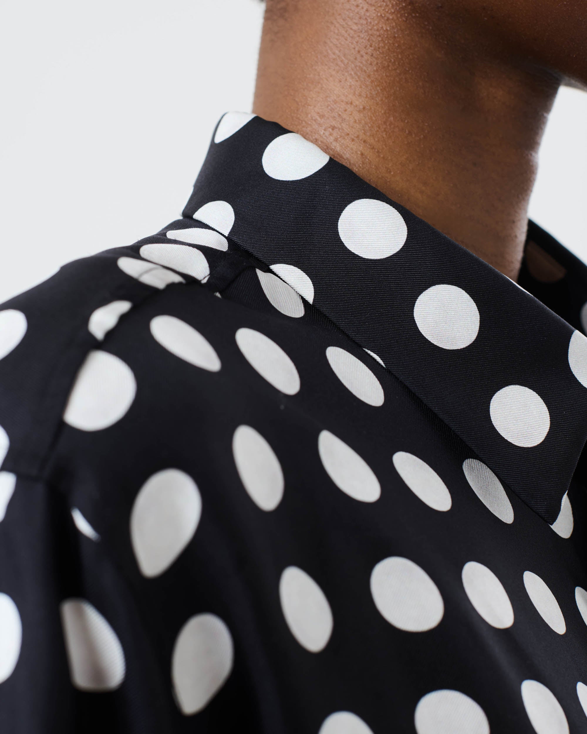 View Similar ProductsButton-up shirt crafted from 100% silk and featuring an oversized polkadot print. Cut to a regular fit and below hip length.