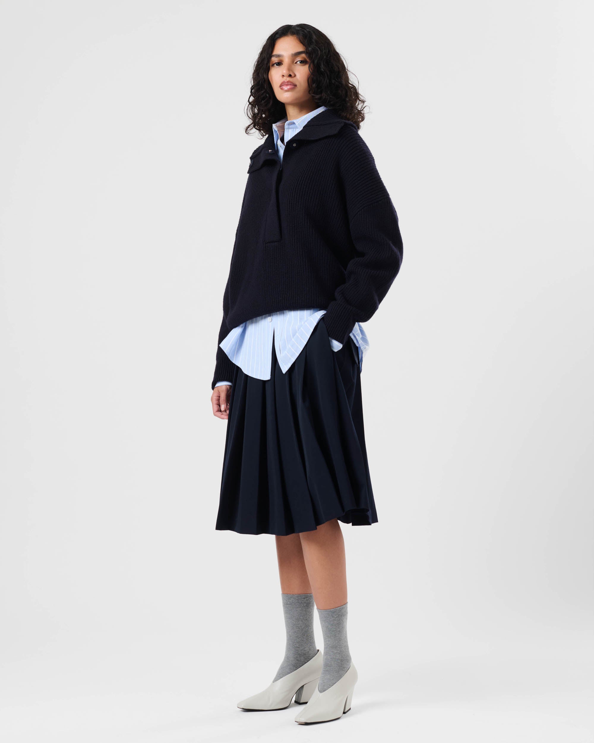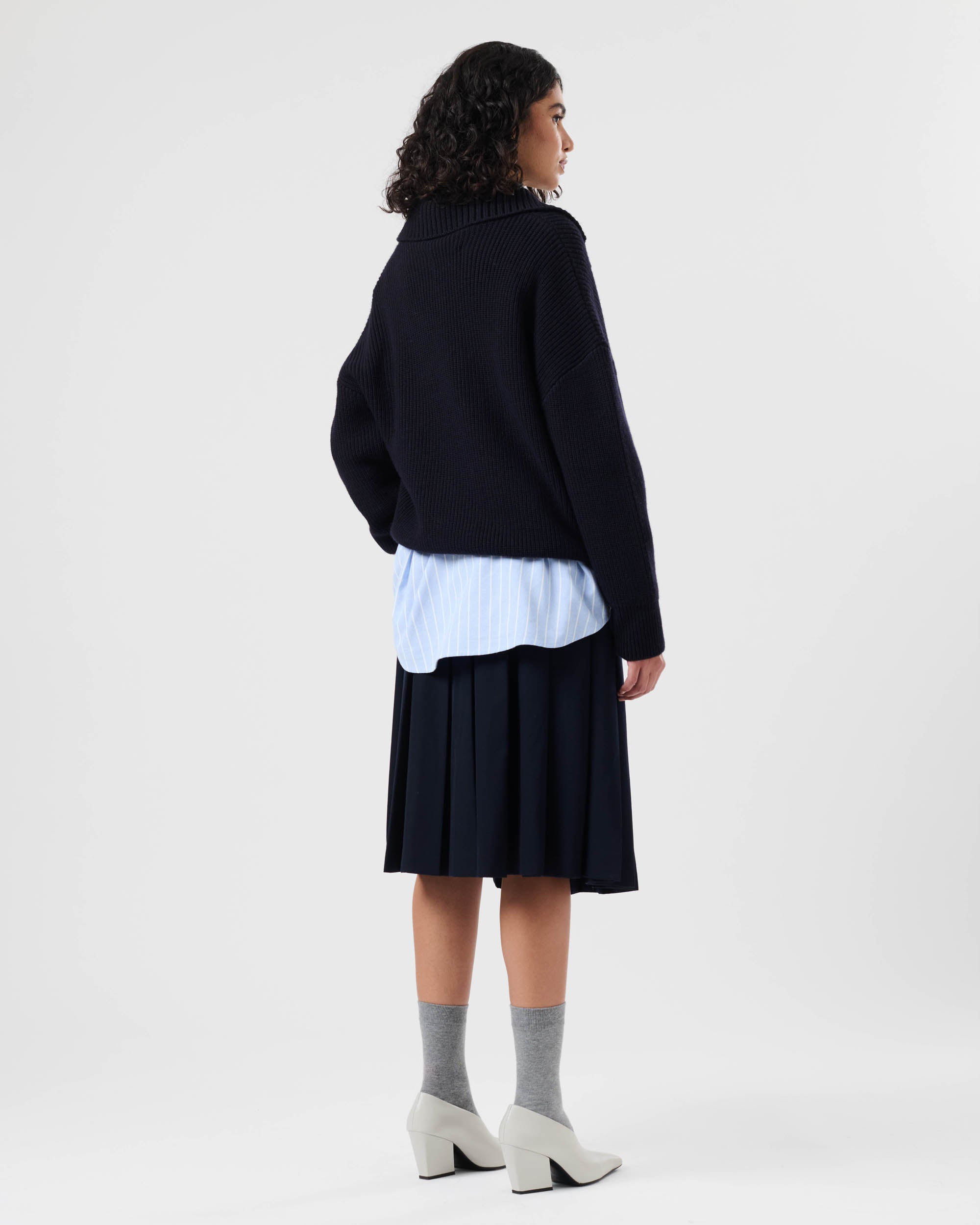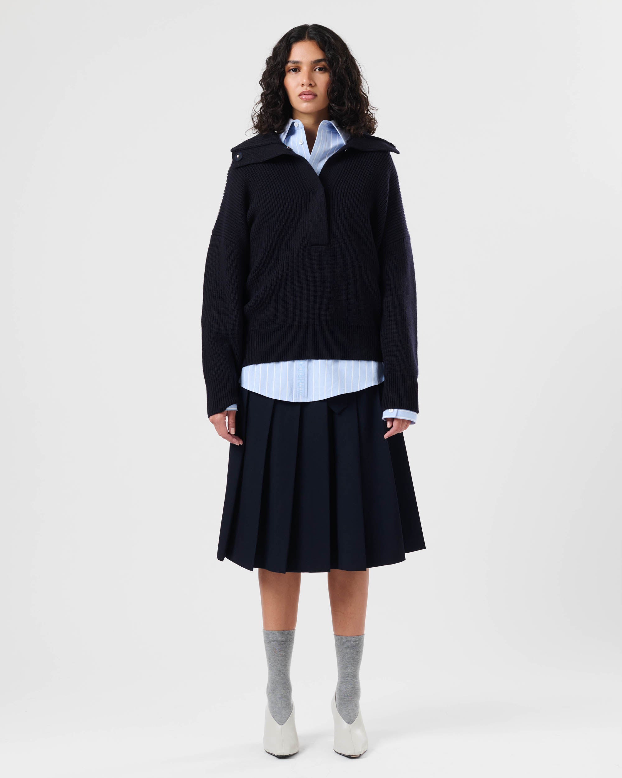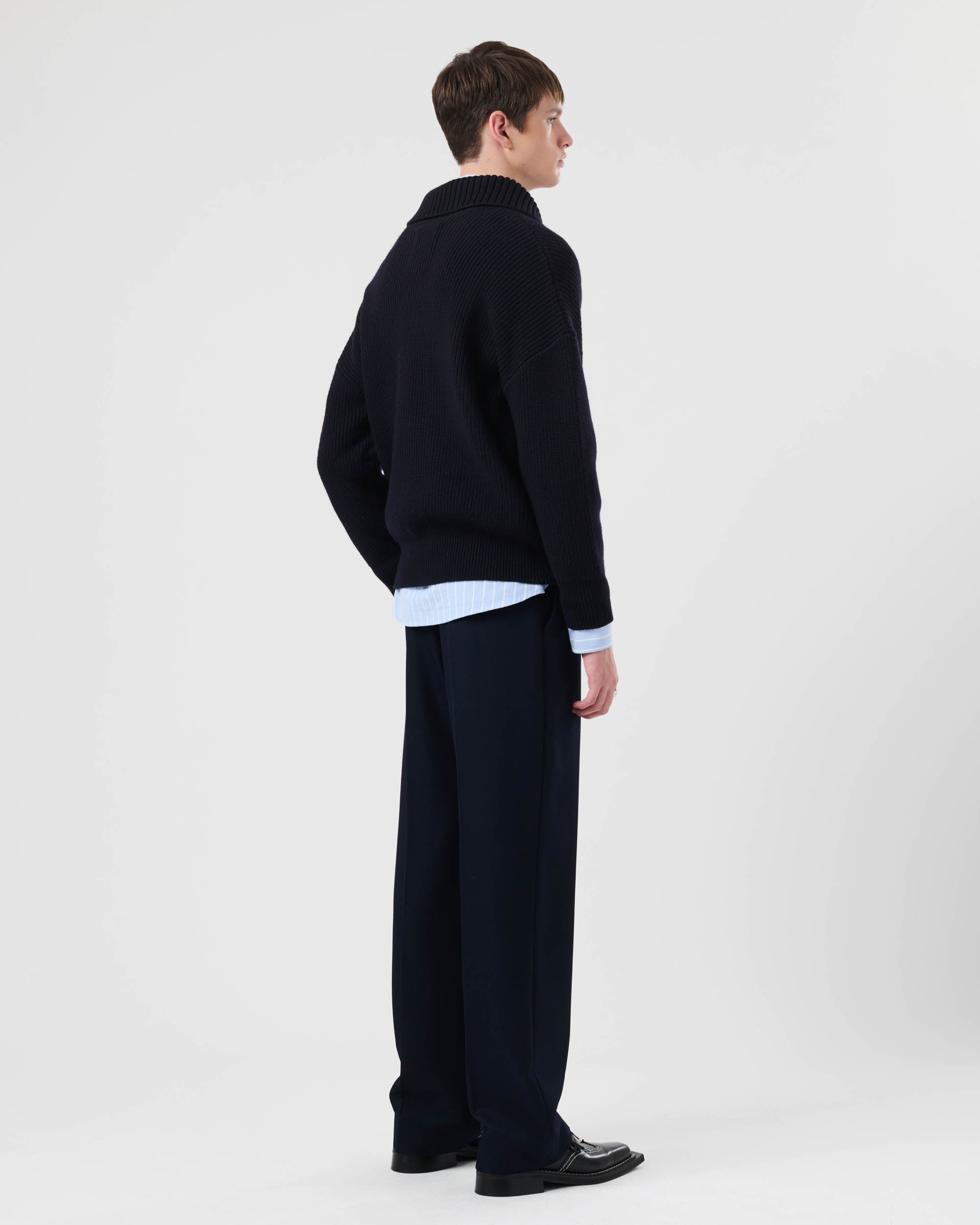 View Similar ProductsChunky ribbed knit sweater made from 100% wool. Featuring 3/4 placket and ribbed collar, cuff and hem. Cut to a regular fit and hip length.