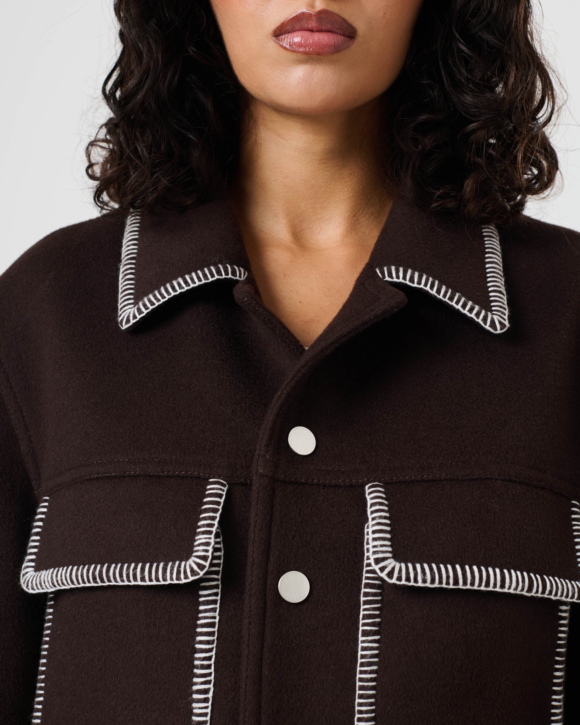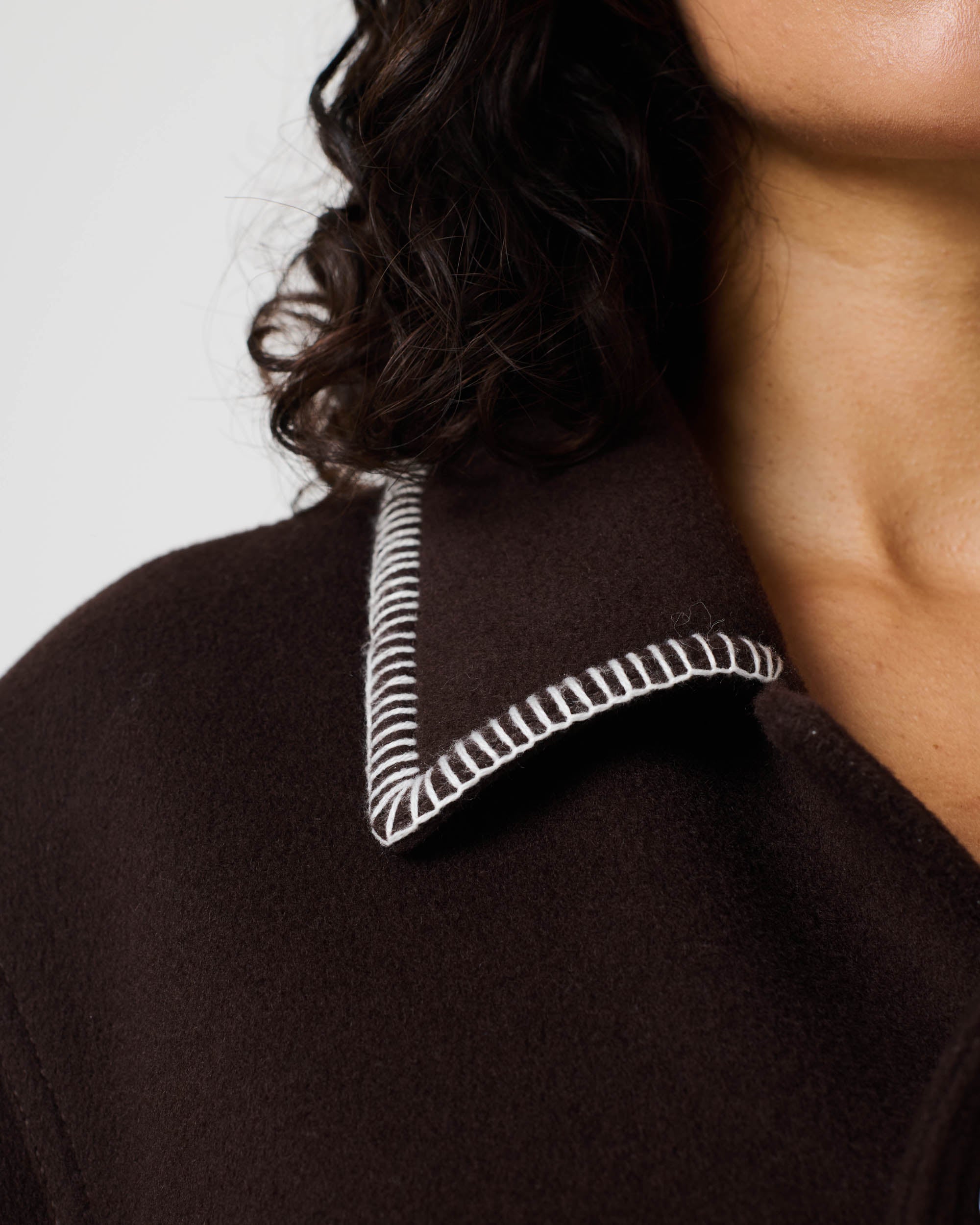 Lining: 100% Cupro - Contrast blanket stitch edging